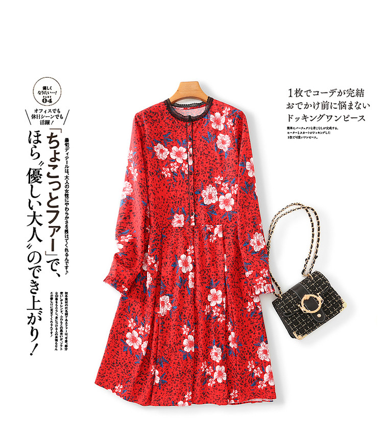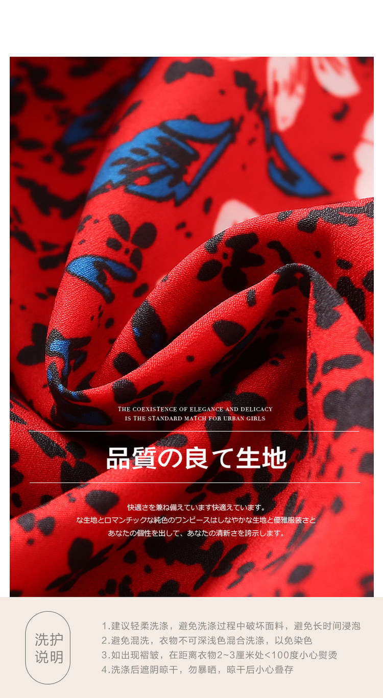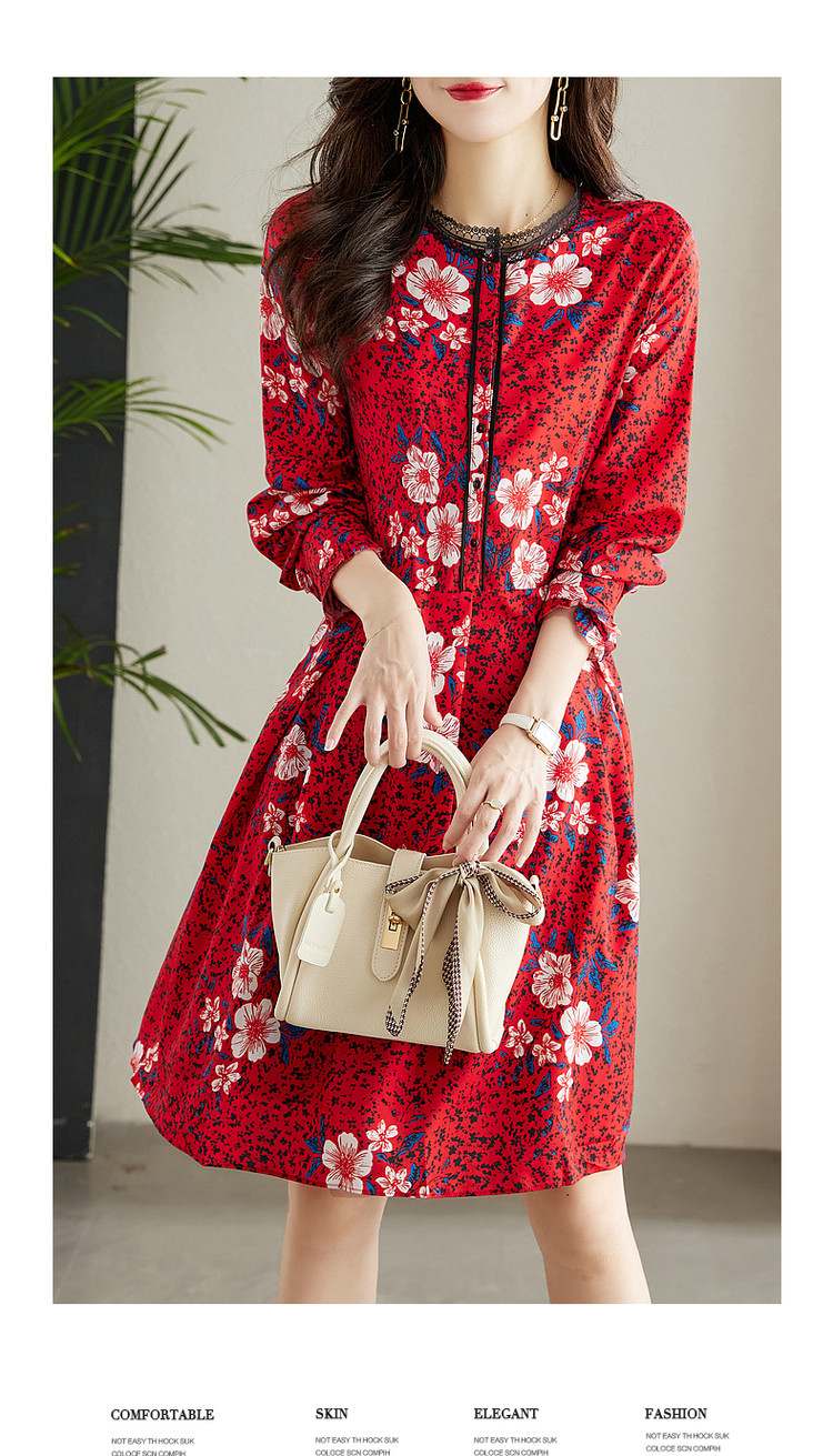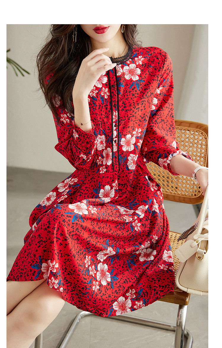 商品名称:【七分袖】秋圆领直筒中长款印花连衣裙女秋 927873