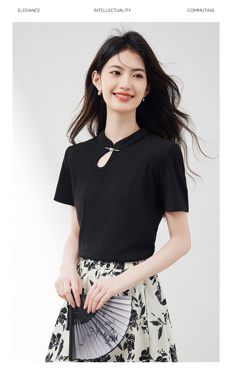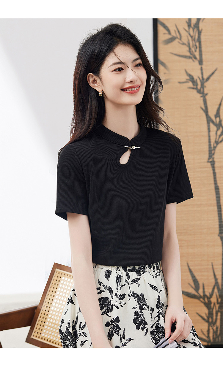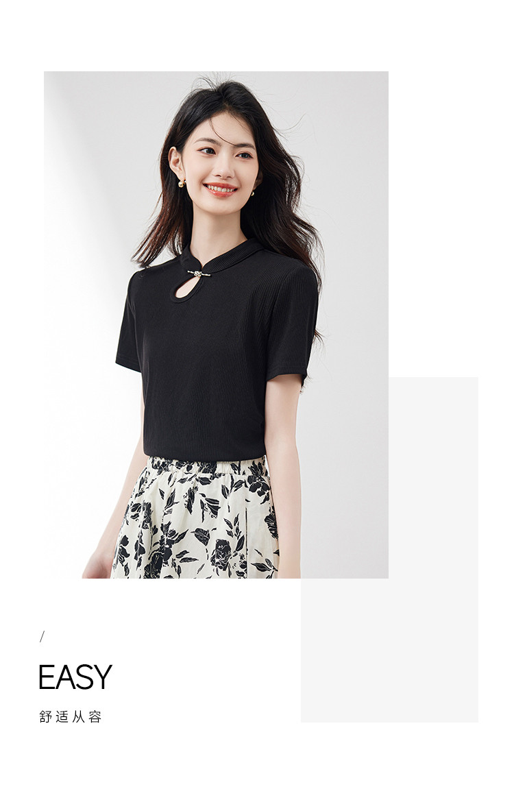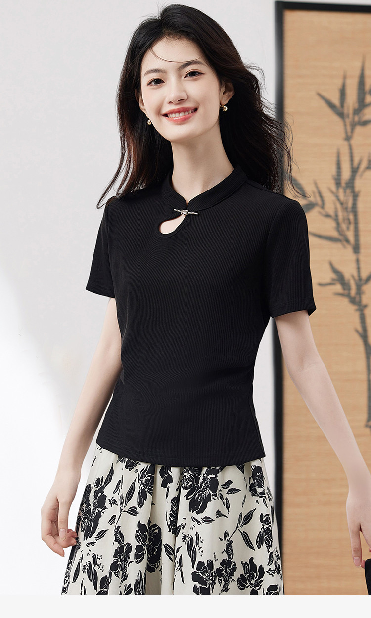 商品名称:新中式短袖T恤女2024夏新款高级感减龄气质正肩显瘦国风上衣 915800
