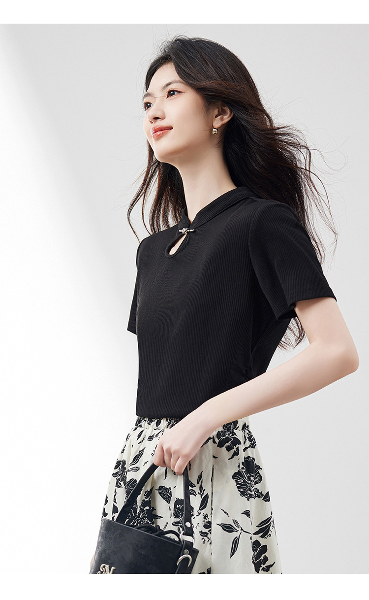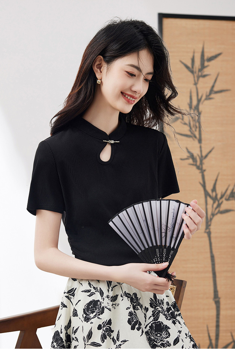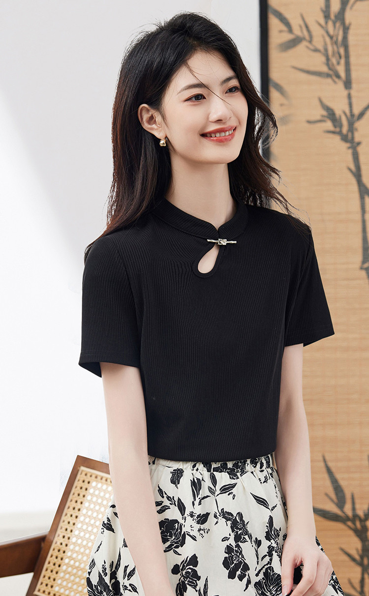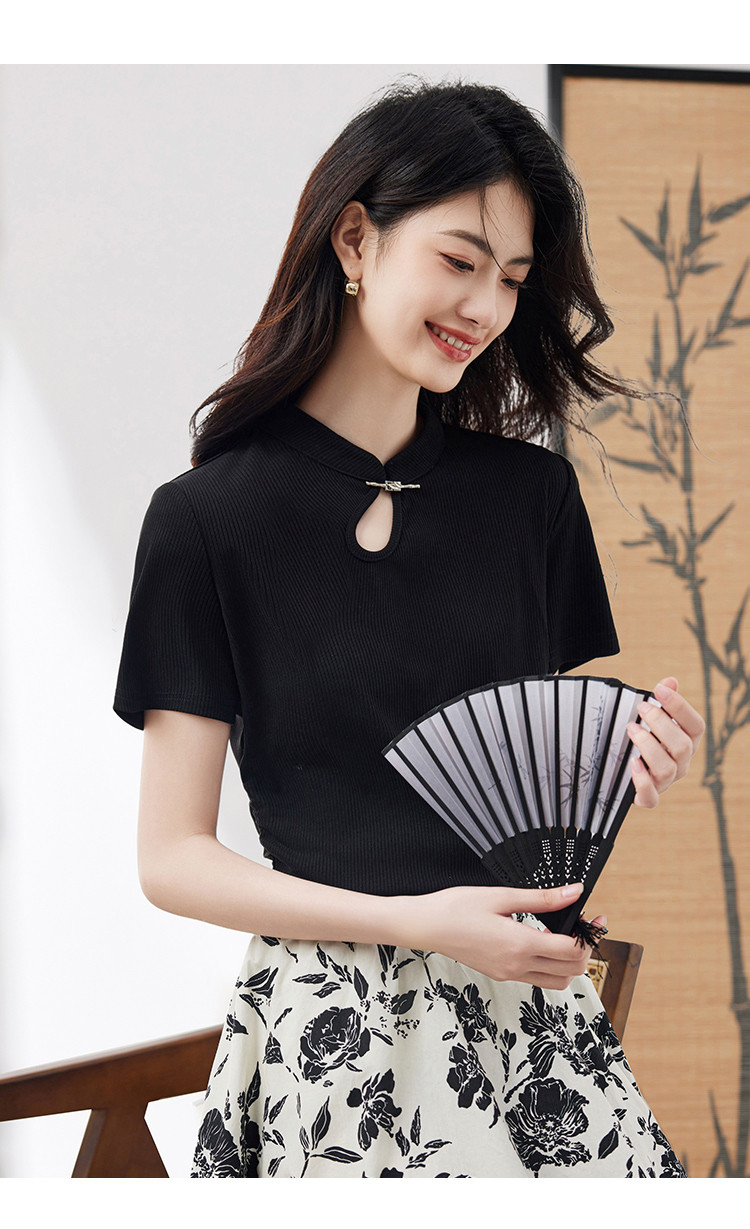 商品名称:新中式短袖T恤女2024夏新款高级感减龄气质正肩显瘦国风上衣 915800