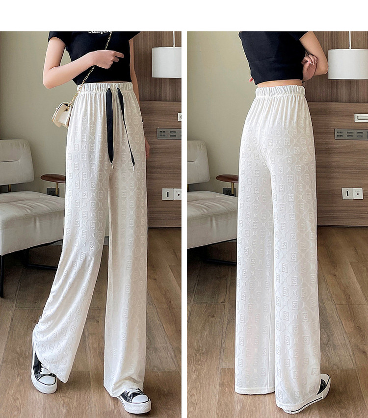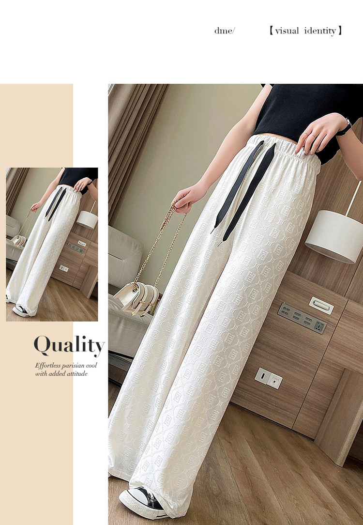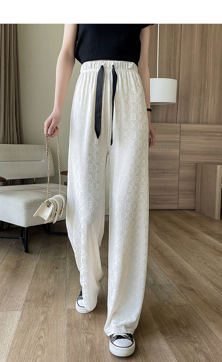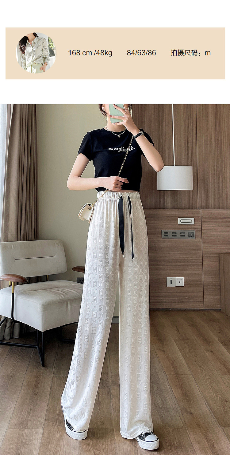 商品名称:【提花阔腿裤】夏季松紧腰女裤系绳字母裤子女宽松休闲裤 237441