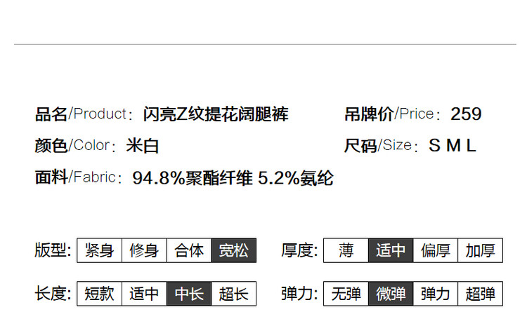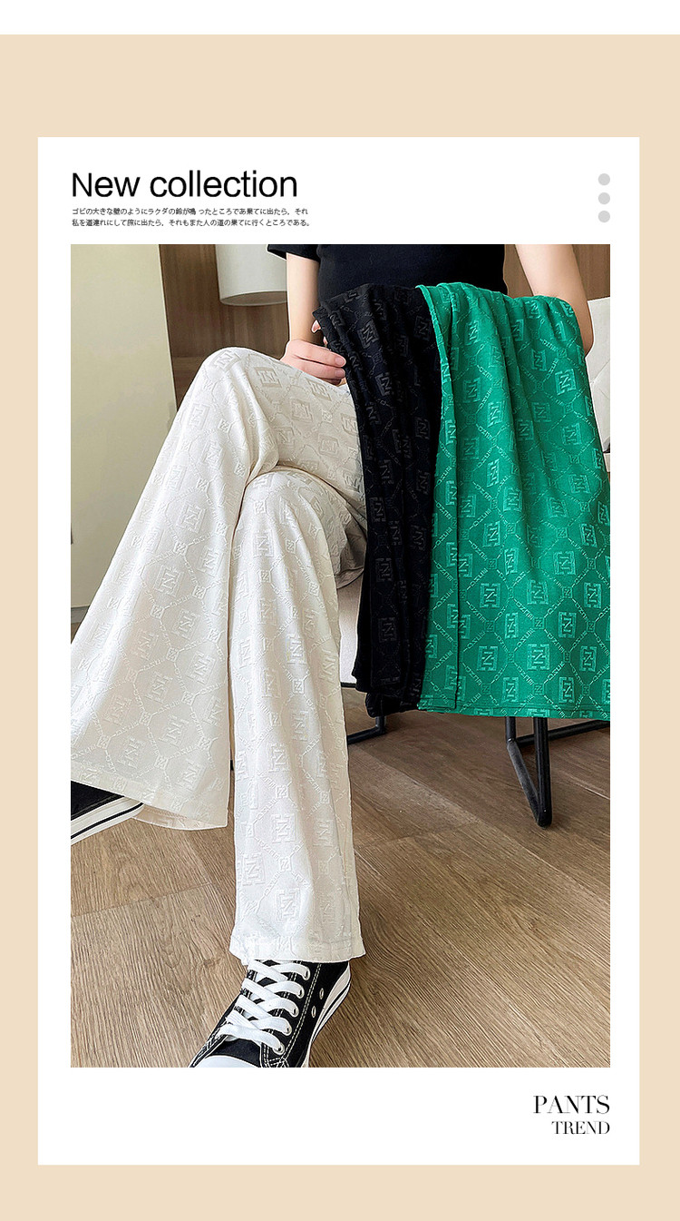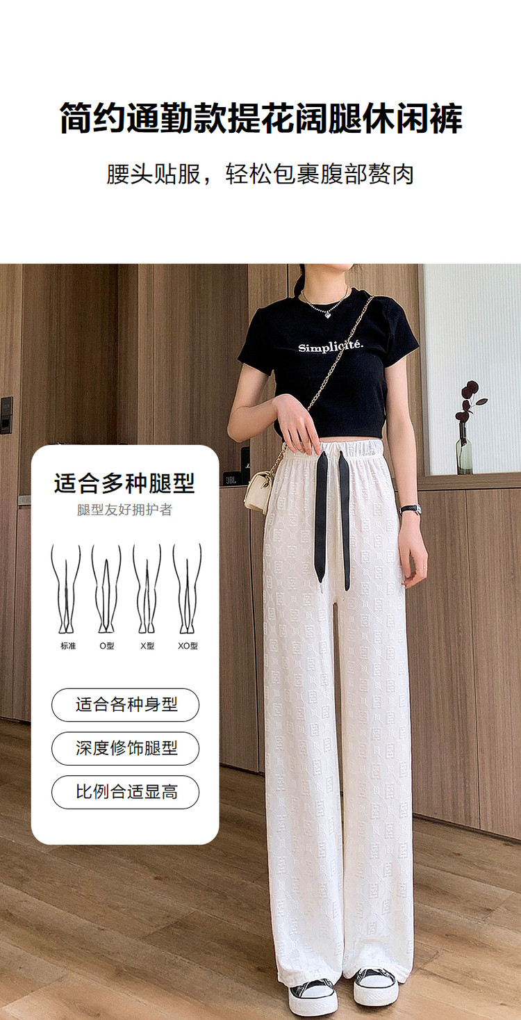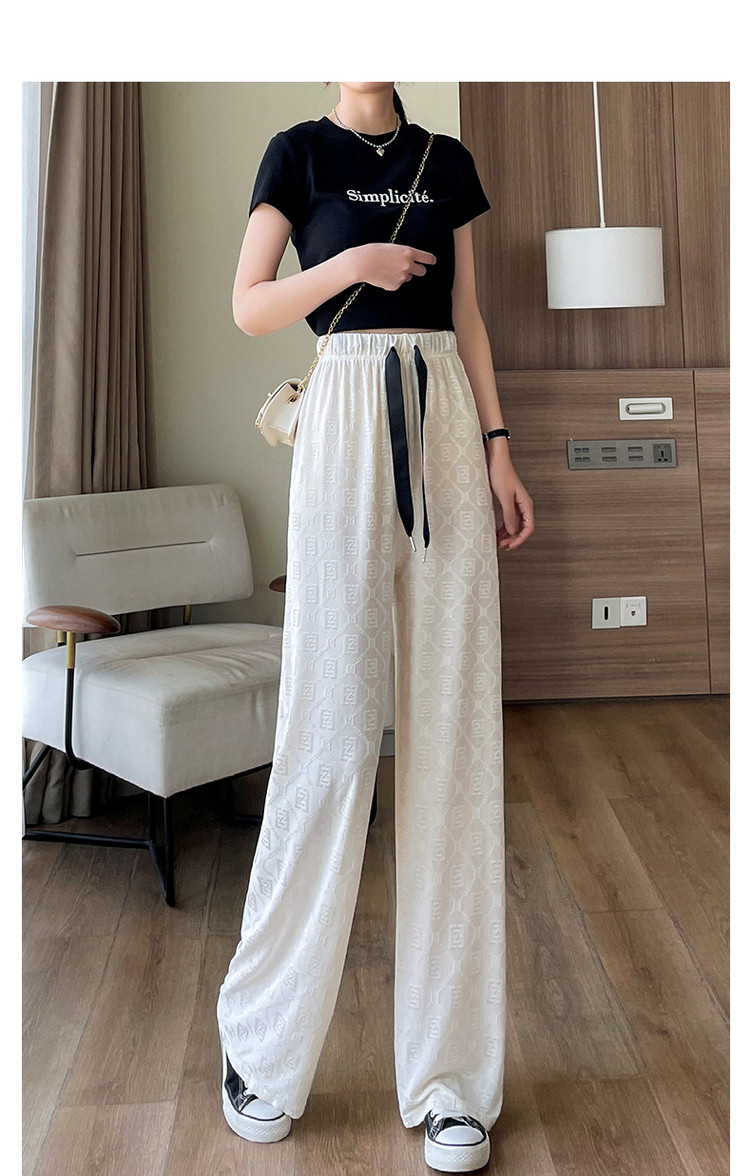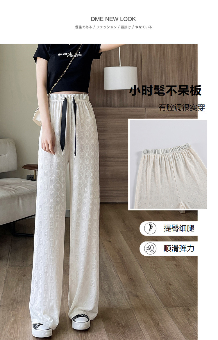 商品名称:【提花阔腿裤】夏季松紧腰女裤系绳字母裤子女宽松休闲裤 237441