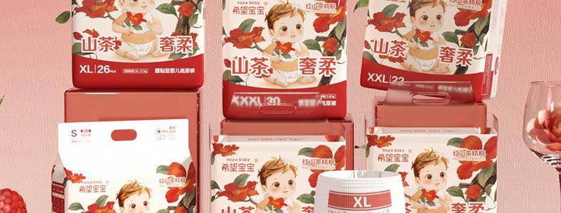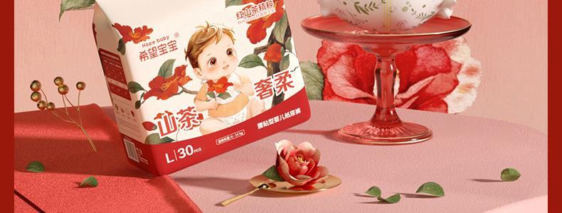 希望宝宝(Hopebaby)中国自造奢柔山茶花系列婴儿纸尿裤M号34片(6-11kg)