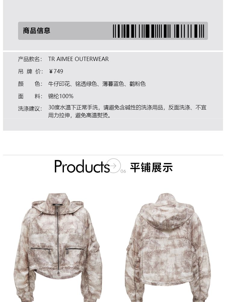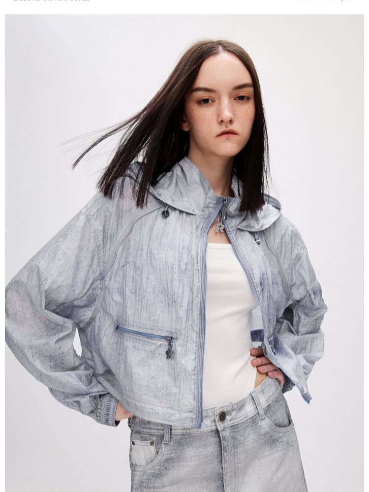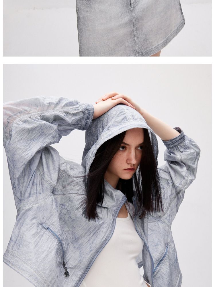 商品名称:【潮流休闲】夏季透气感宽松抽绳连帽外套女 469722