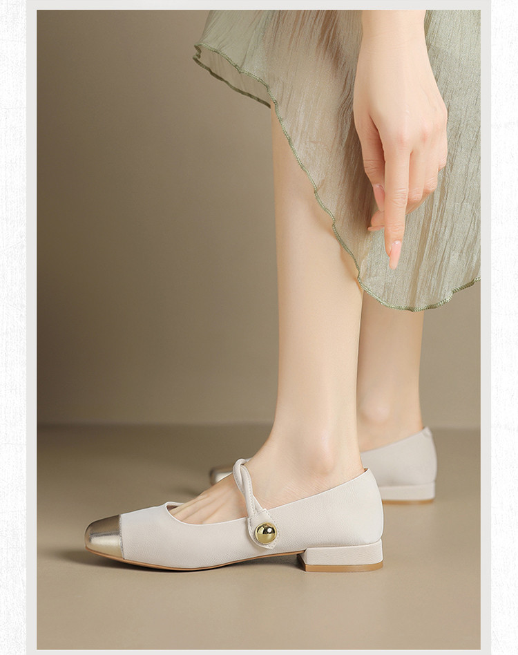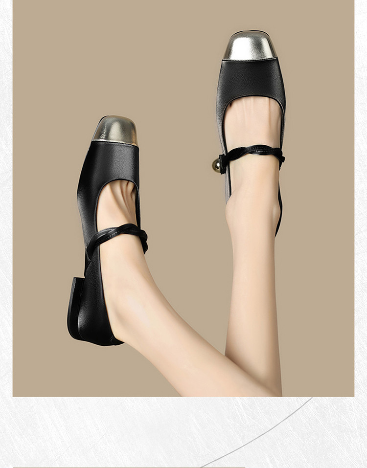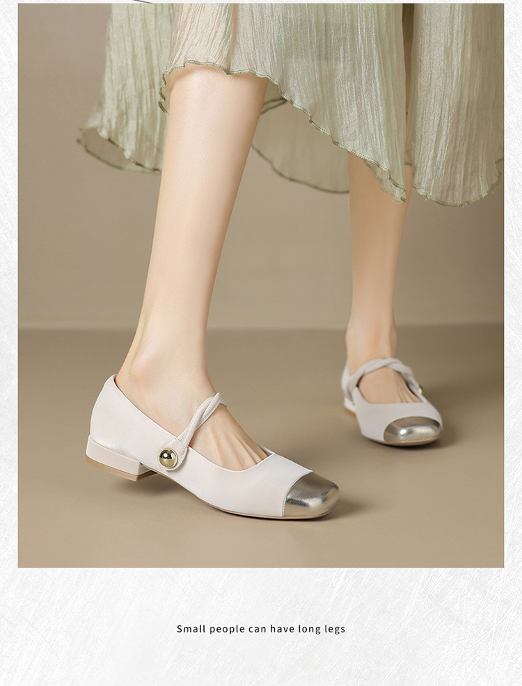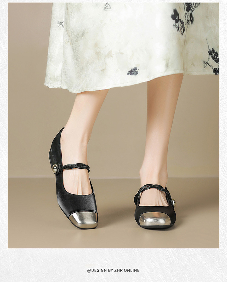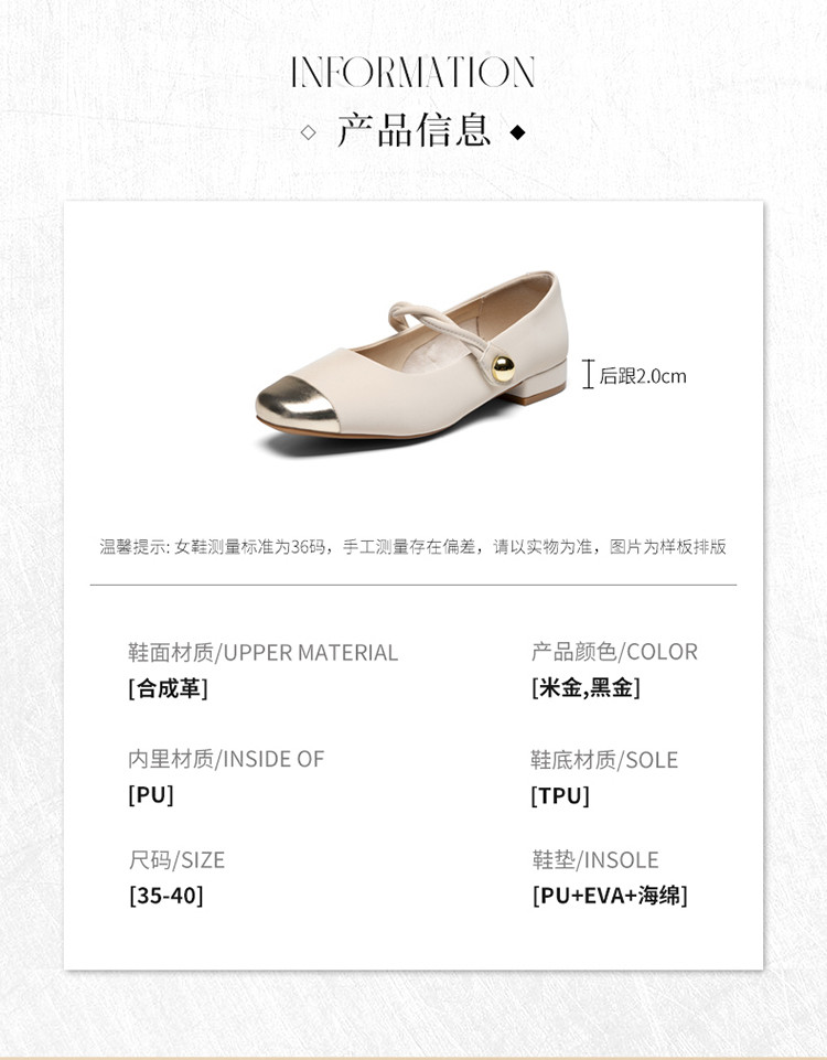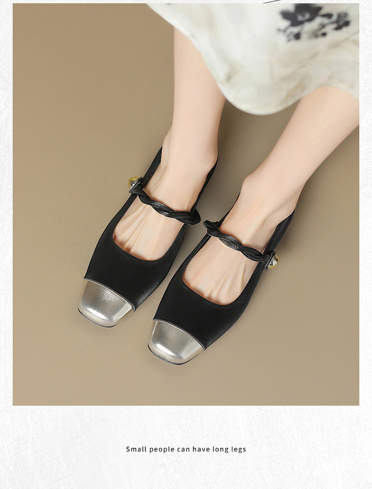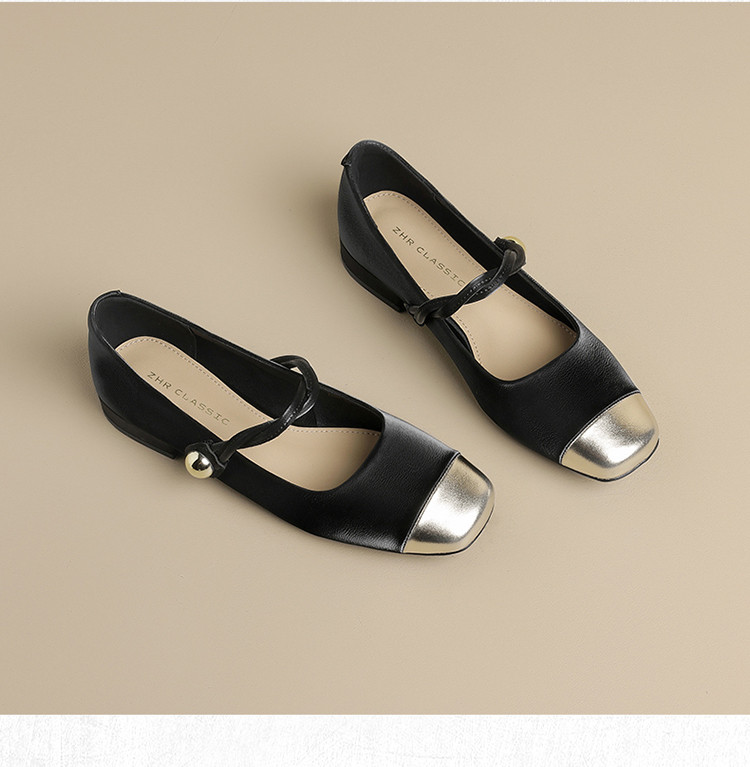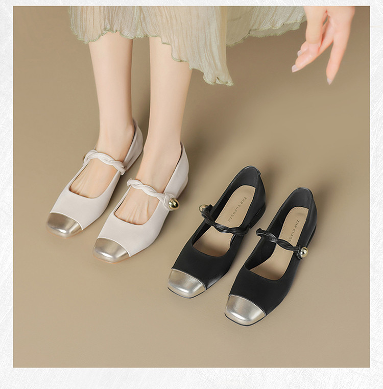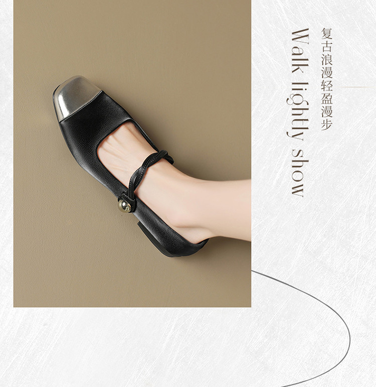 商品名称:【金属撞色】百搭黑色单鞋女夏玛丽珍女鞋夏季平底鞋女单鞋女士 492032
