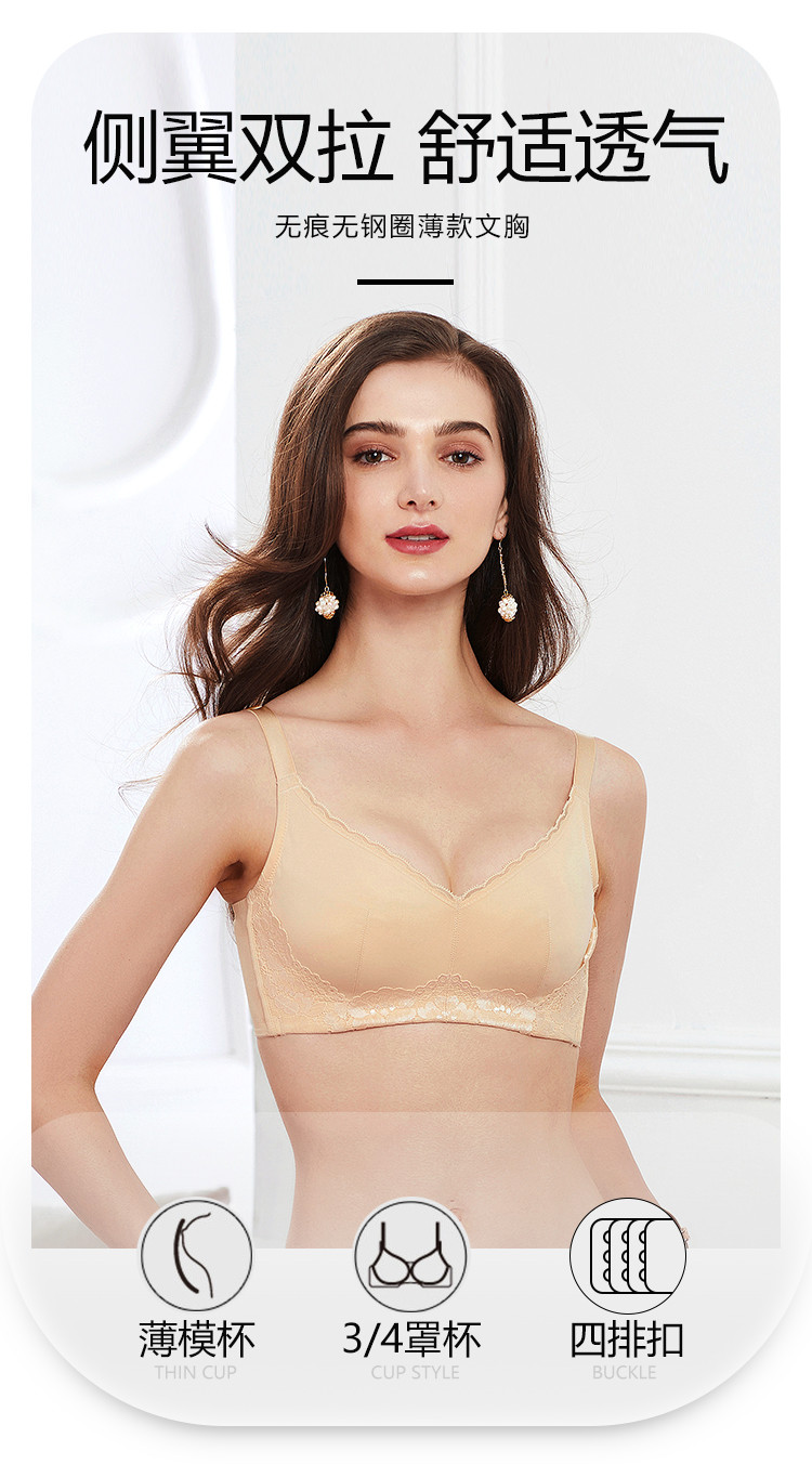 商品名称:【聚拢无痕】无钢圈薄杯舒适透气内衣夏季薄款侧收上托文胸罩 912971