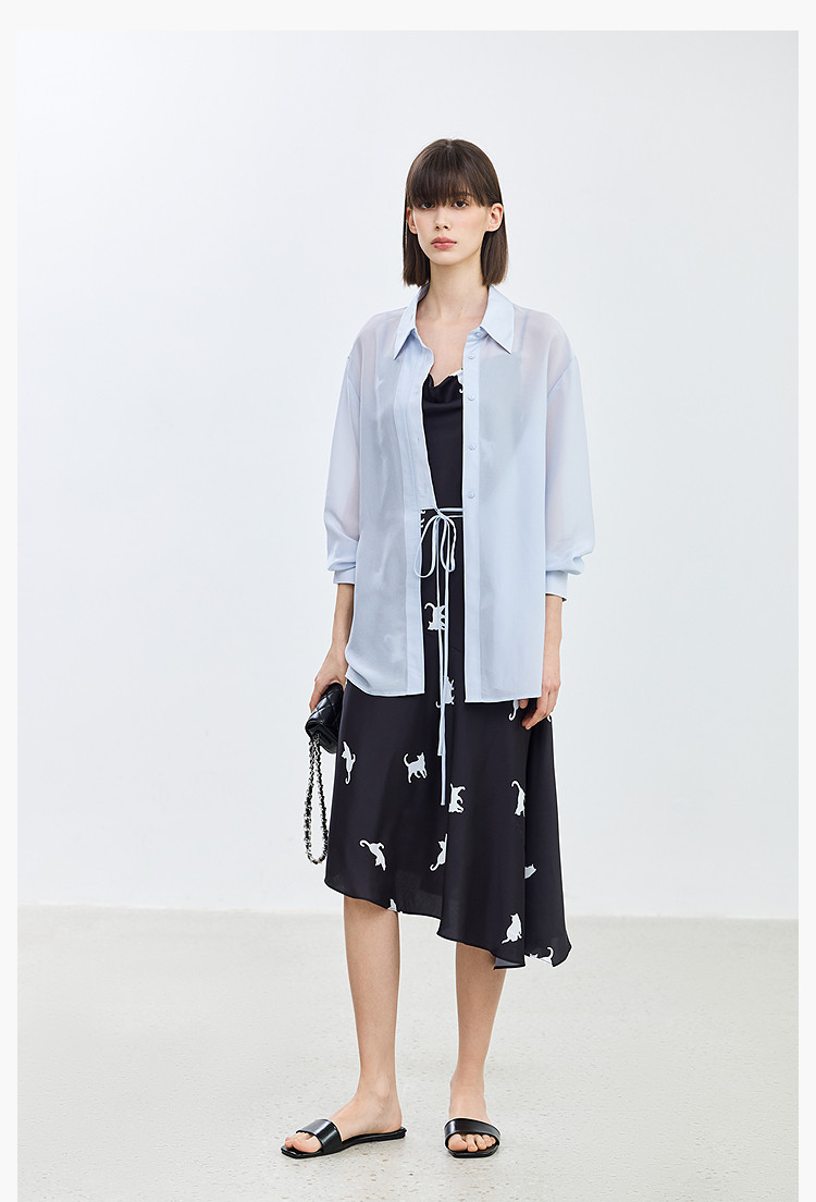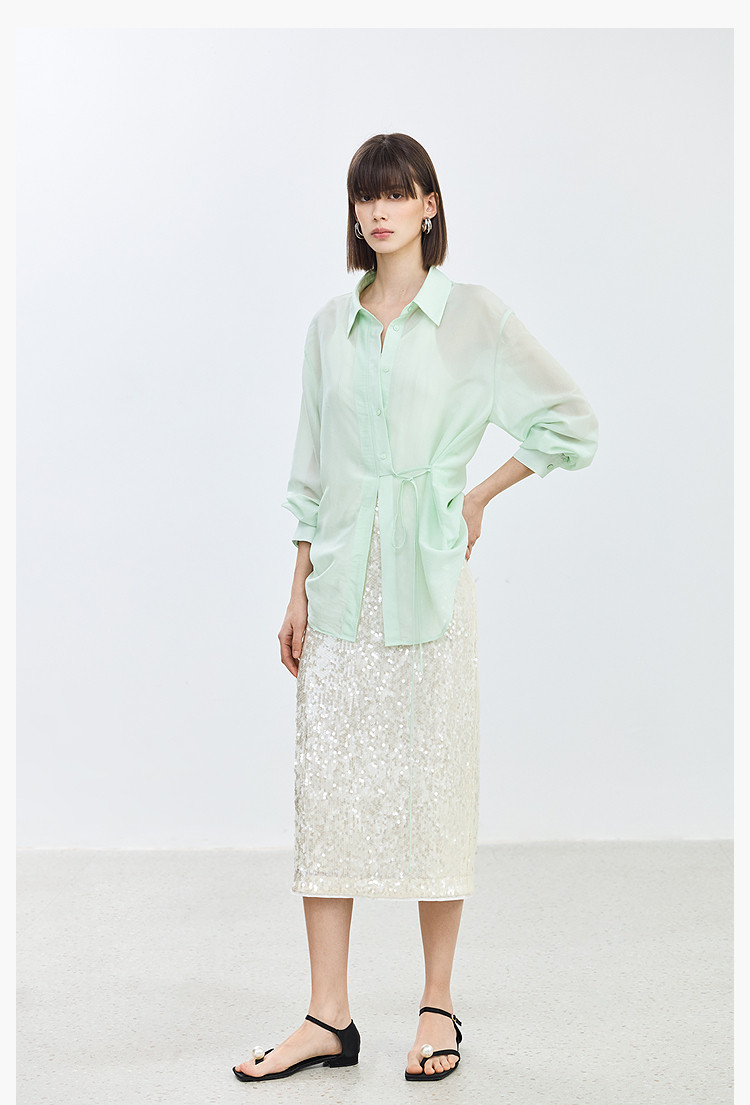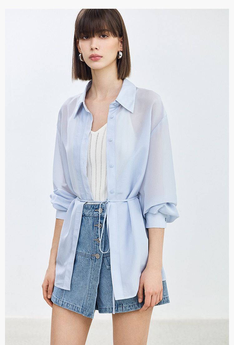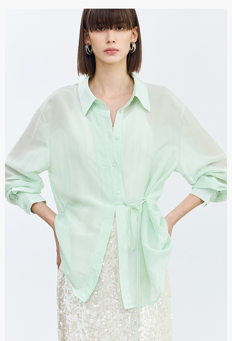 【春季】设计感不对称系带凉爽醋酸通勤款衬衫 115035