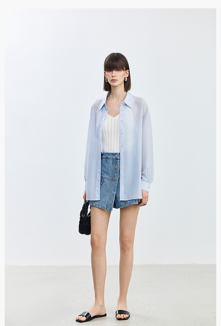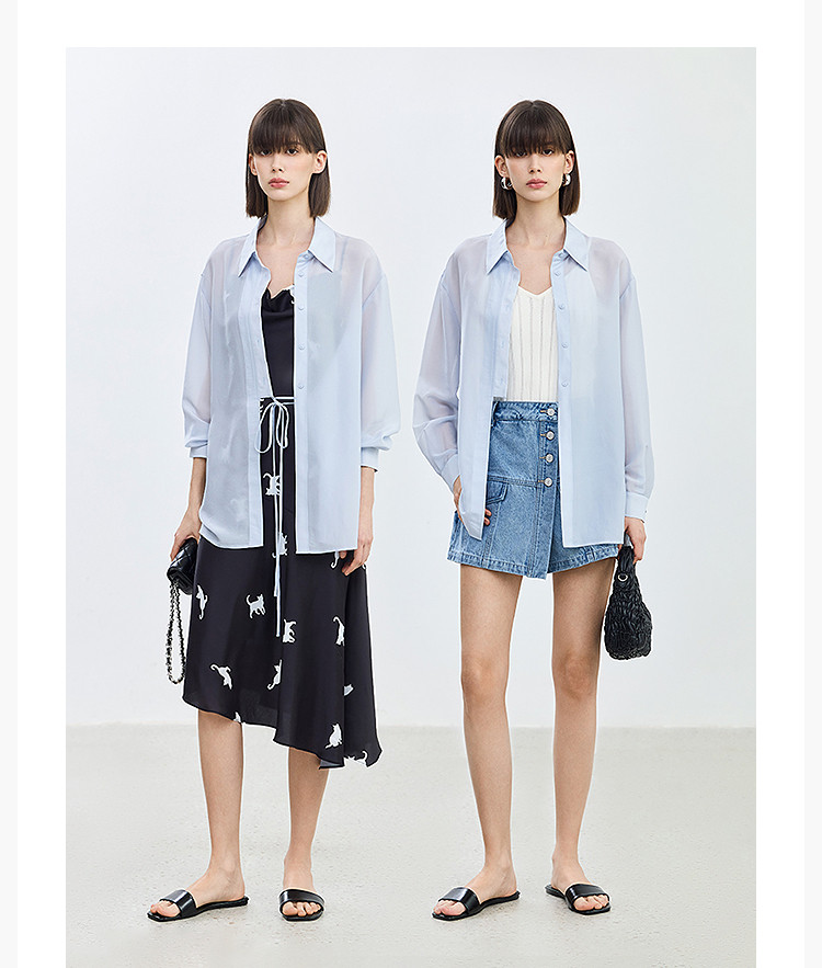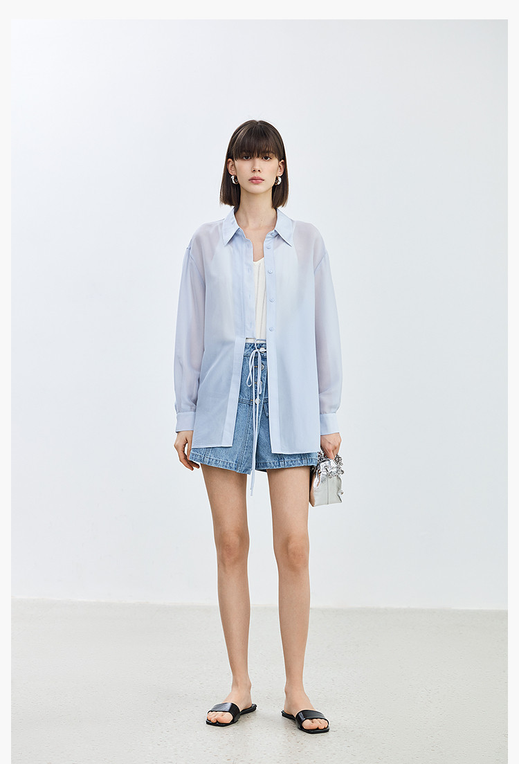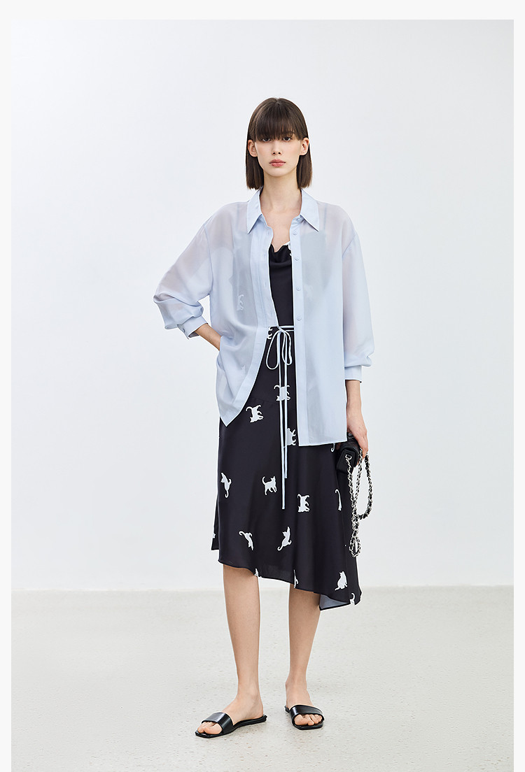 【春季】设计感不对称系带凉爽醋酸通勤款衬衫 115035