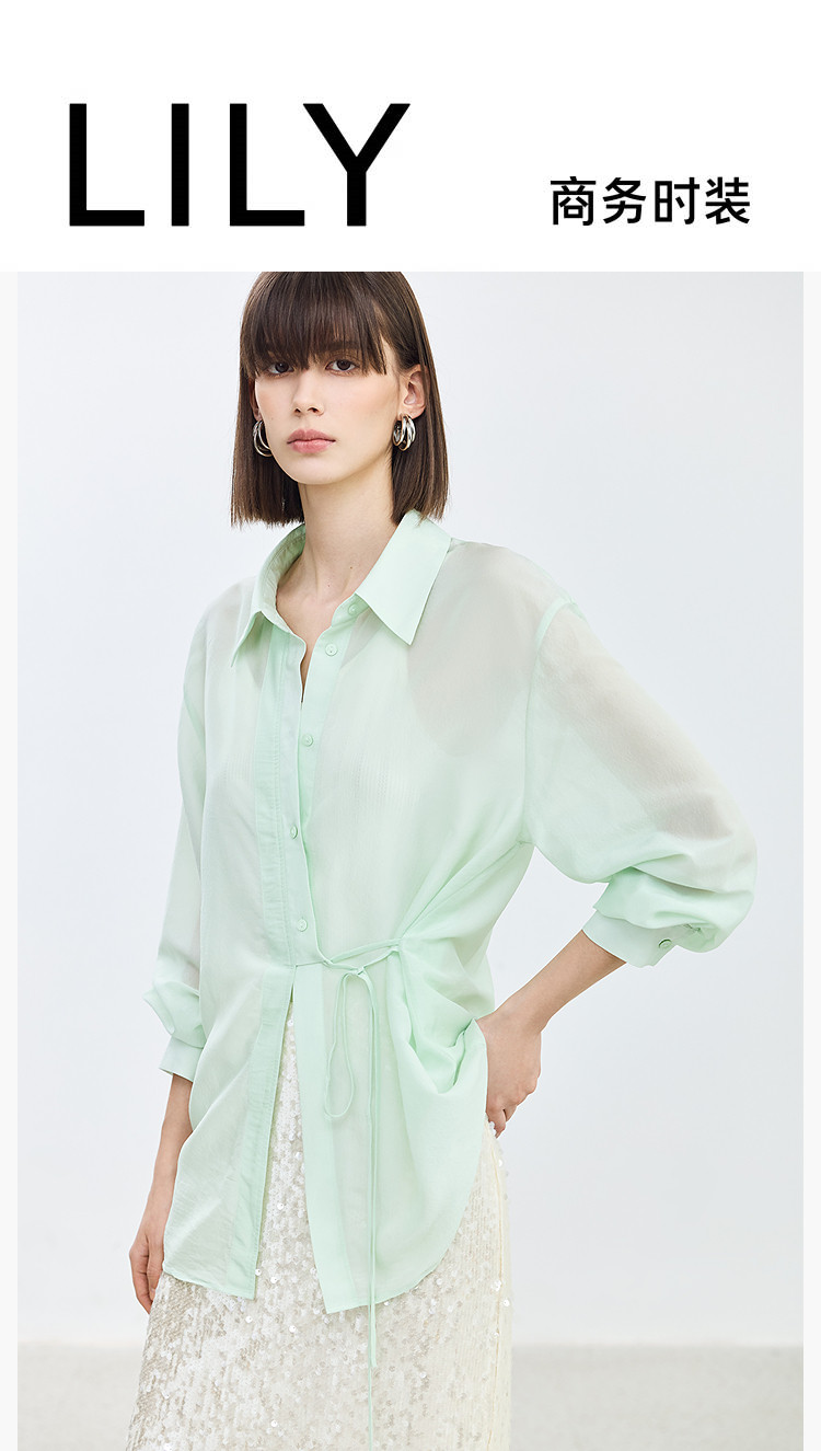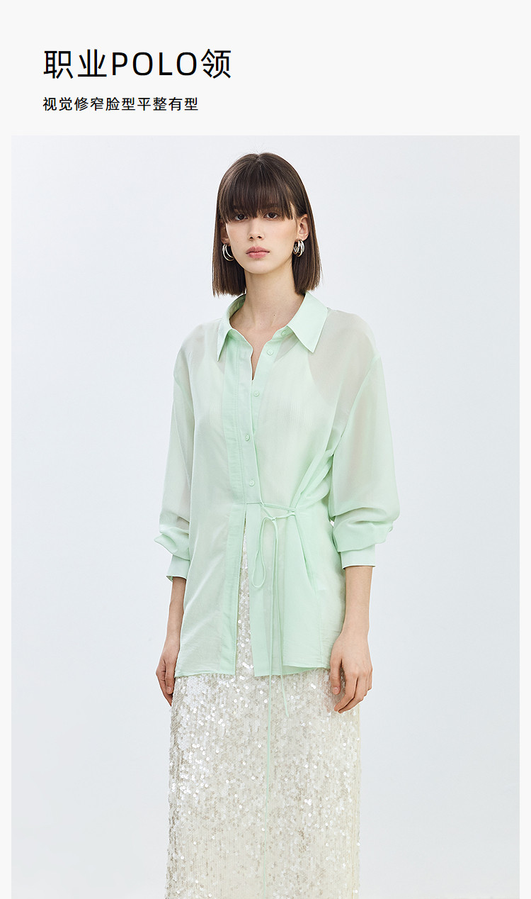 商品名称:【春季】设计感不对称系带凉爽醋酸通勤款衬衫 115035