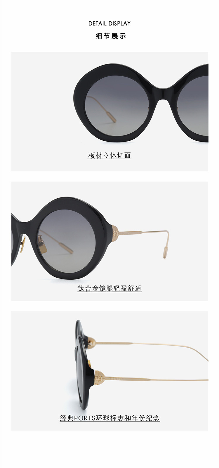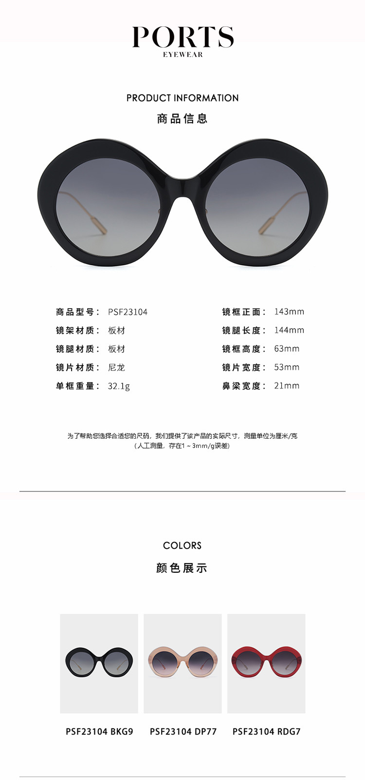 商品名称:PORTS休闲女款时尚复古立体切面板材太阳镜PSF23104 807690