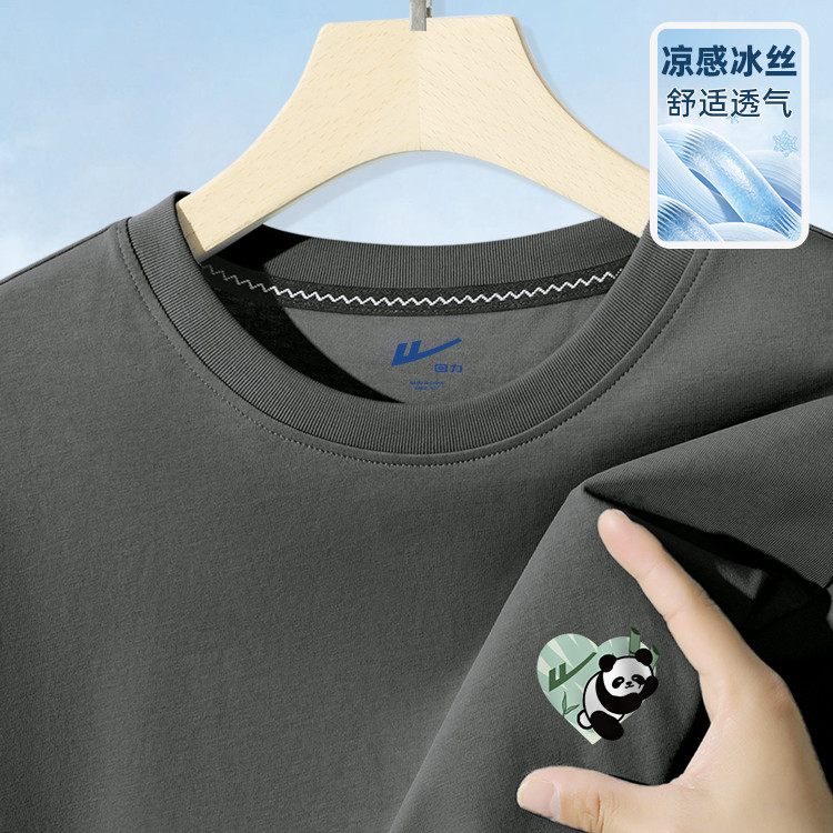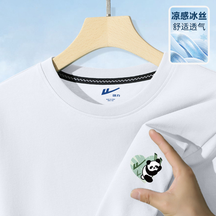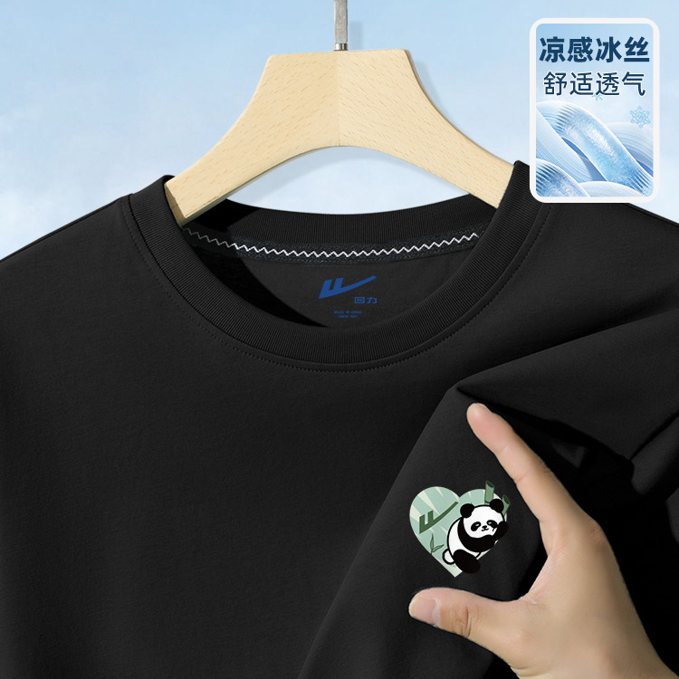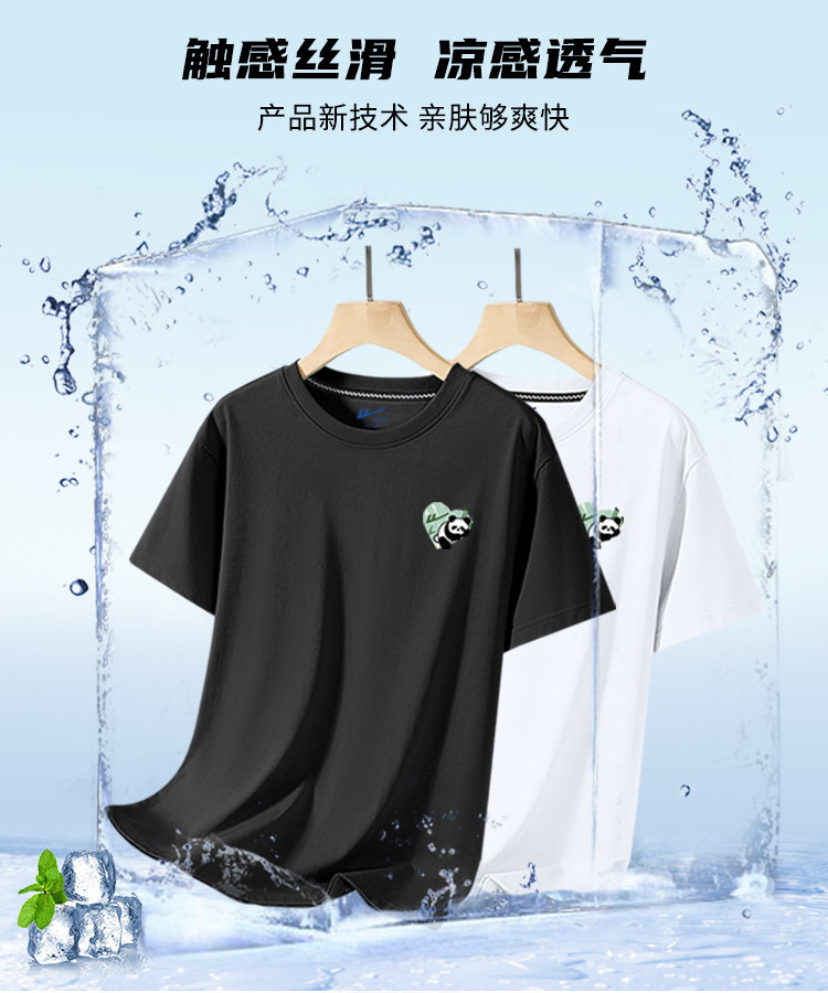 商品名称:【冰感】青少年夏季冰丝短袖T恤男夏季卡通熊猫宽松潮牌运动上衣 332947