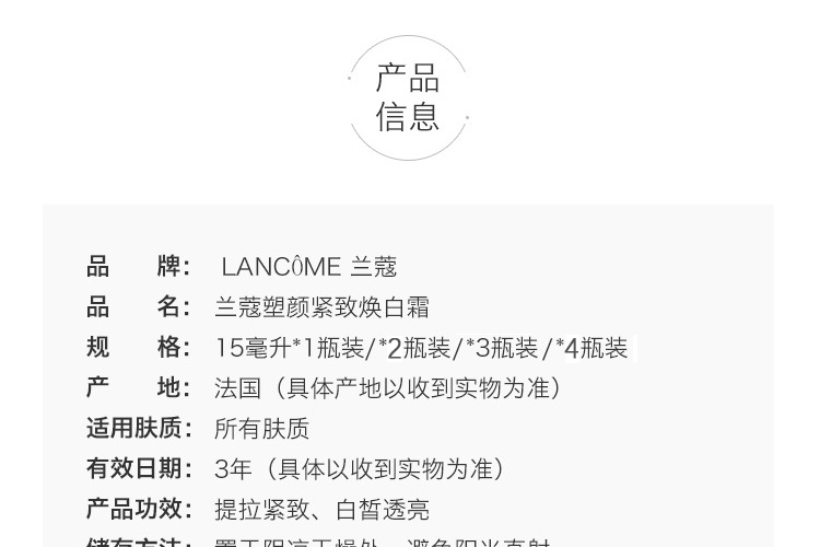 商品名称:Lancome/兰蔻 立体5D塑颜焕白霜 15ml 雪花霜 补水保湿