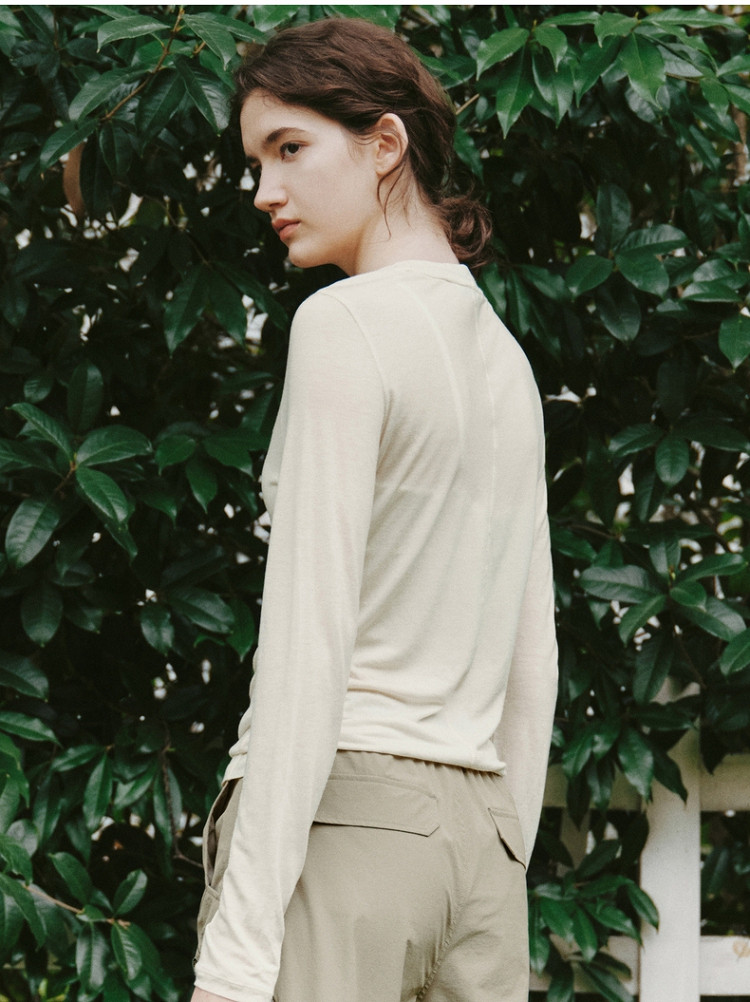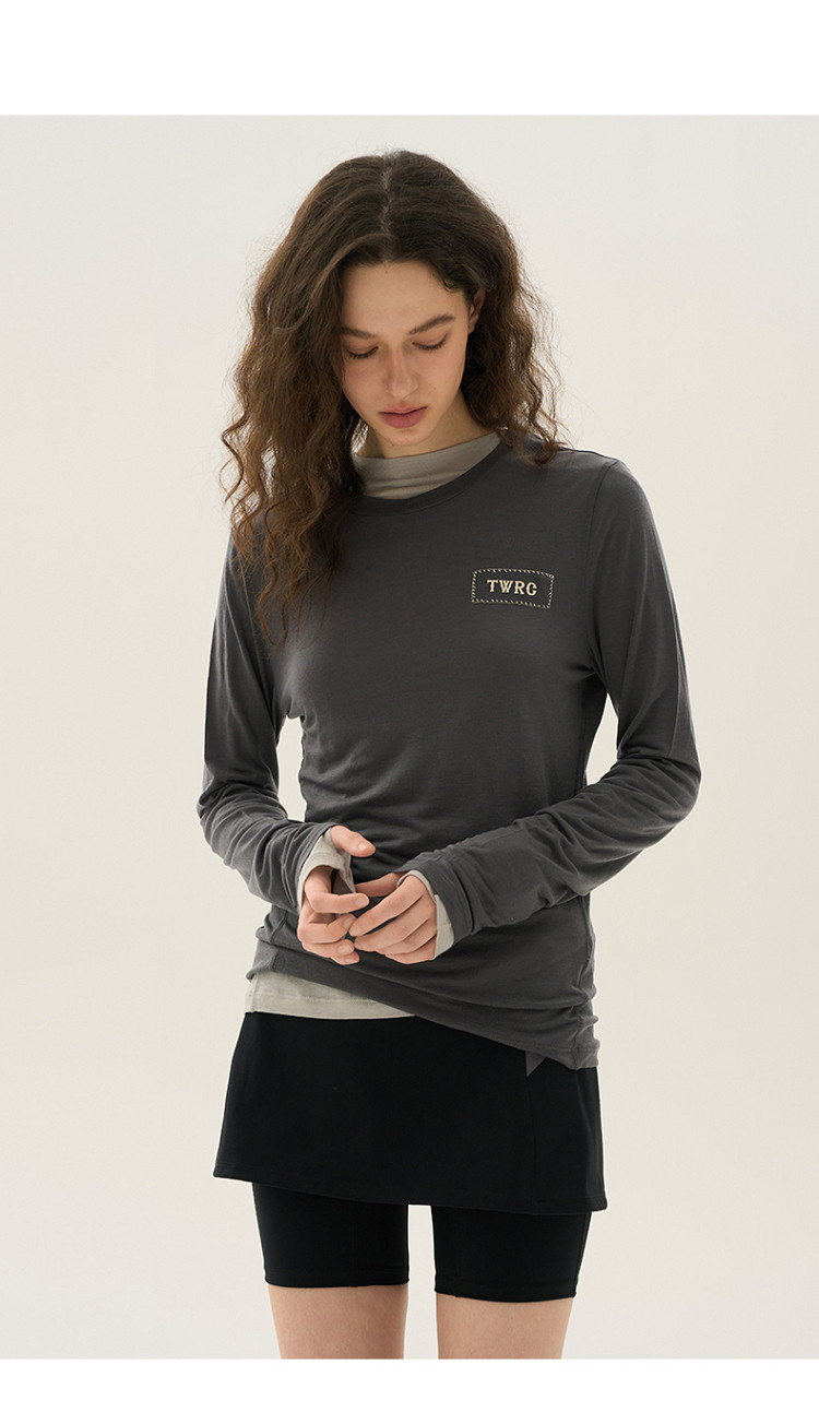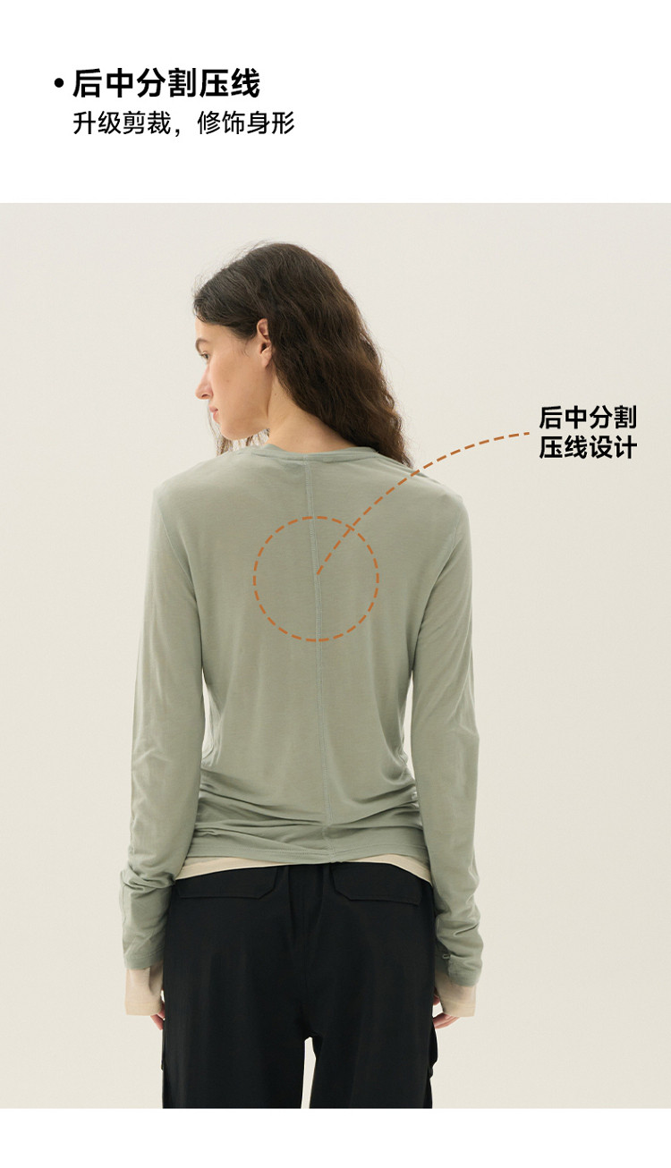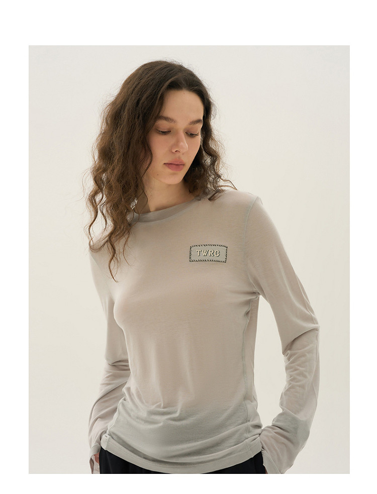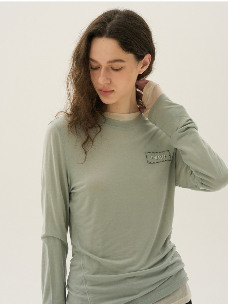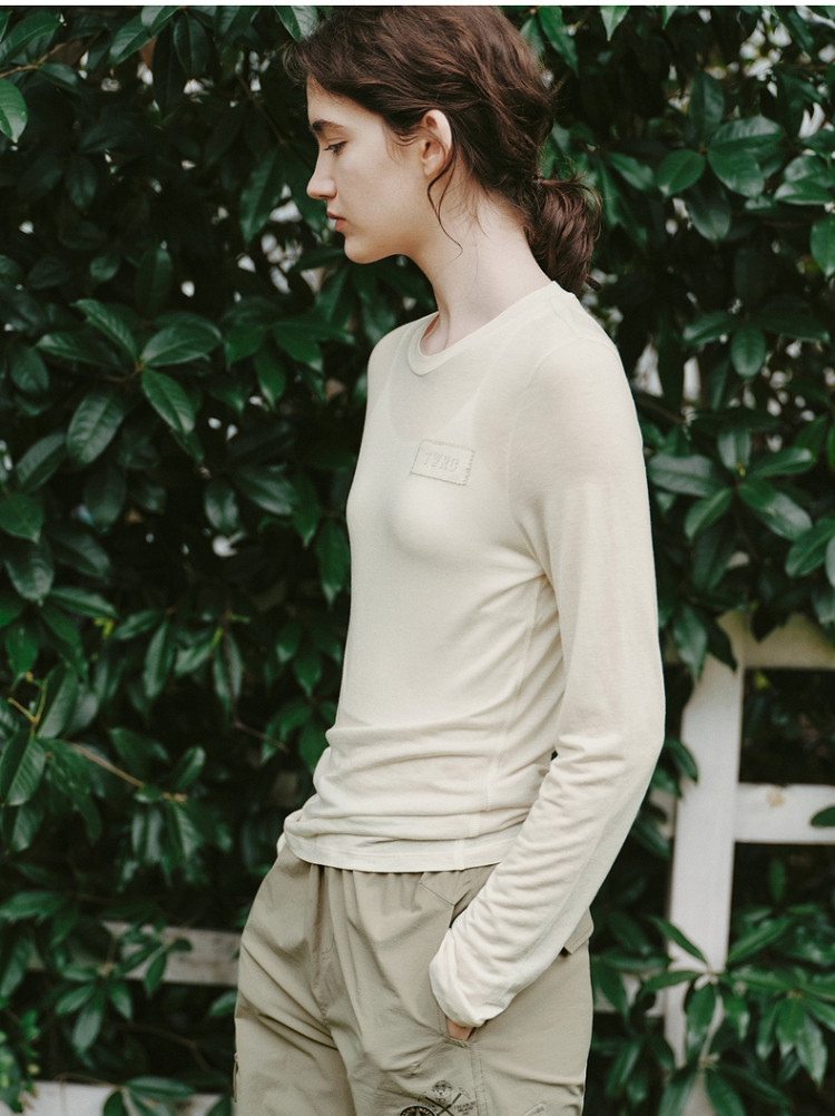 长袖T恤女春夏轻薄天丝绵羊毛混纺圆领刺绣打底衫女 714049