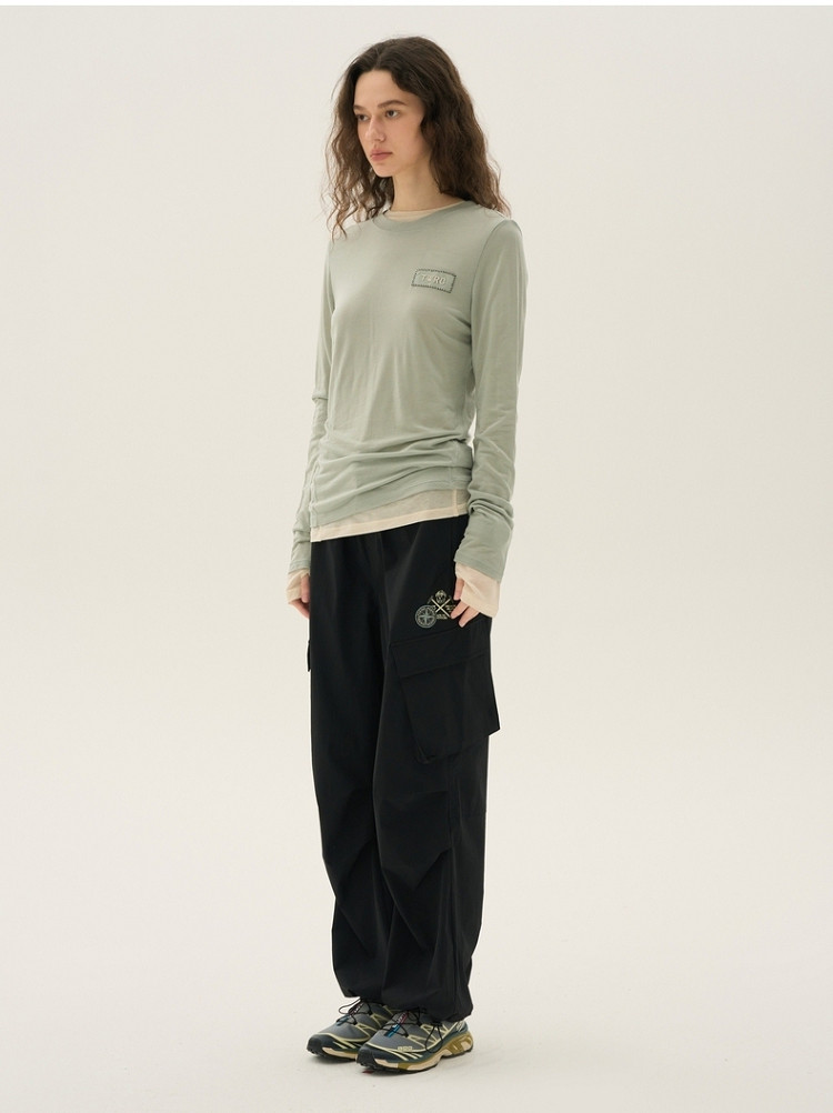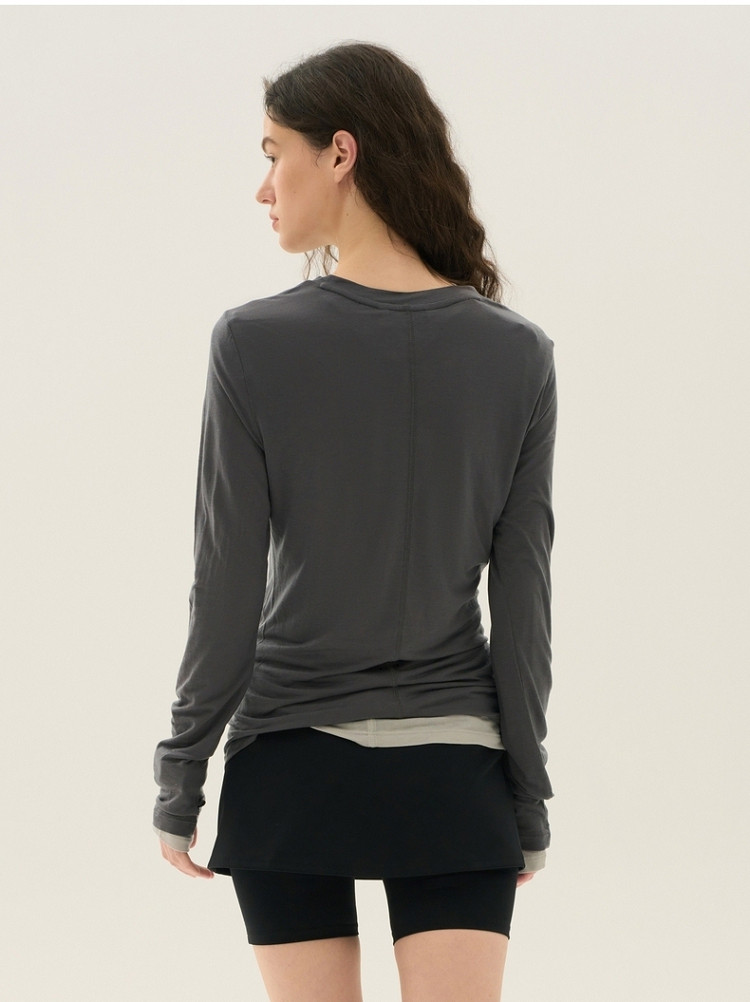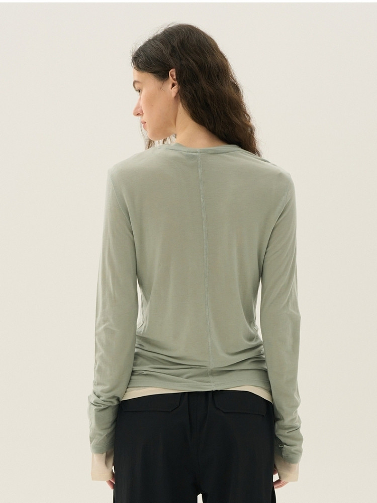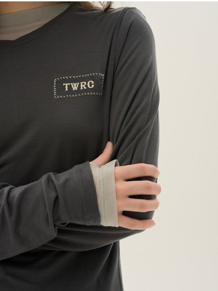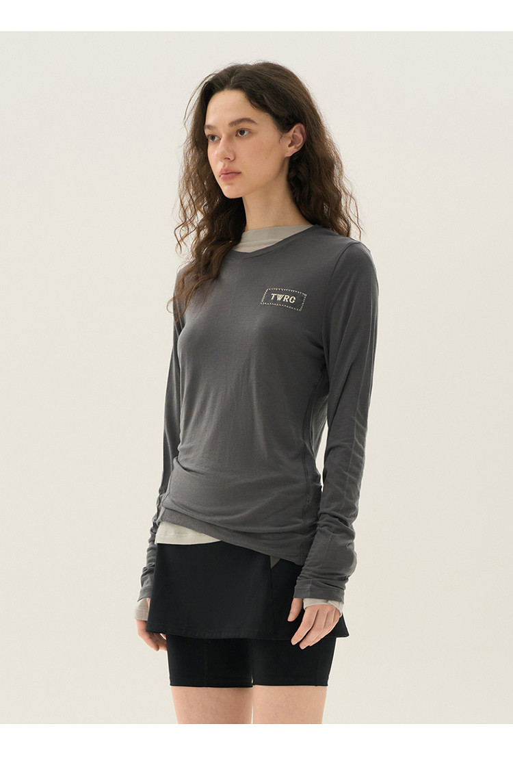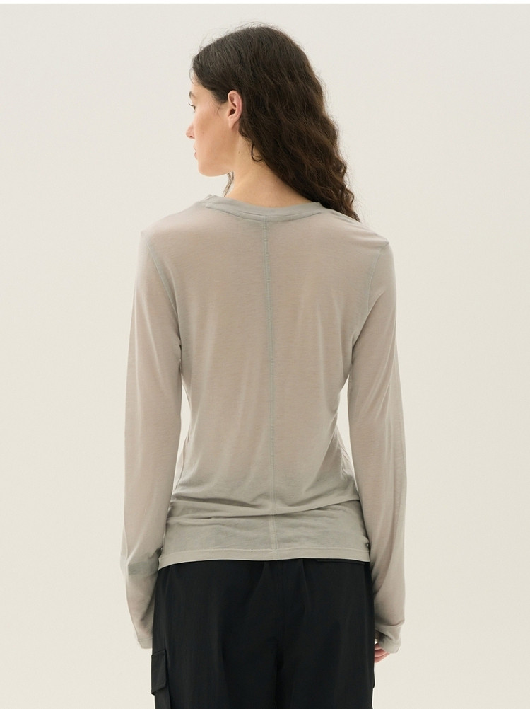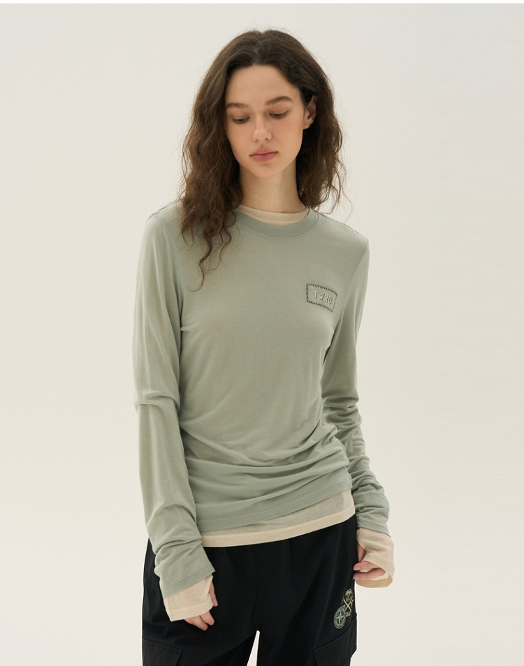 长袖T恤女春夏轻薄天丝绵羊毛混纺圆领刺绣打底衫女 714049