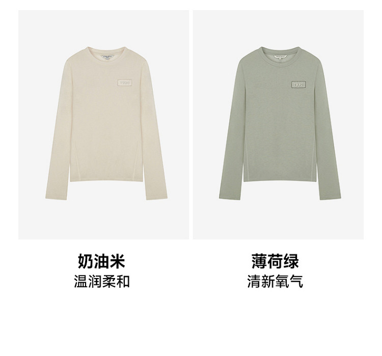 商品名称:长袖T恤女春夏轻薄天丝绵羊毛混纺圆领刺绣打底衫女 714049