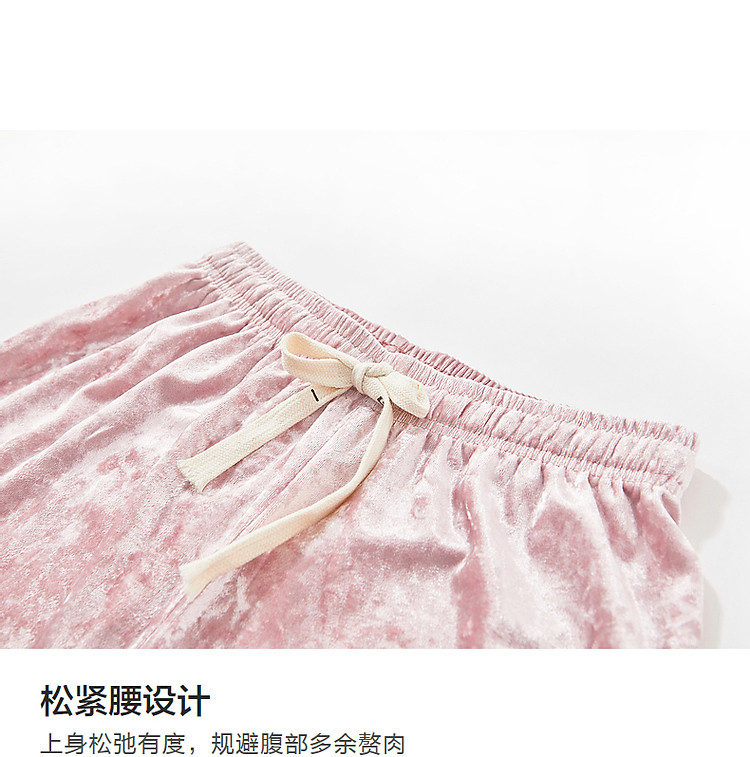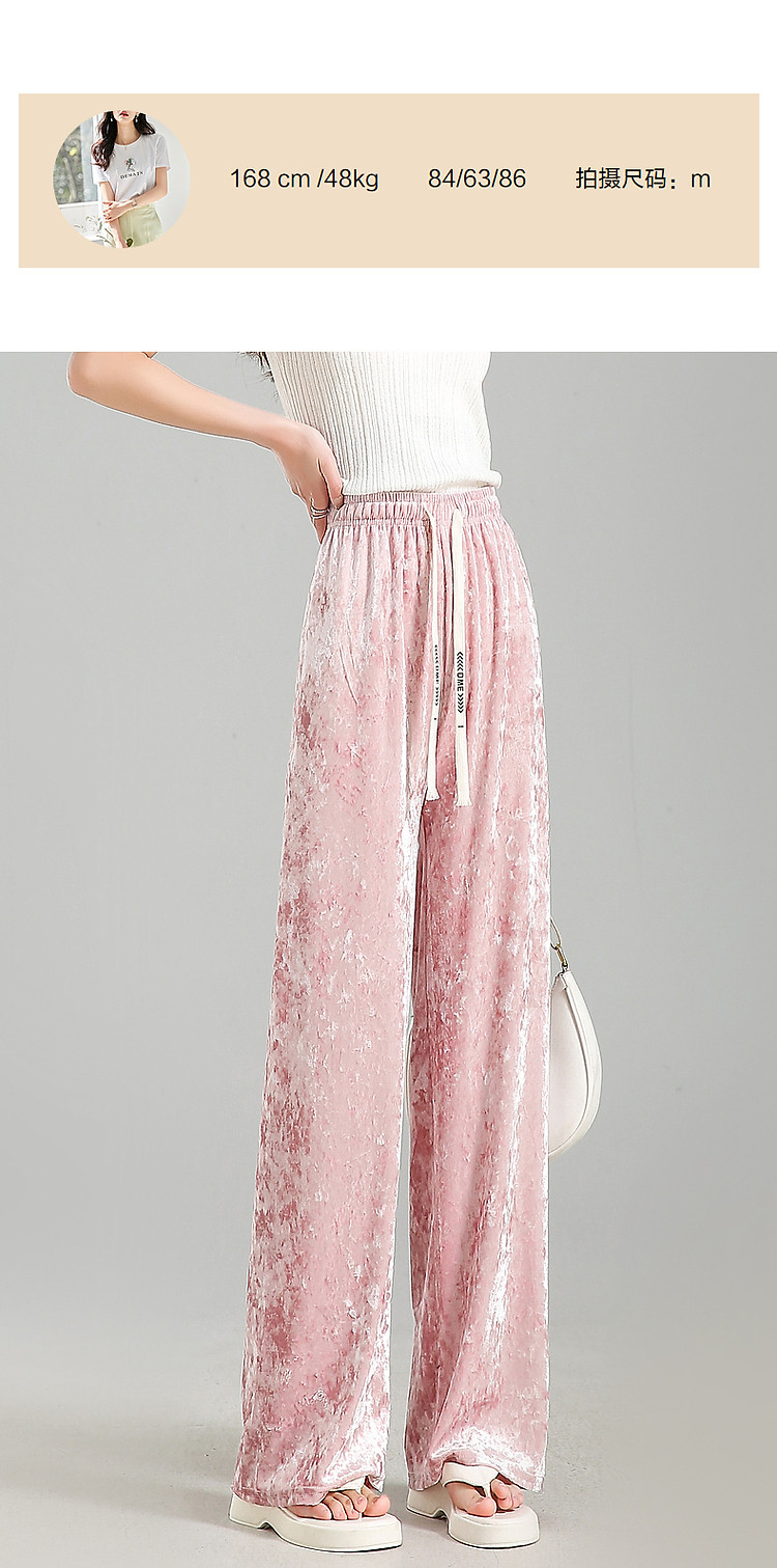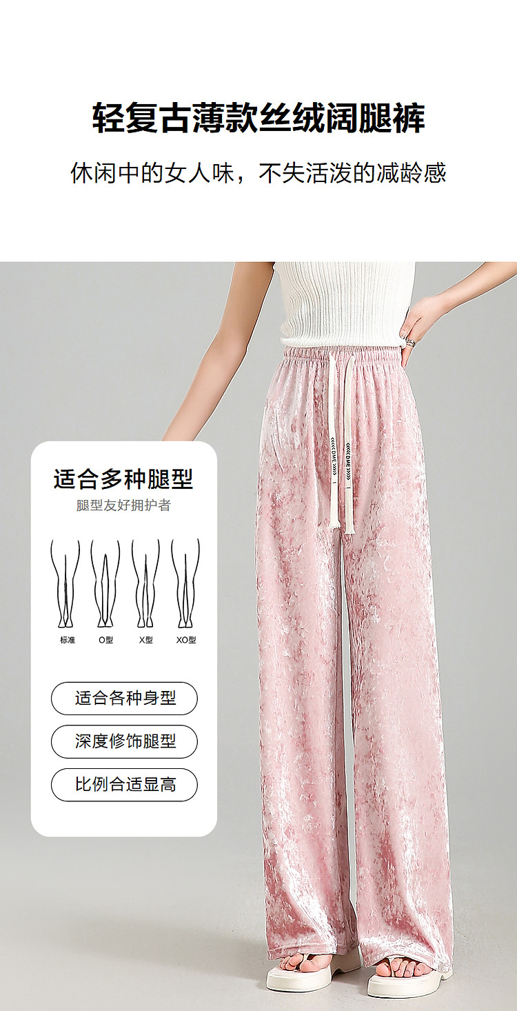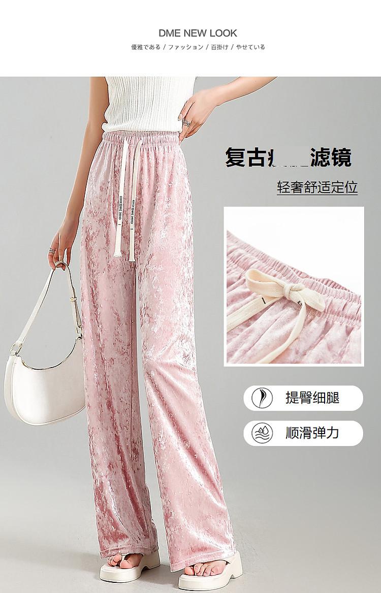 商品名称:【丝绒草莓拿铁】夏轻复古抽绳松紧腰优雅女式阔腿藏肉好搭休闲裤 819649