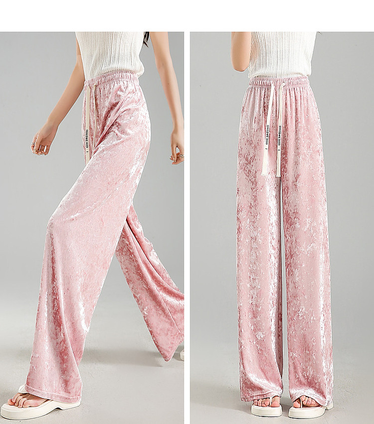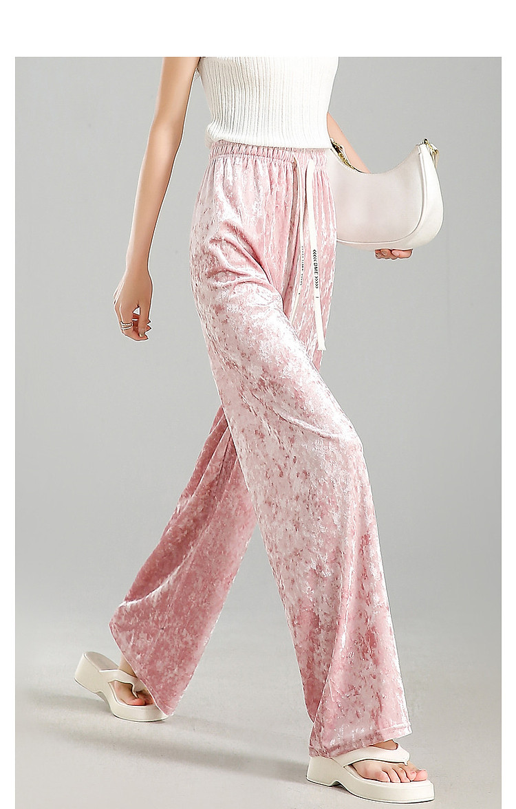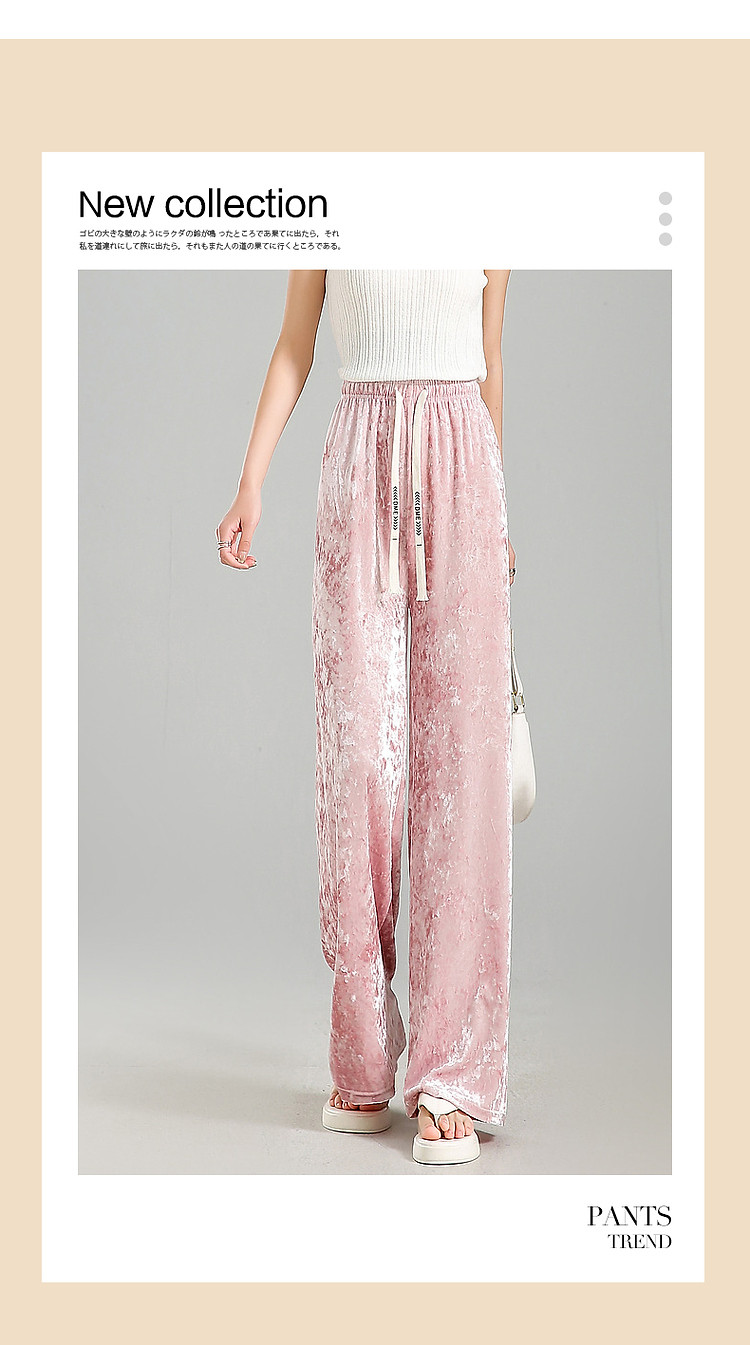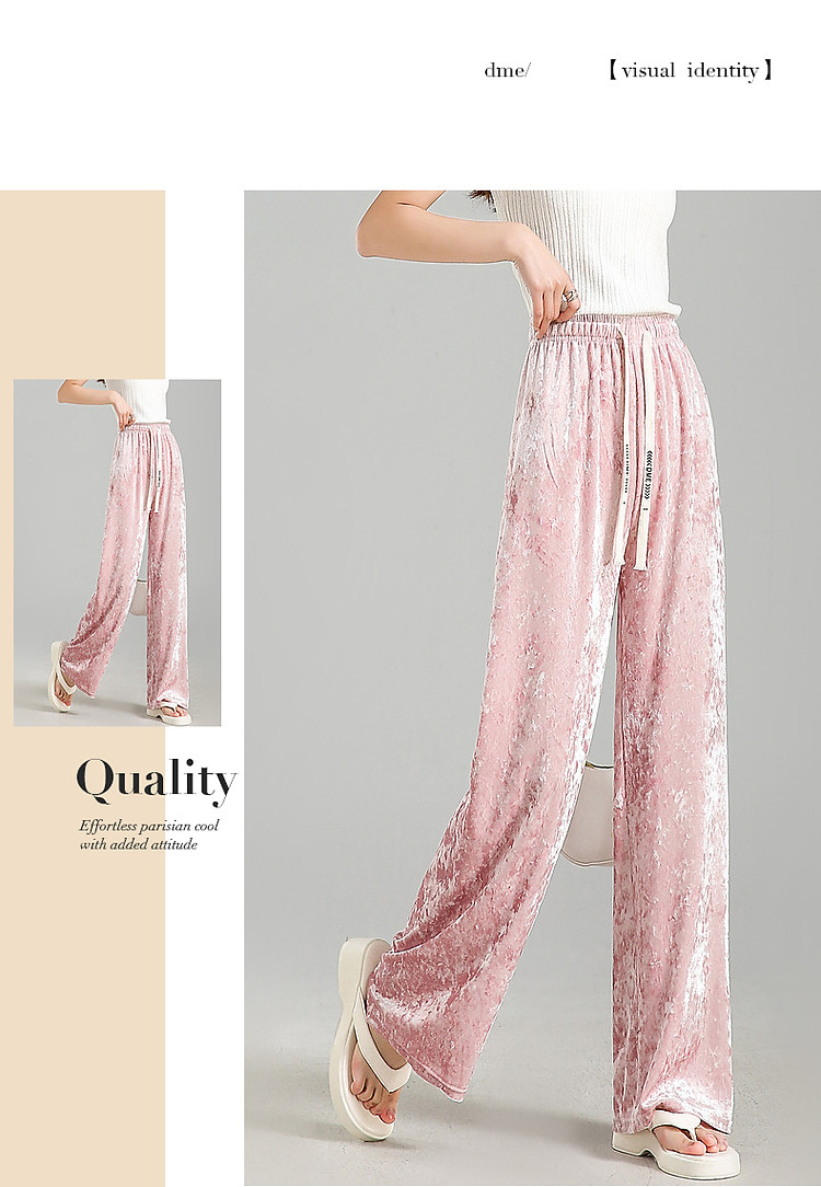 商品名称:【丝绒草莓拿铁】夏轻复古抽绳松紧腰优雅女式阔腿藏肉好搭休闲裤 819649