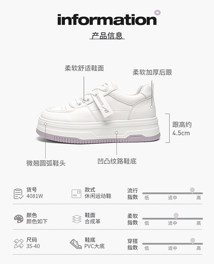 商品名称:【春季热卖】时尚百搭女士休闲鞋小白鞋舒适透气运动鞋低帮板鞋女 611229
