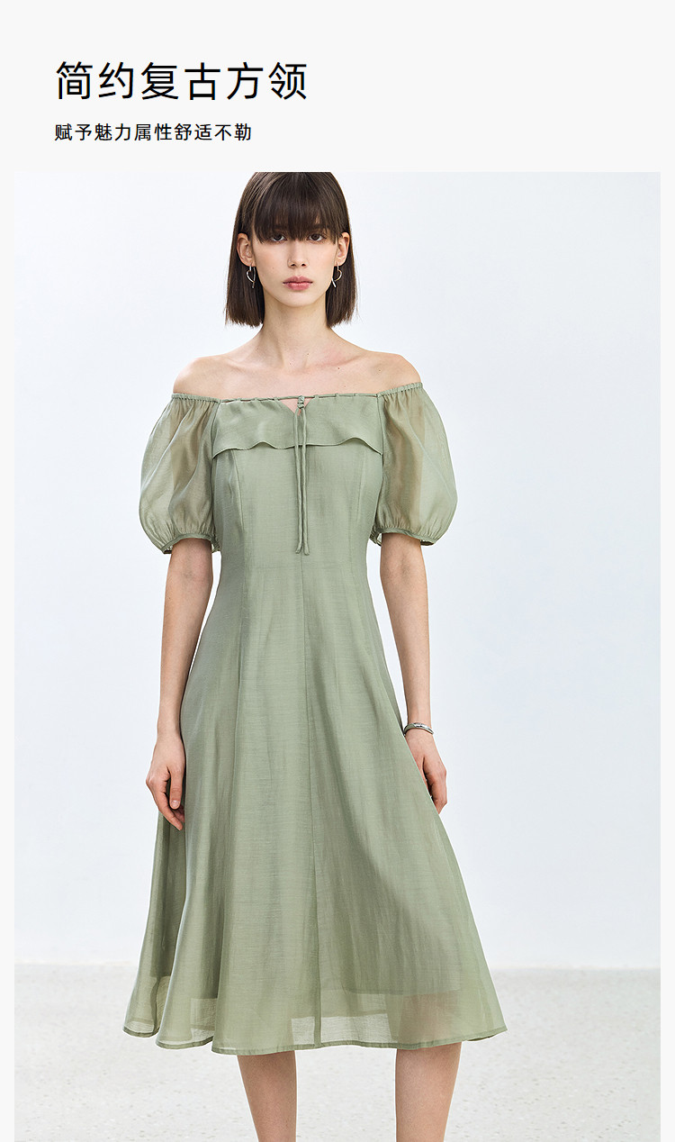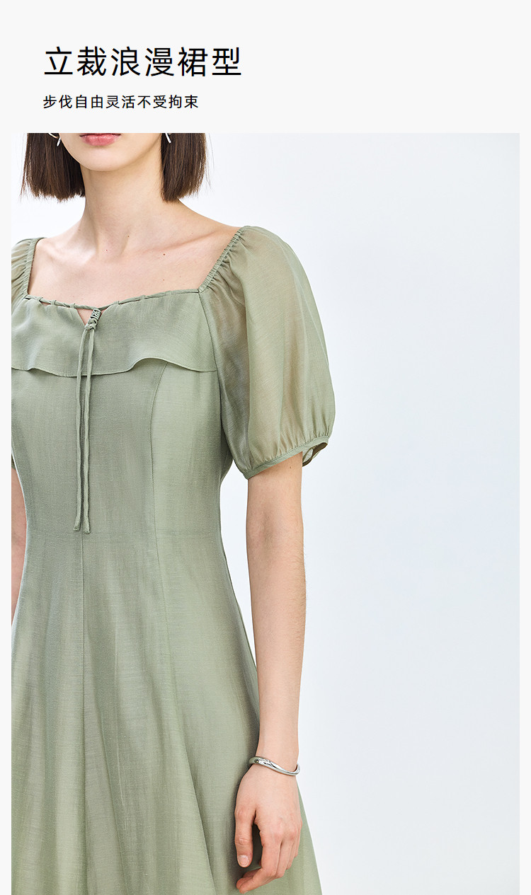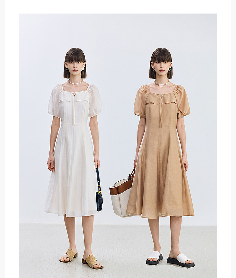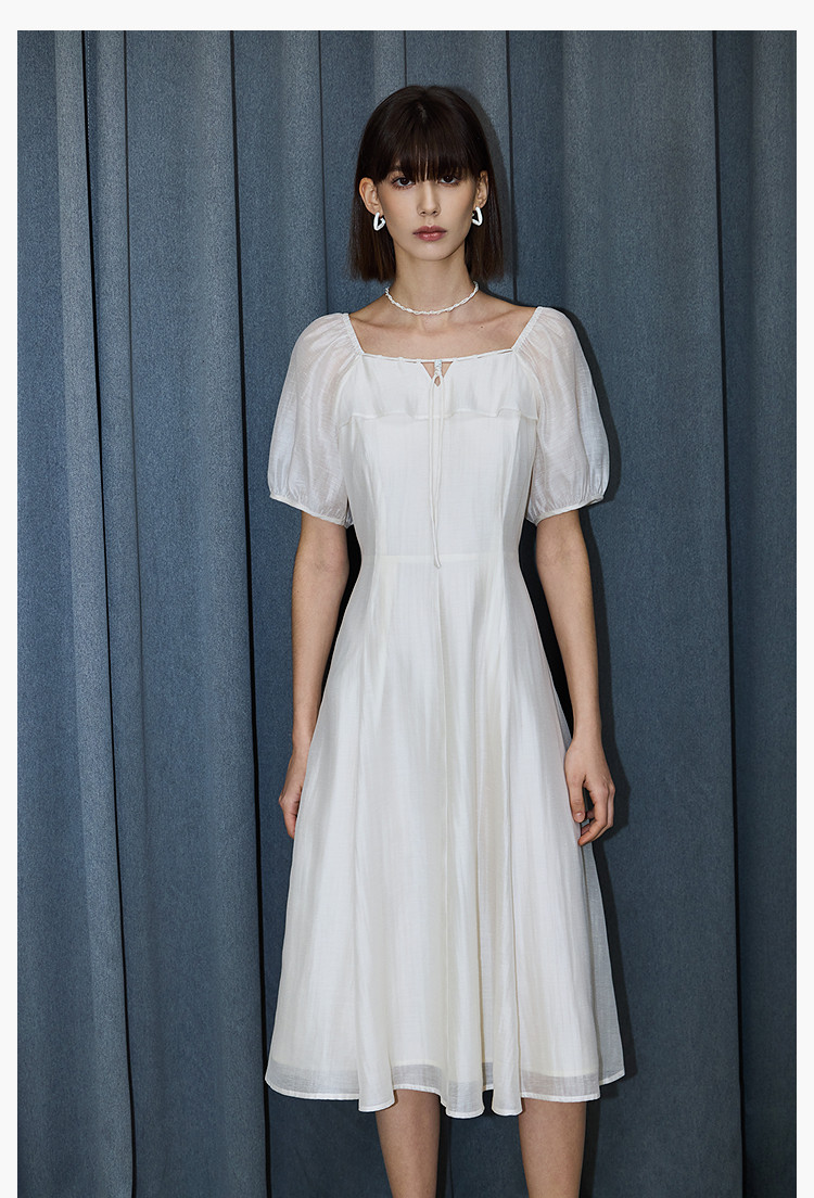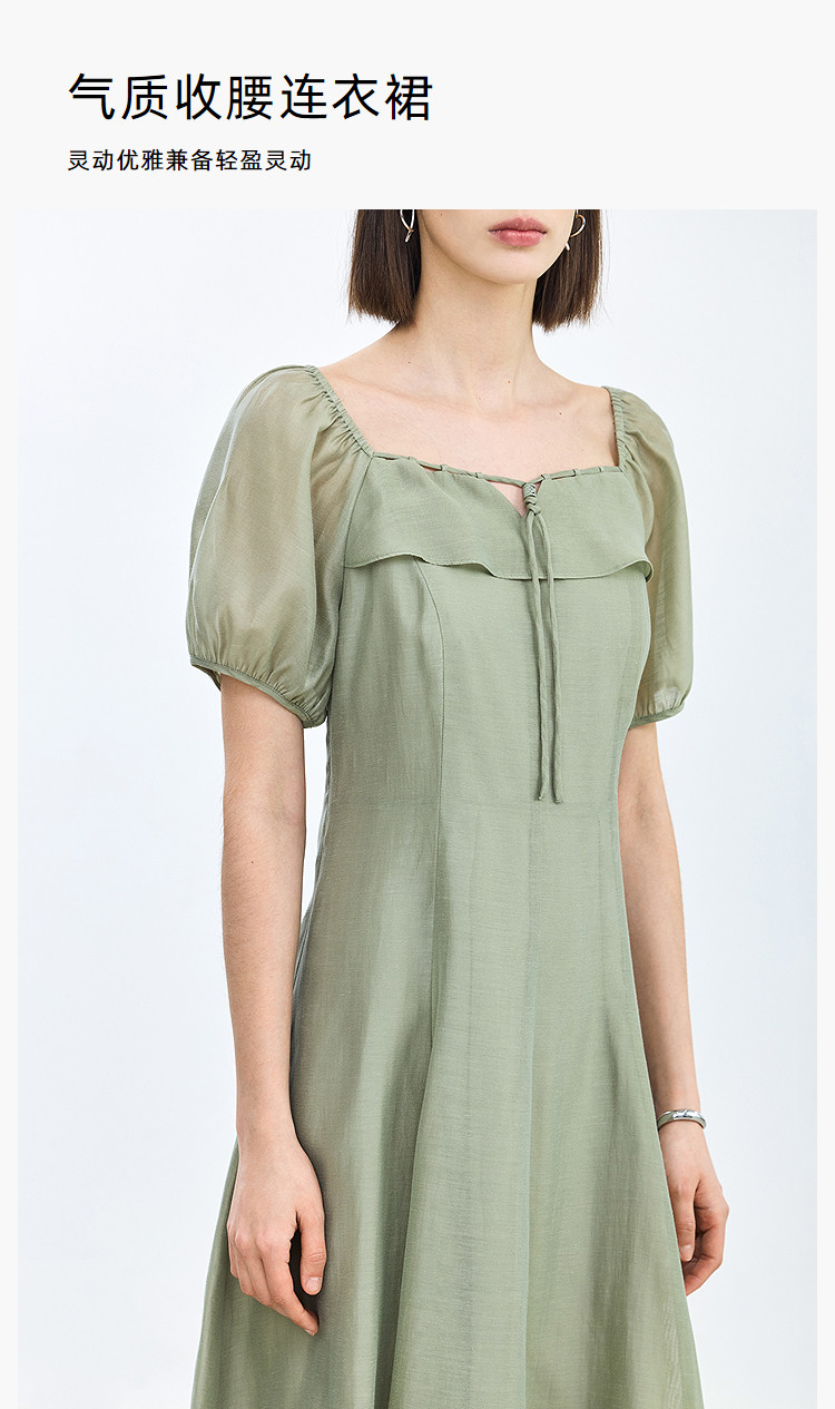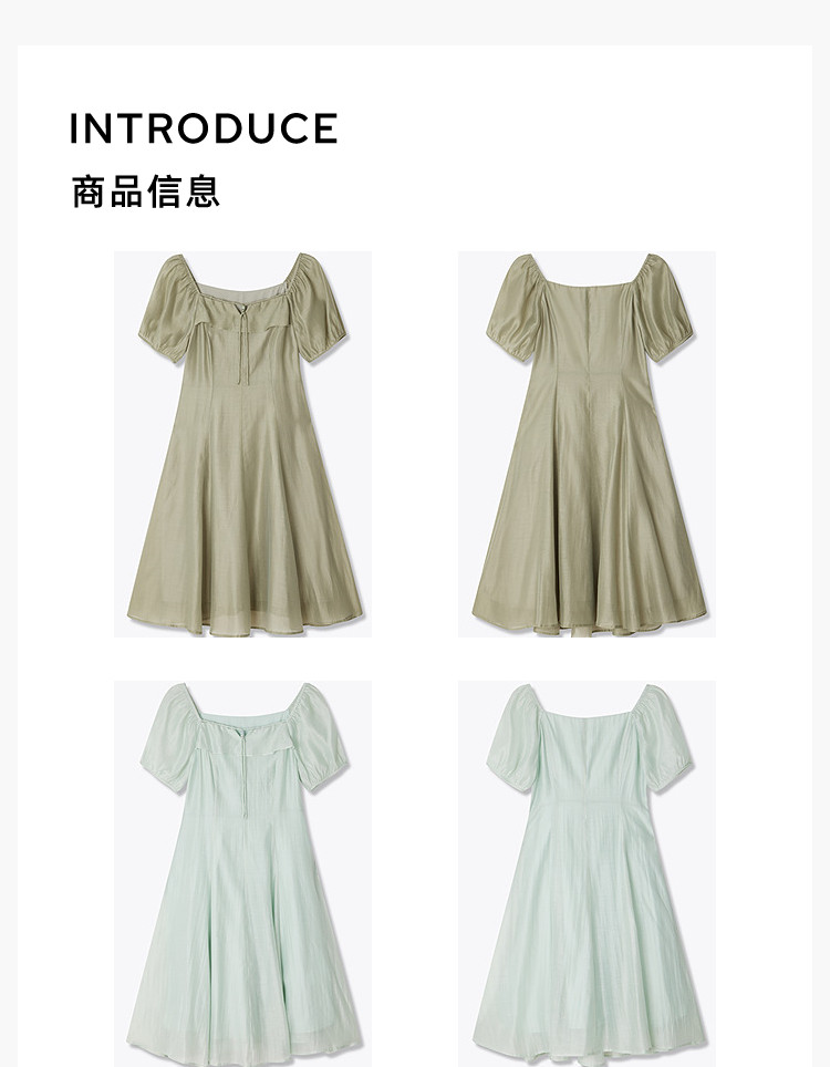 商品名称:夏季浪漫通勤款复古气质方领泡泡袖长款收腰连衣裙 222619