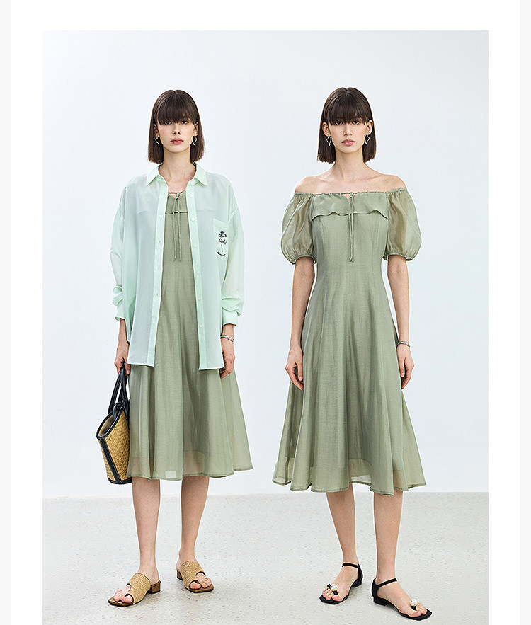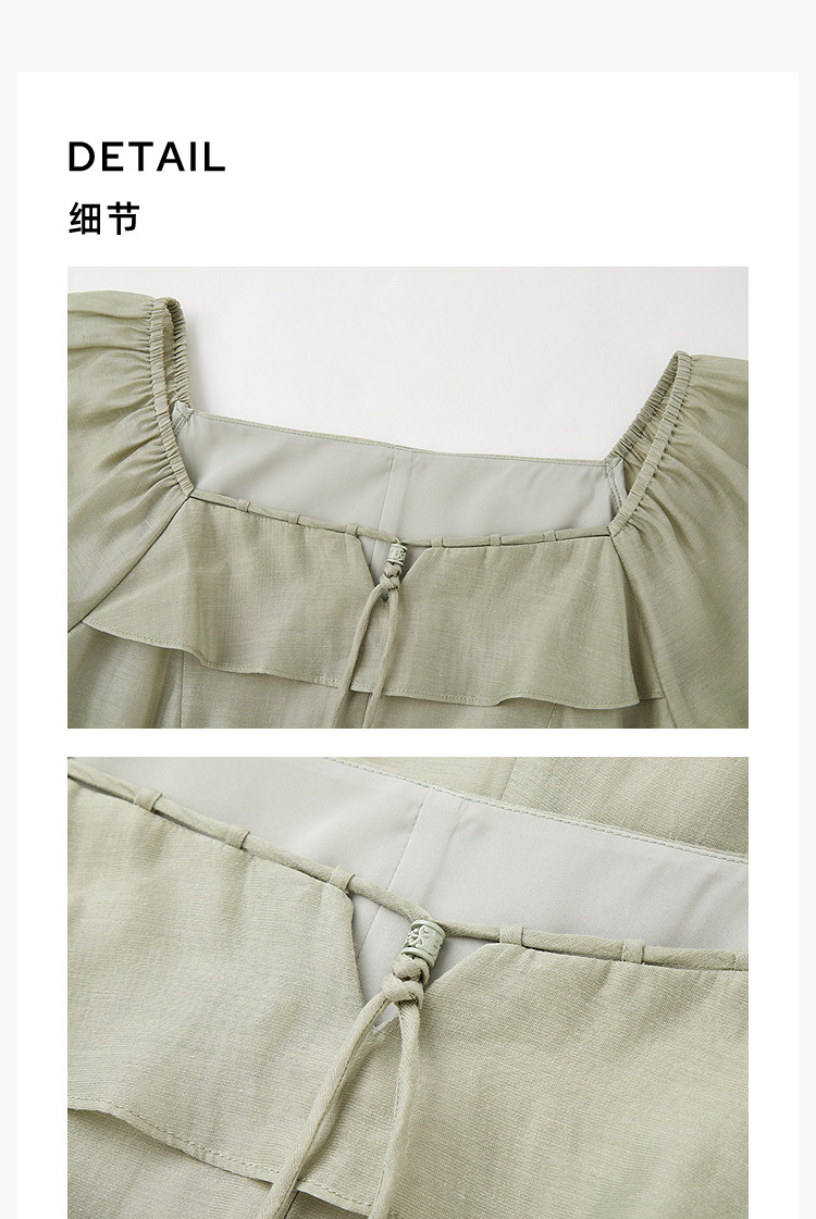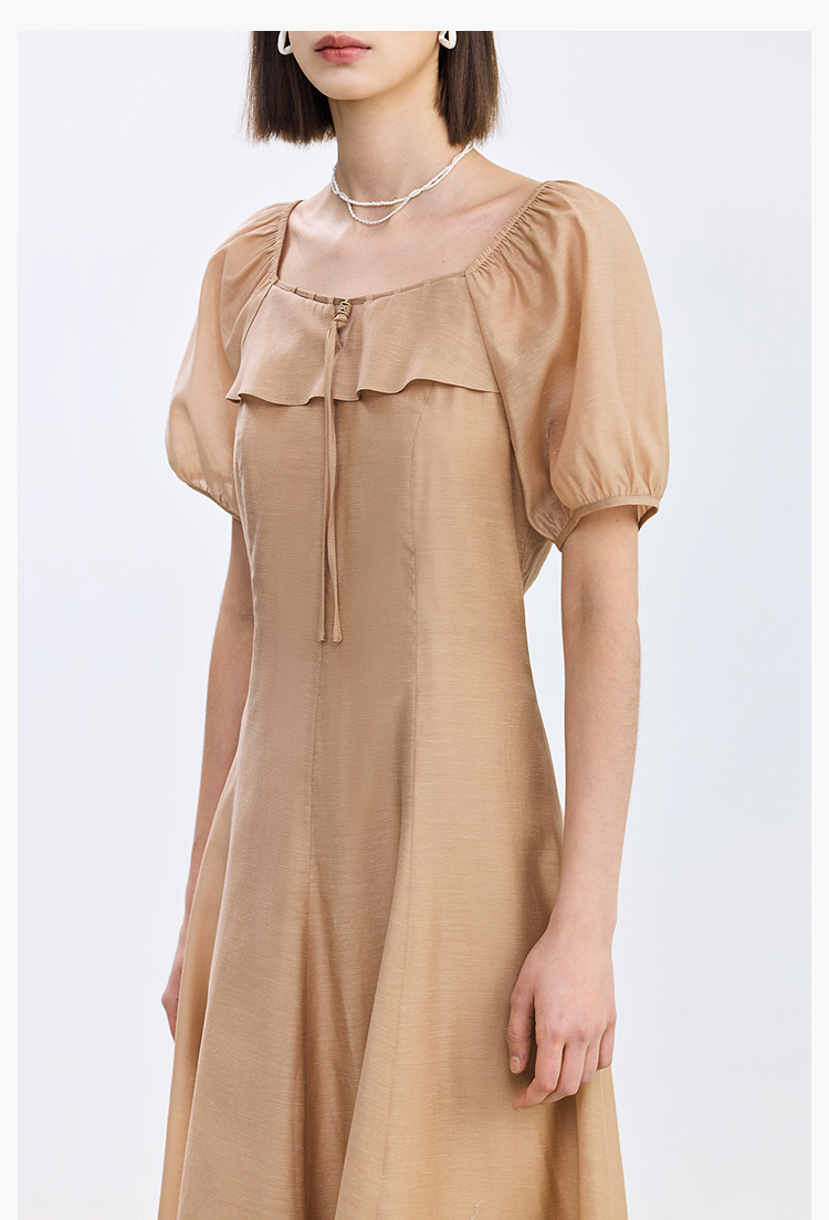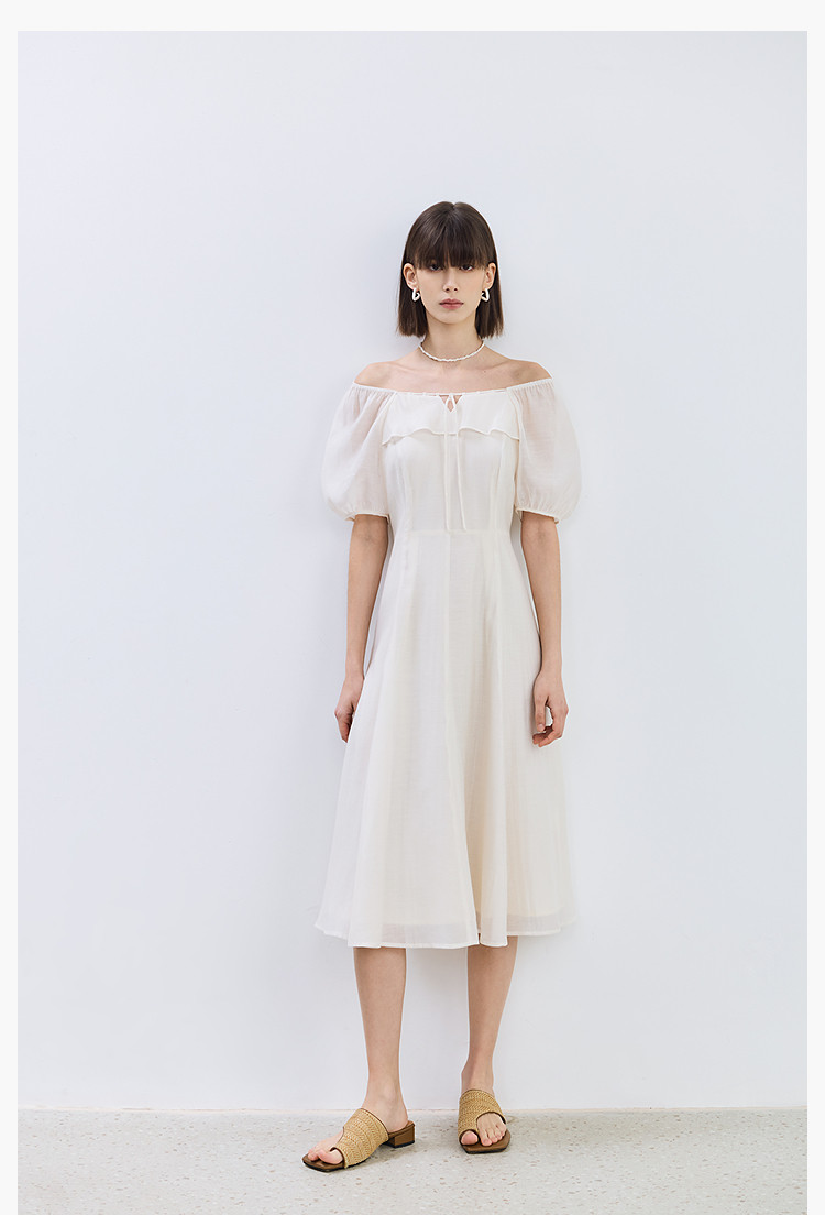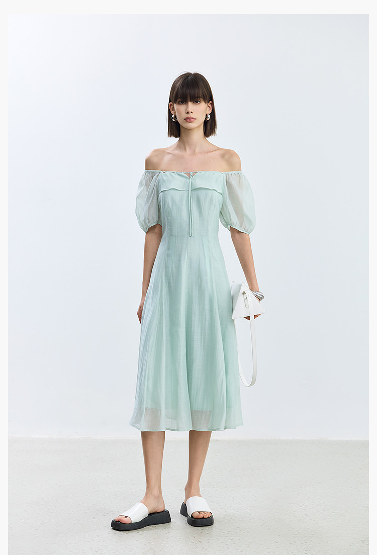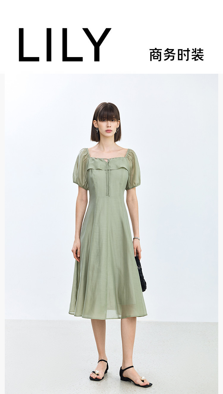 商品名称:夏季浪漫通勤款复古气质方领泡泡袖长款收腰连衣裙 222619