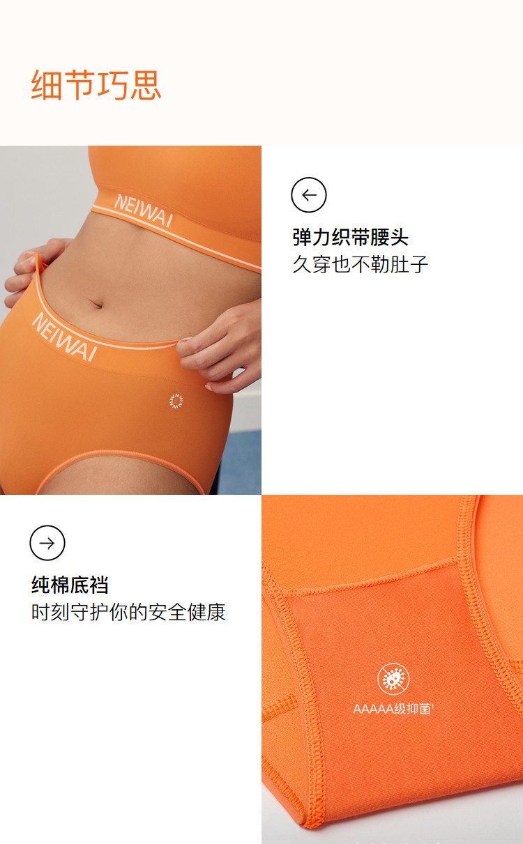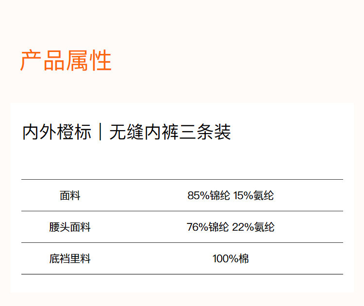 商品名称:NEIWAI内外橙标|无缝内裤三条装女士中腰三角裤抑菌舒适 297290