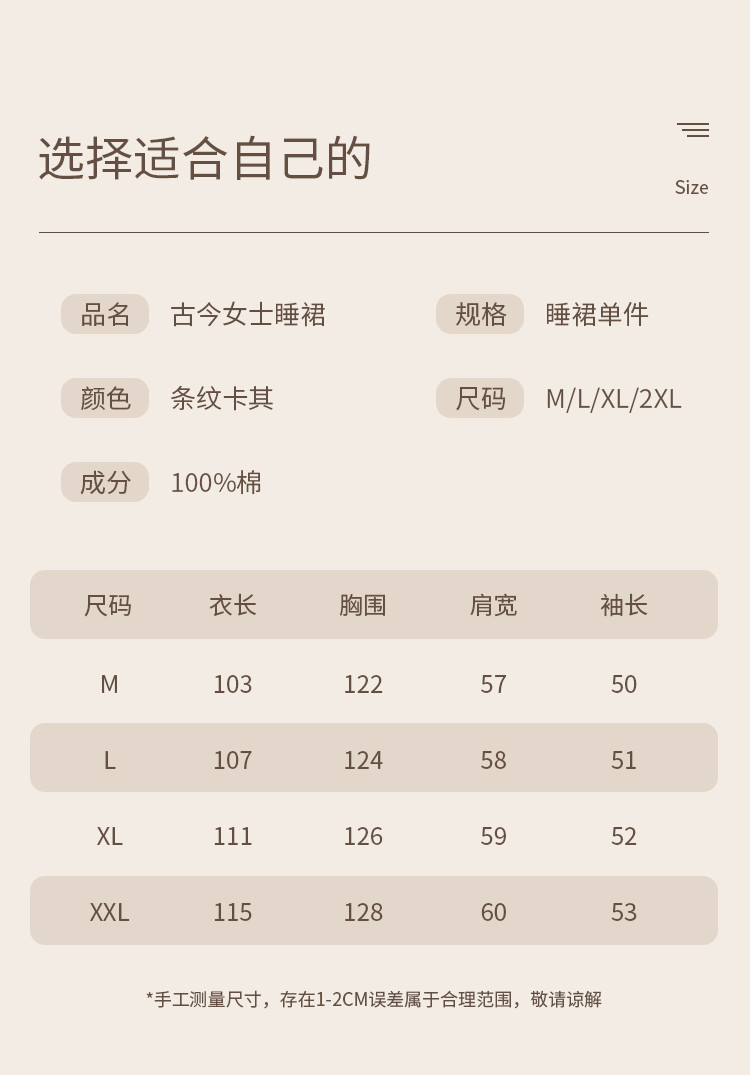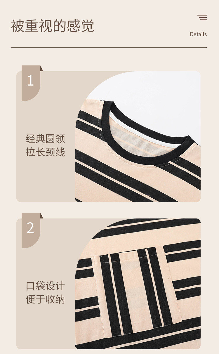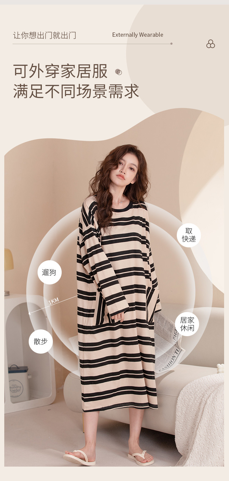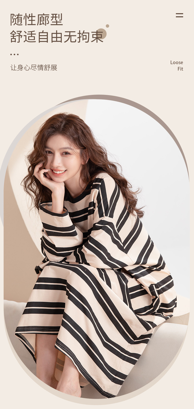 商品名称:【100%棉】慵懒风条纹长袖睡裙女春秋款高级感纯棉家居服睡衣 735691
