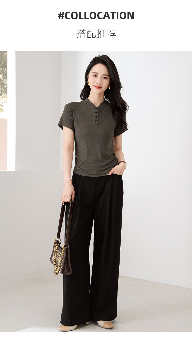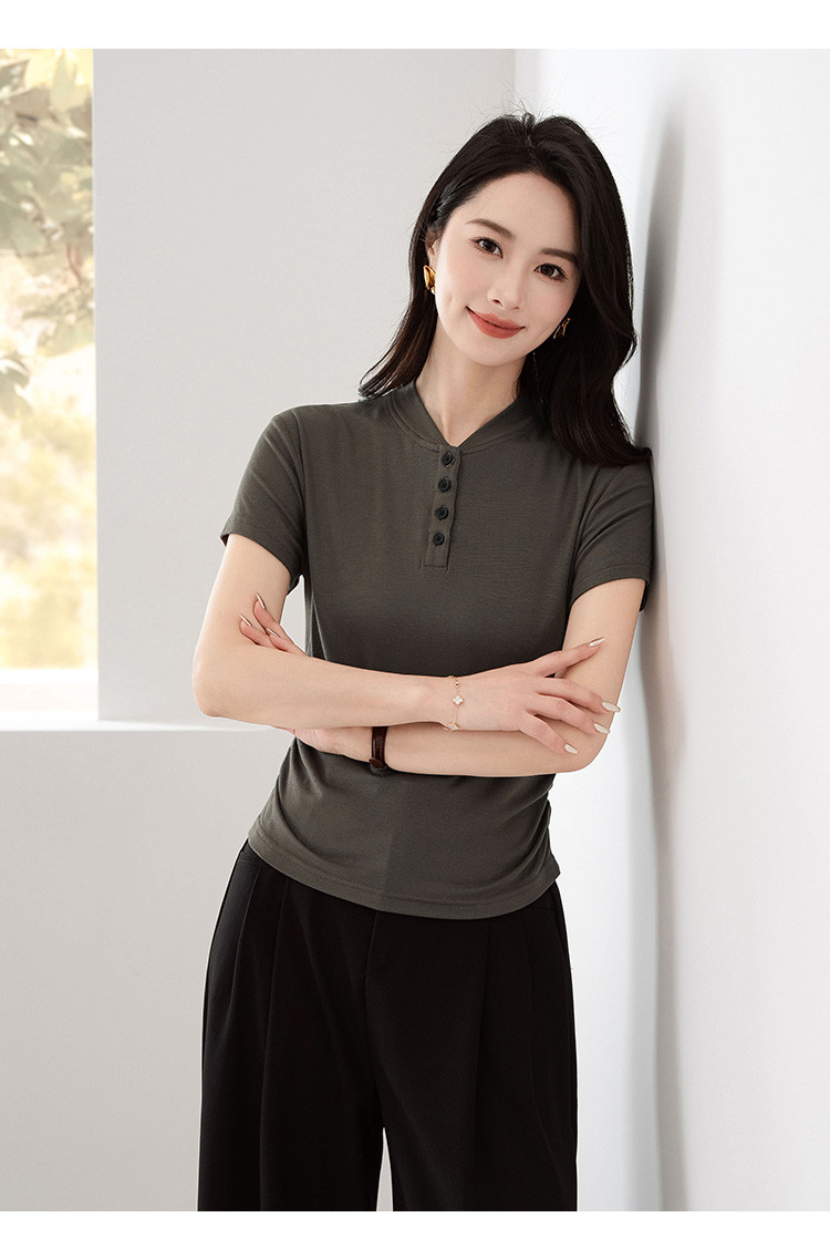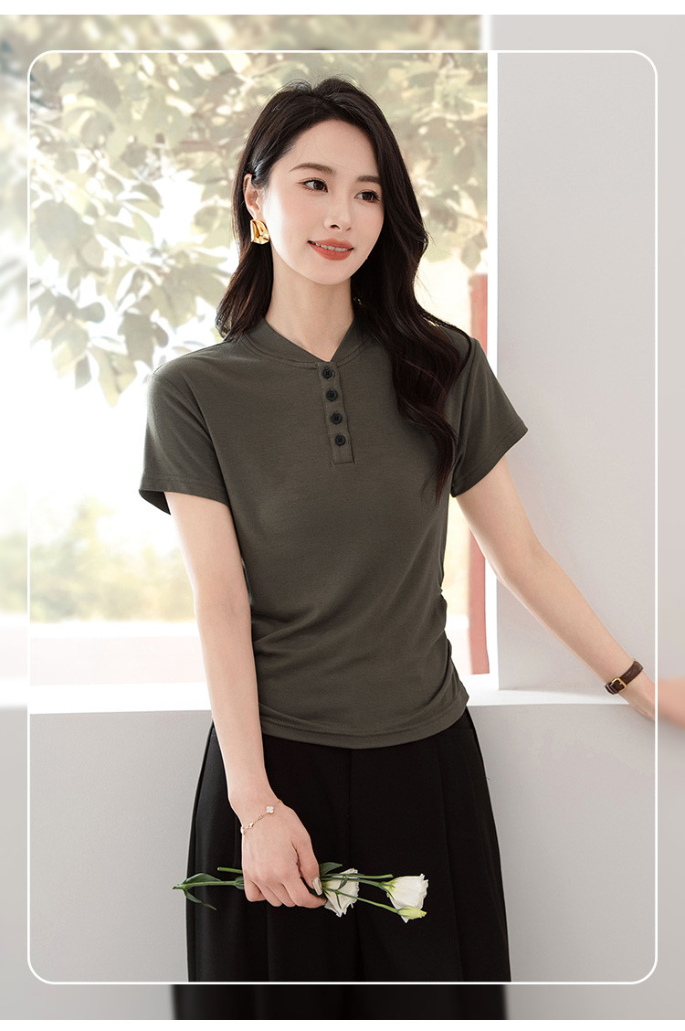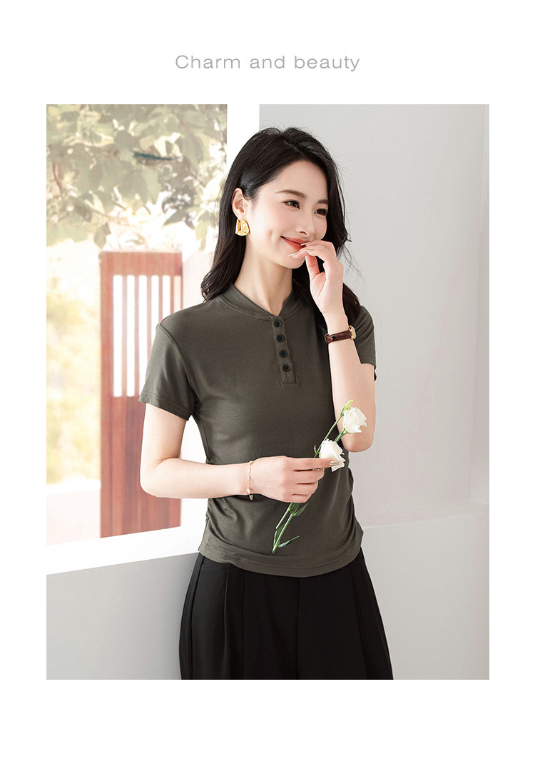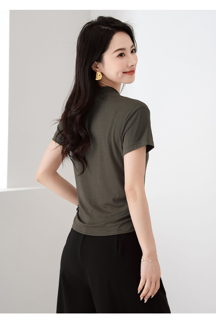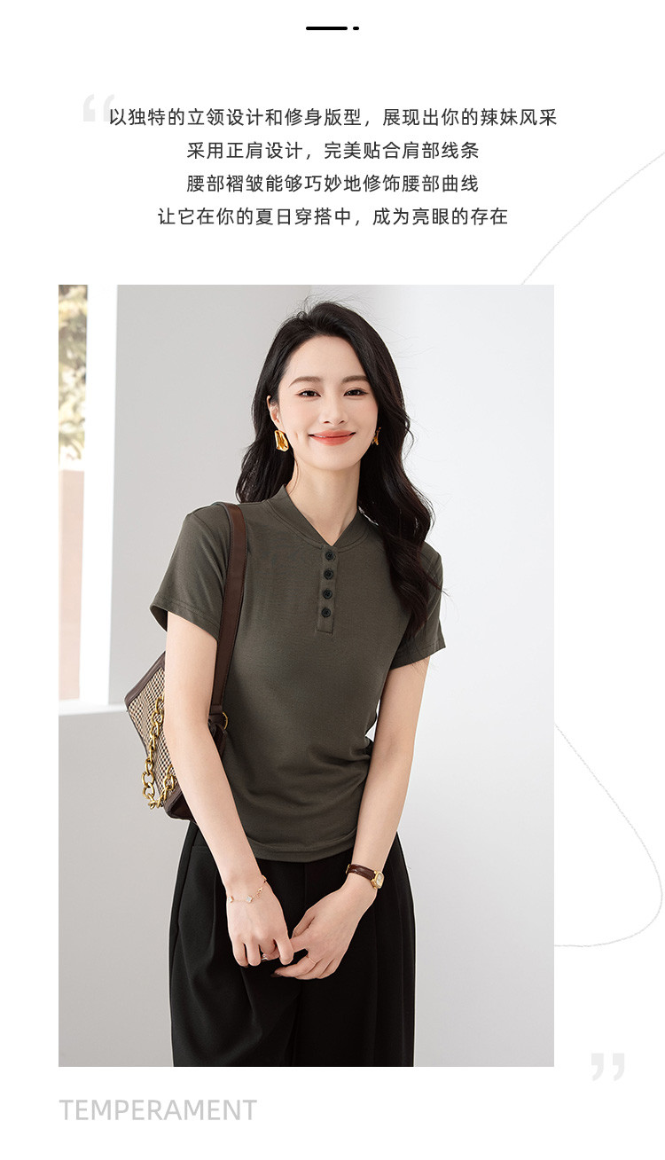 商品名称:美式辣妹正肩短袖T恤女夏季修身显瘦立领短款小众上衣 157592