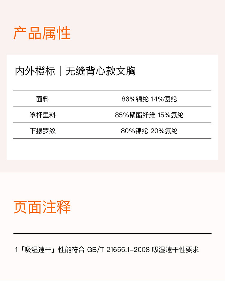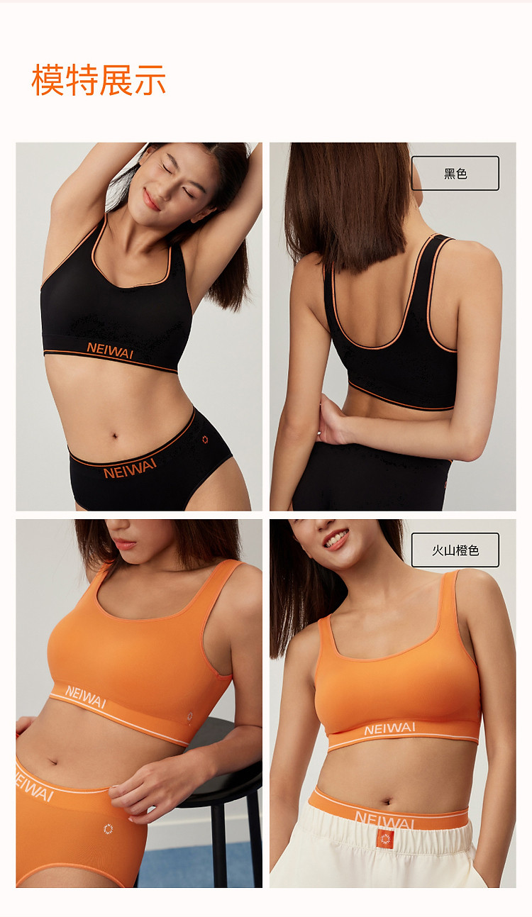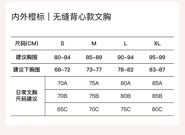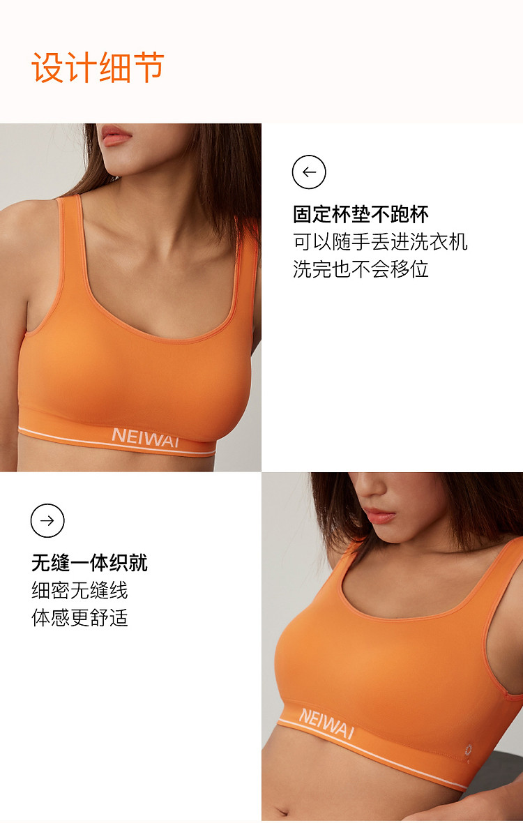 商品名称:NEIWAI内外橙标|无缝背心款文胸吸湿速干运动风女士内衣 299786