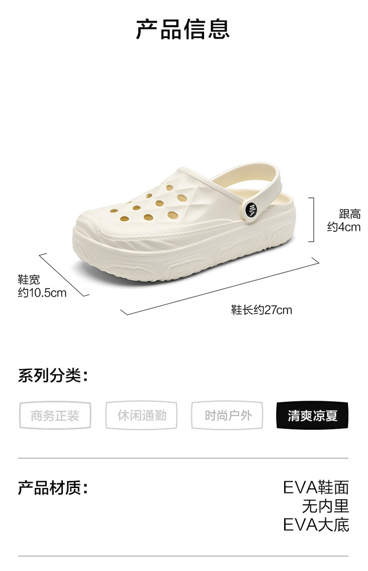 商品名称:男士凉鞋夏季外穿沙滩凉鞋踩屎感青少高级感洞洞鞋男式凉拖鞋 744399