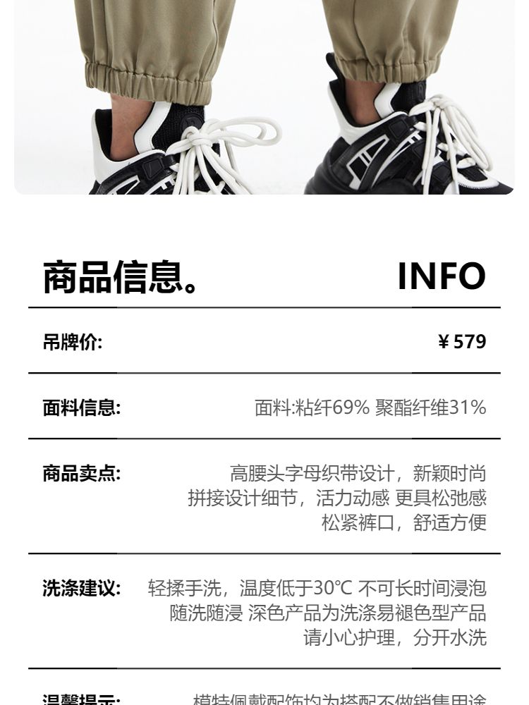 商品名称:休闲运动裤女高腰拼接松紧口长裤 938705