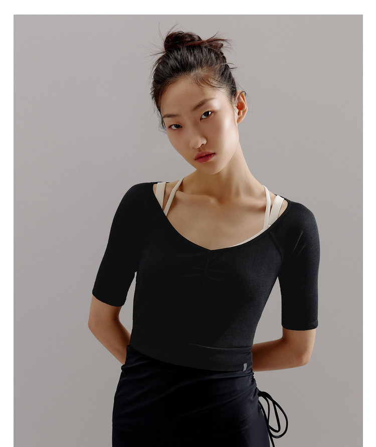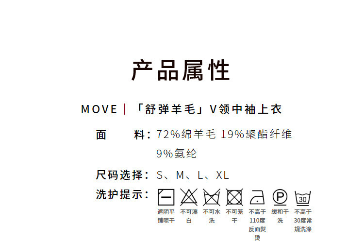 商品名称:NEIWAI ACTIVE女士芭蕾V领修身羊毛T恤简约透气 914186