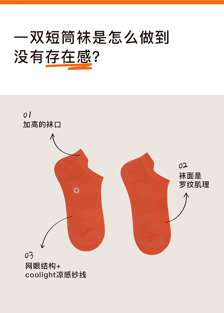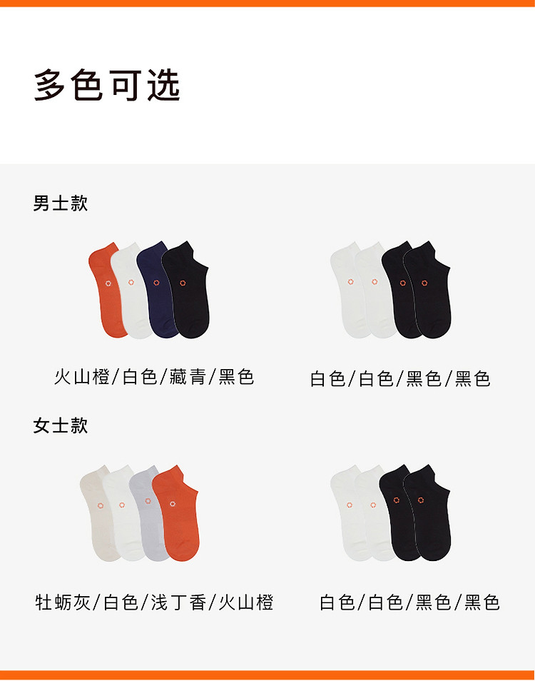 商品名称:NEIWAI内外橙标|男士/女士短筒袜四双装透气舒适简约纯色 321866