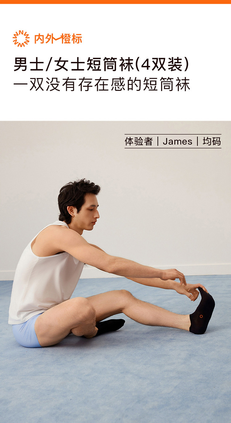 NEIWAI内外橙标|男士/女士短筒袜四双装透气舒适简约纯色 321866