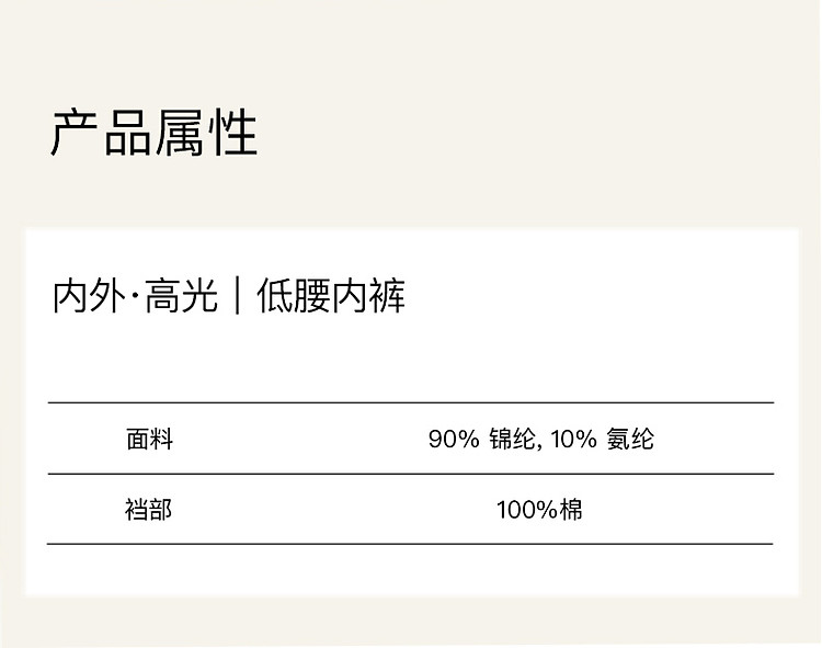 商品名称:NEIWAI内外·高光|低腰内裤柔光细闪女士三角内裤舒适贴合 789002
