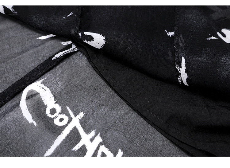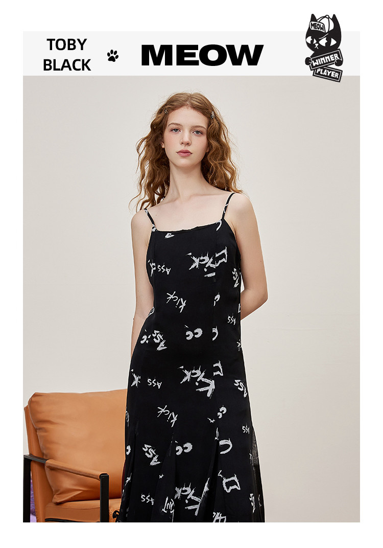 商品名称:个性涂鸦印设计荷叶边开叉吊带裙夏季休闲度假风连衣裙 761757