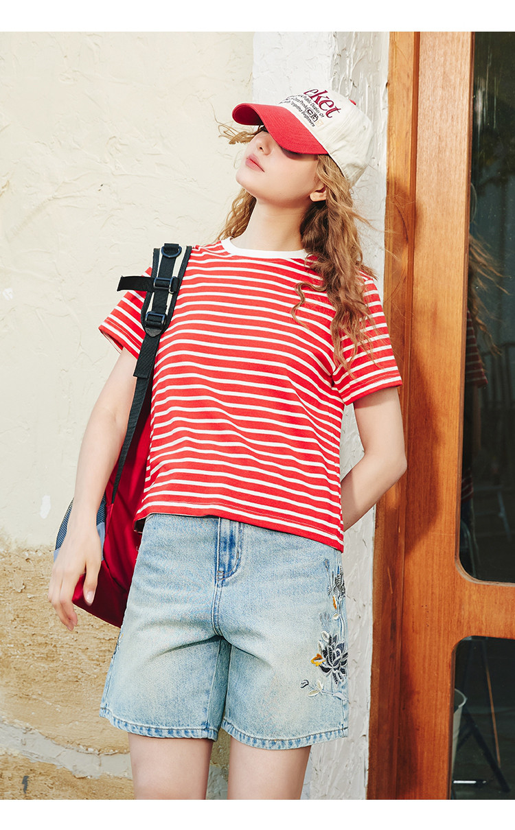【100%棉】美式中长款短袖夏季宽松高级感女式T恤 689629