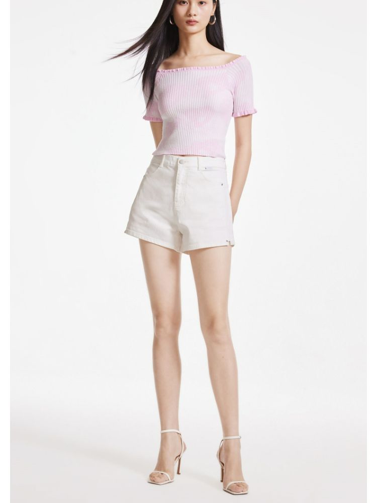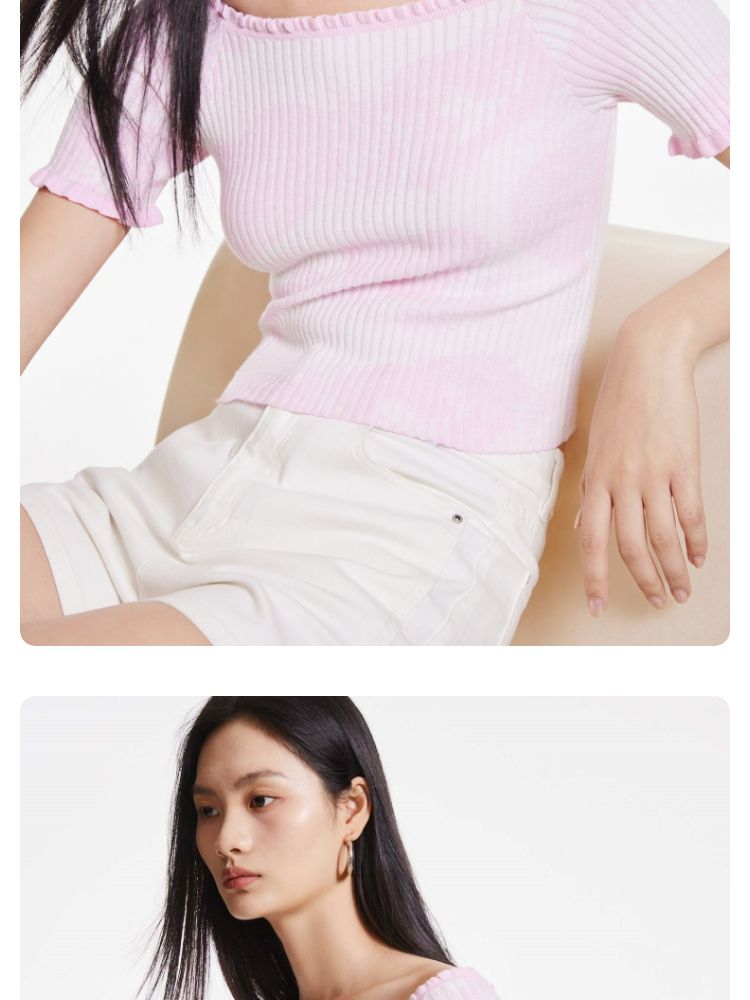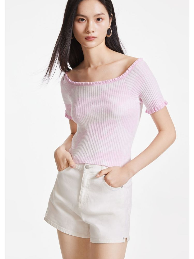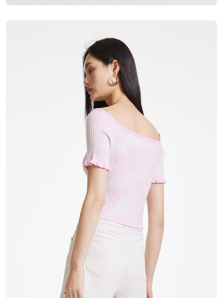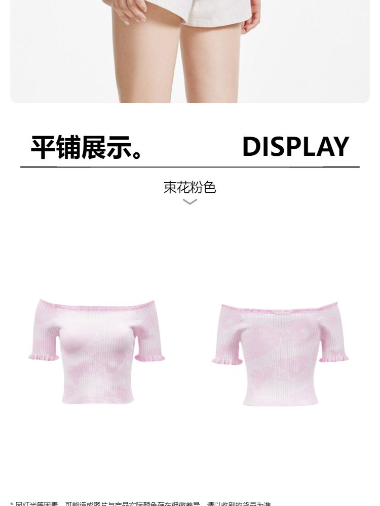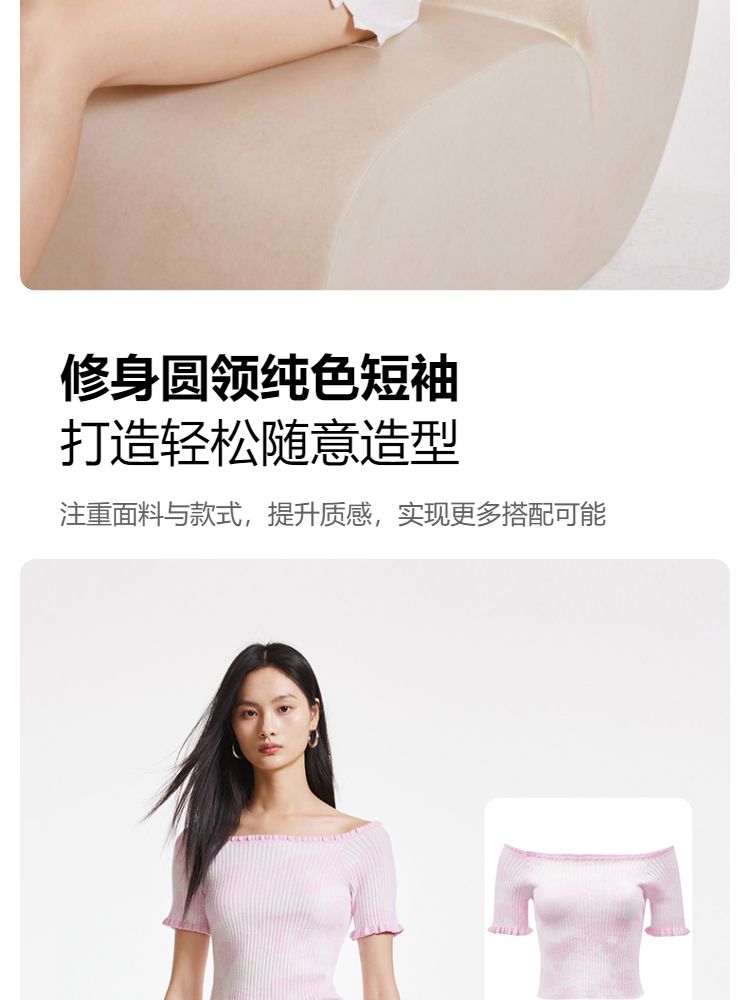 商品名称:【弹力罗纹坑条面料】夏针织衫女修身圆领纯色短袖印花甜美 617041