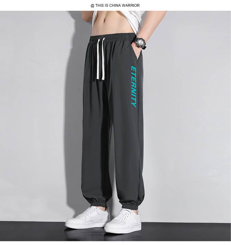 商品名称:冰丝休闲裤男夏季薄款弹力运动宽松束脚裤潮牌男士长裤子 432787