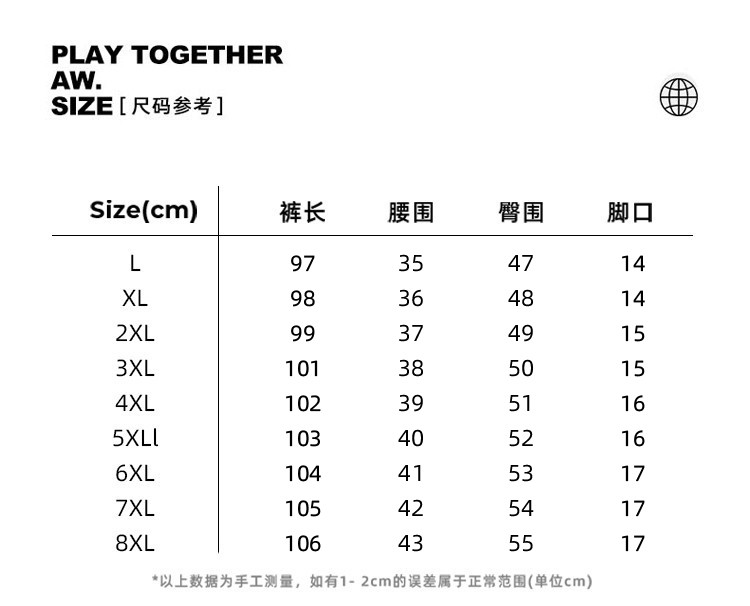 | 尺码 | 裤脚围(cm) | 腰围(cm) | 裤长(cm) | 臀围(cm) | 号型 |