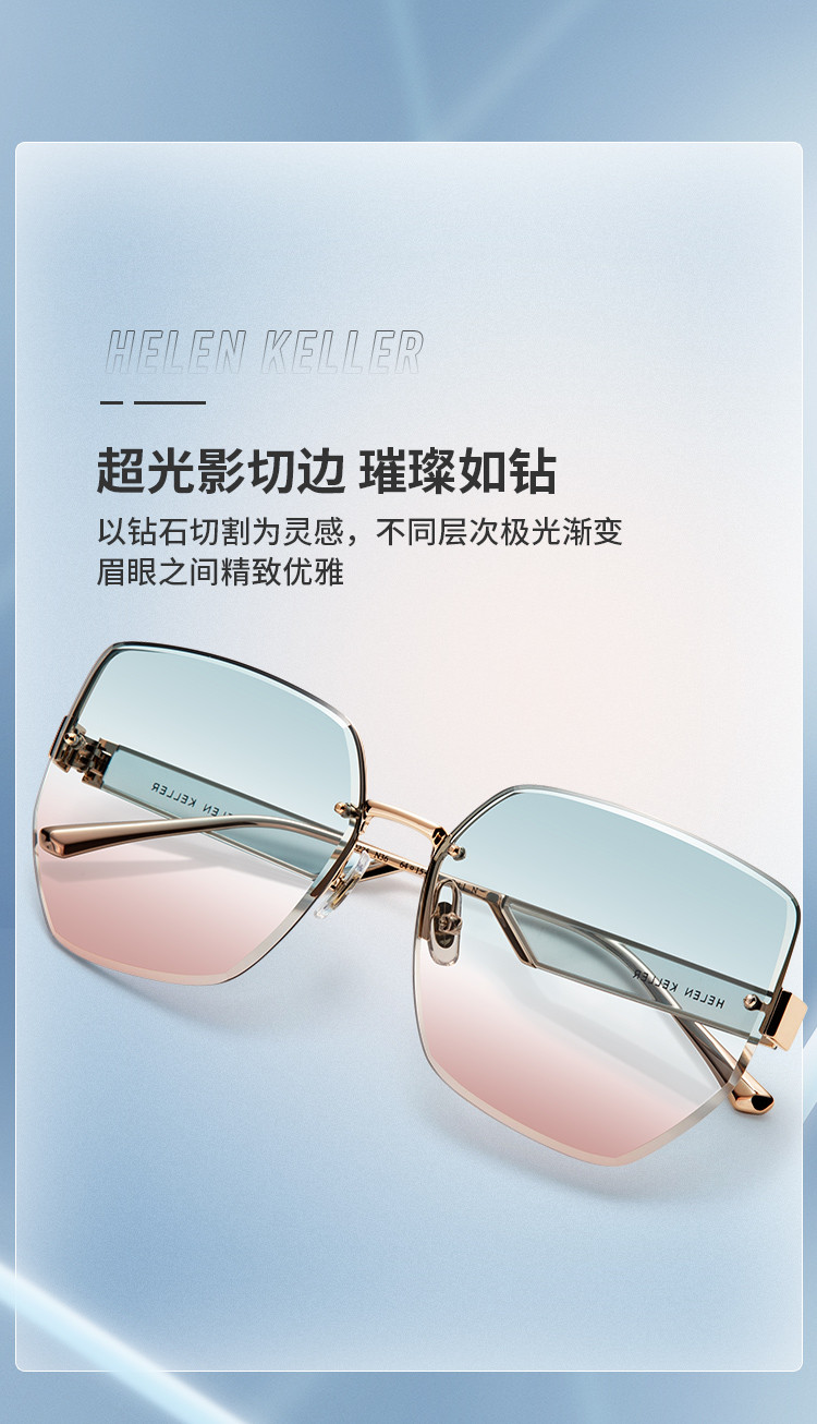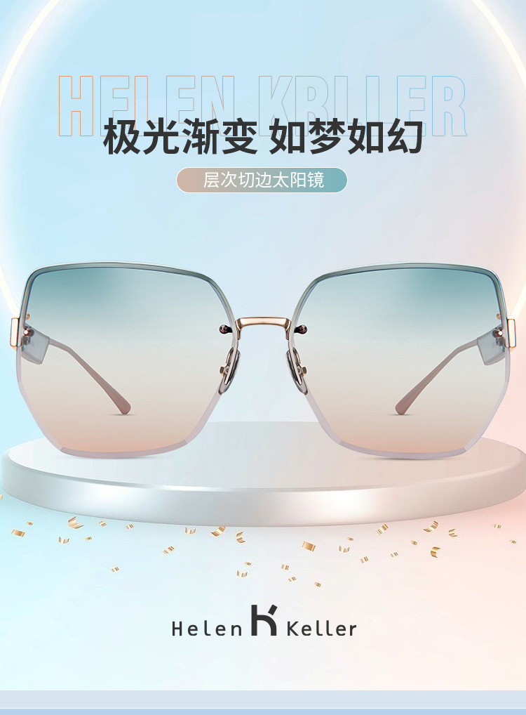 海伦凯勒太阳眼镜女百搭大框复古时尚墨镜极光渐变 498907