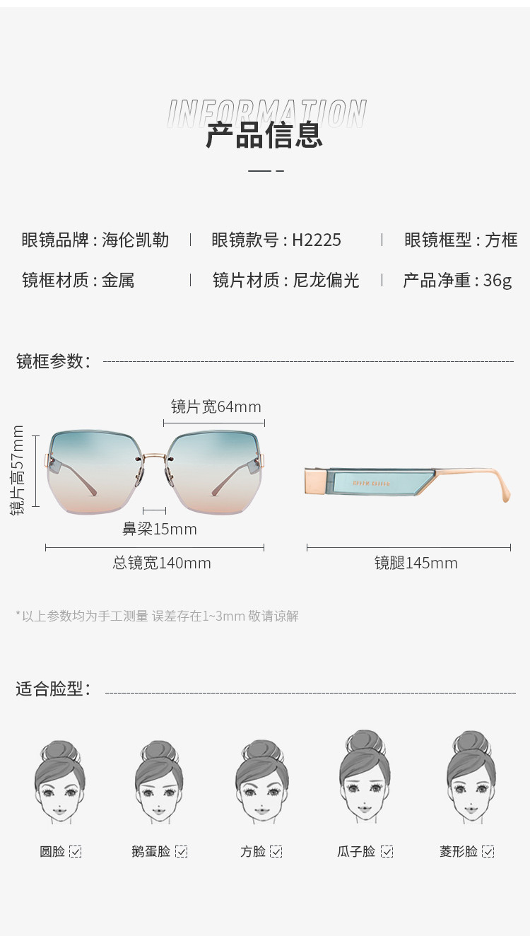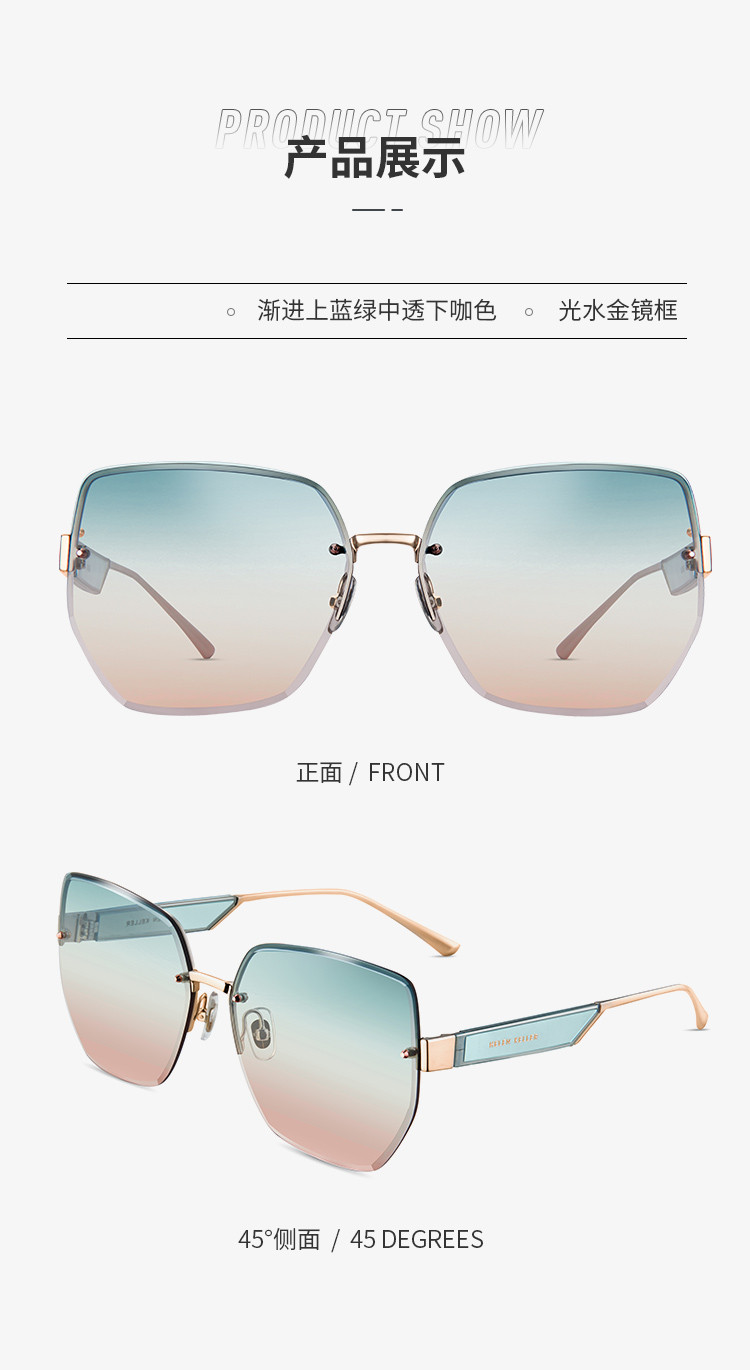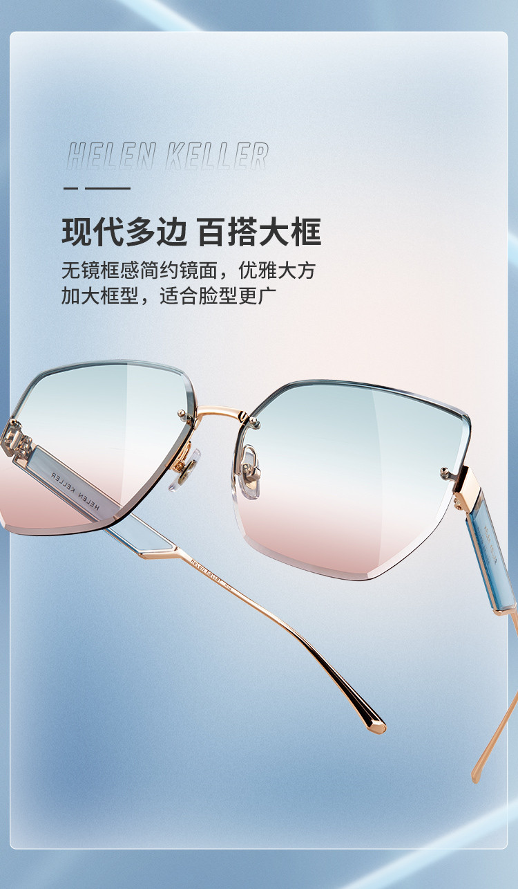 商品名称:海伦凯勒太阳眼镜女百搭大框复古时尚墨镜极光渐变 498907