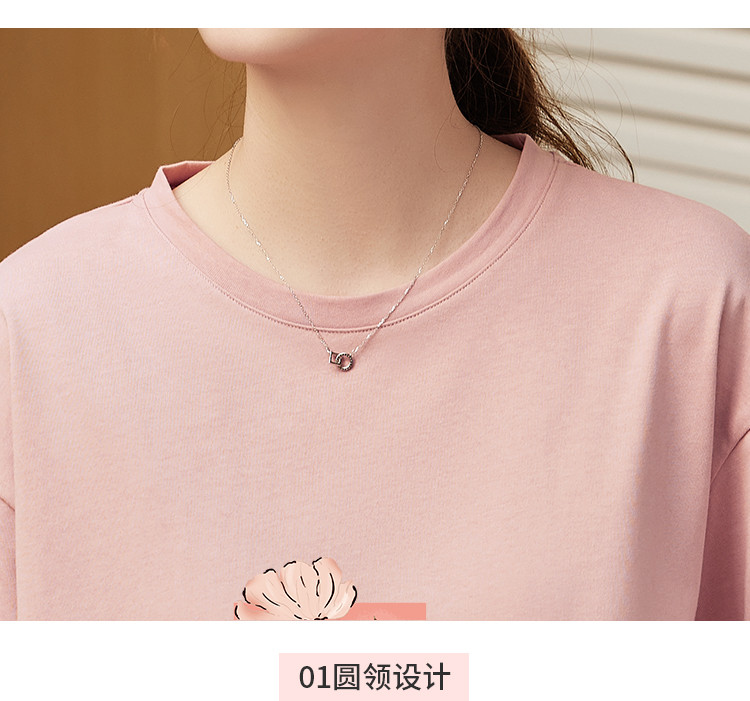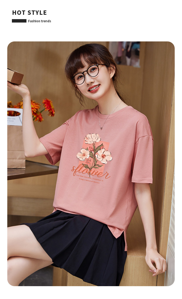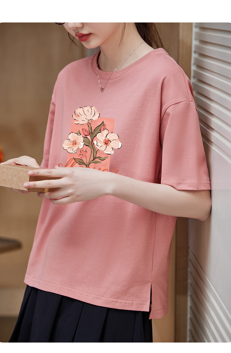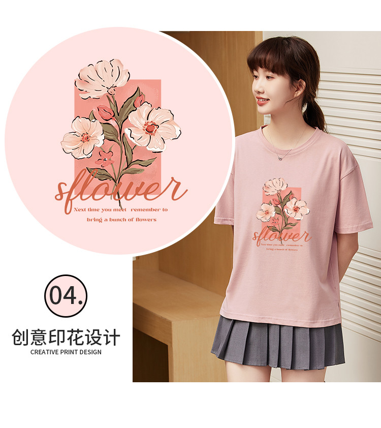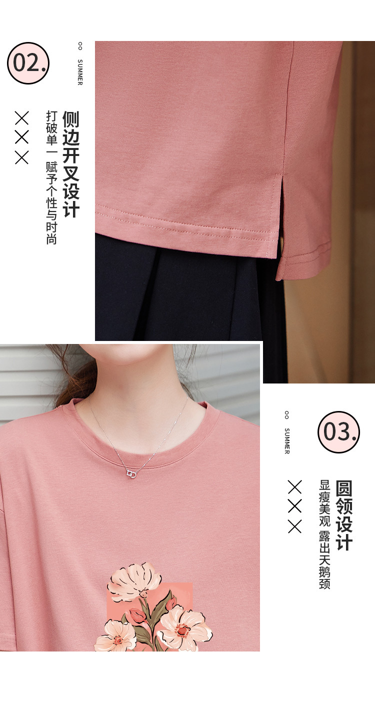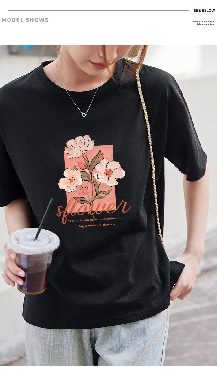 商品名称:米子旗夏季款圆领大码T恤花朵印花女宽松休闲短袖上衣 159194