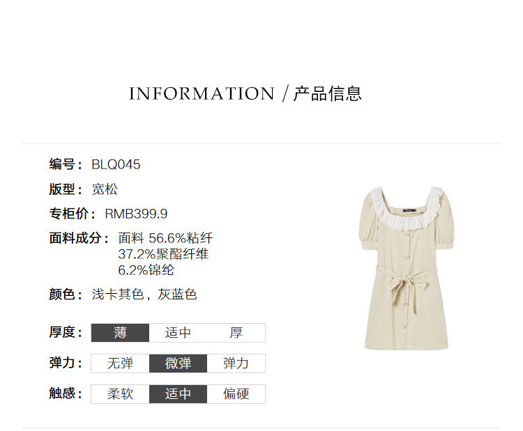 商品名称:夏装简约方领拼接撞色连衣裙女泡泡袖收腰a字裙 532884
