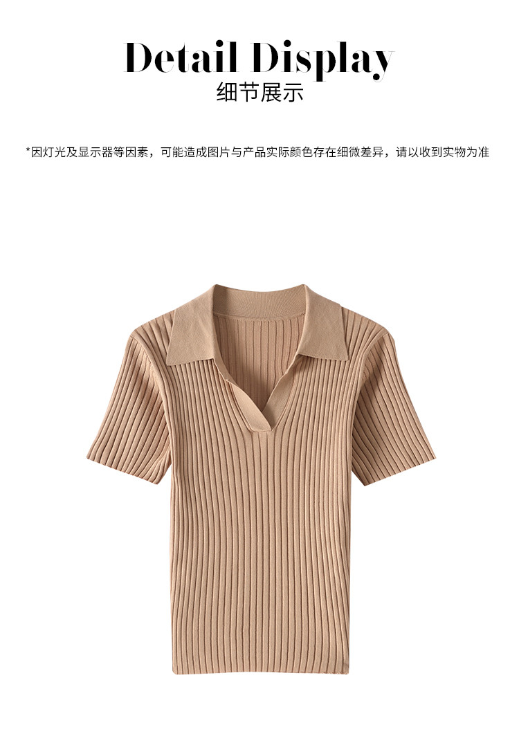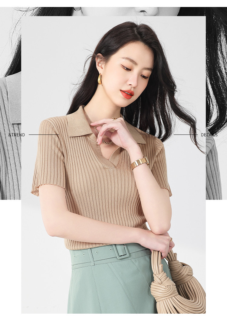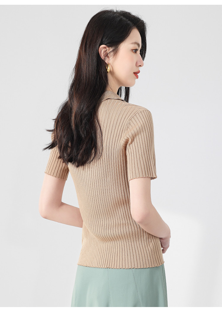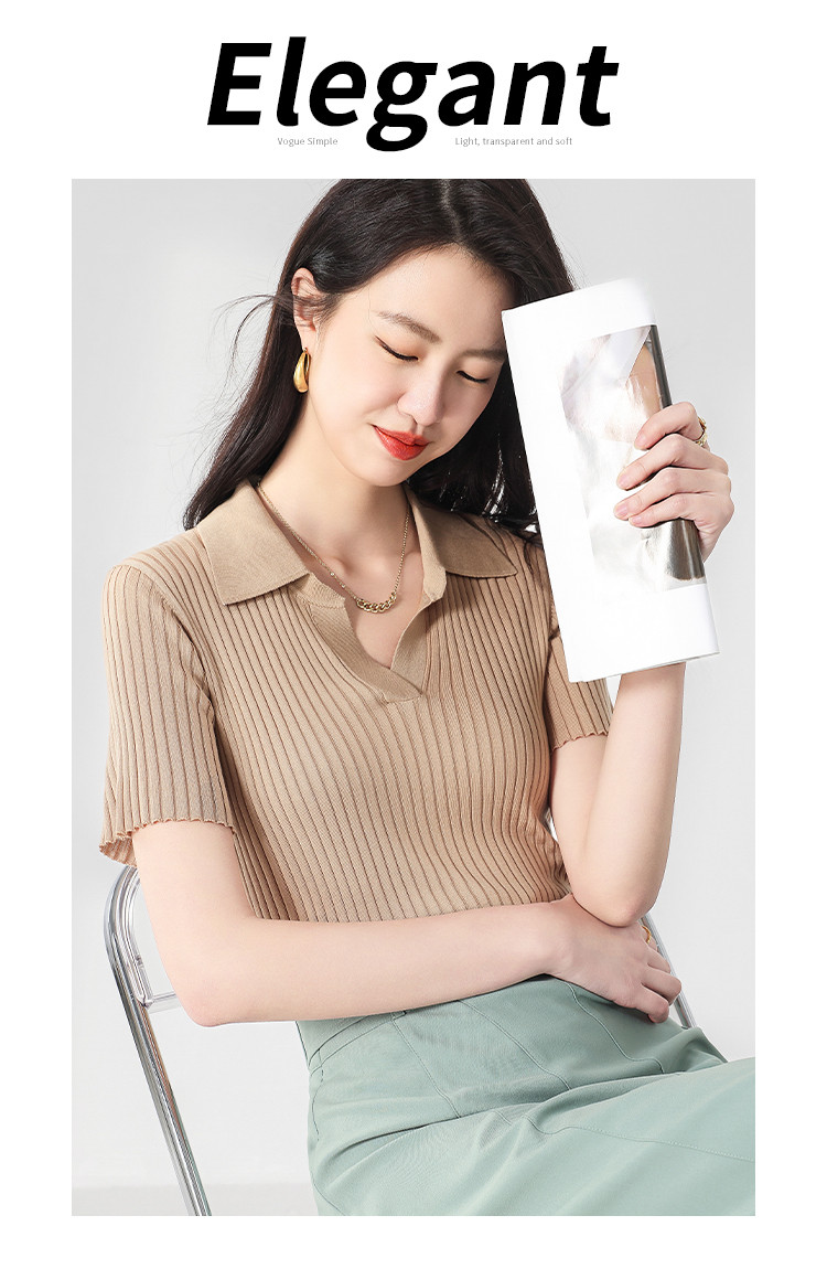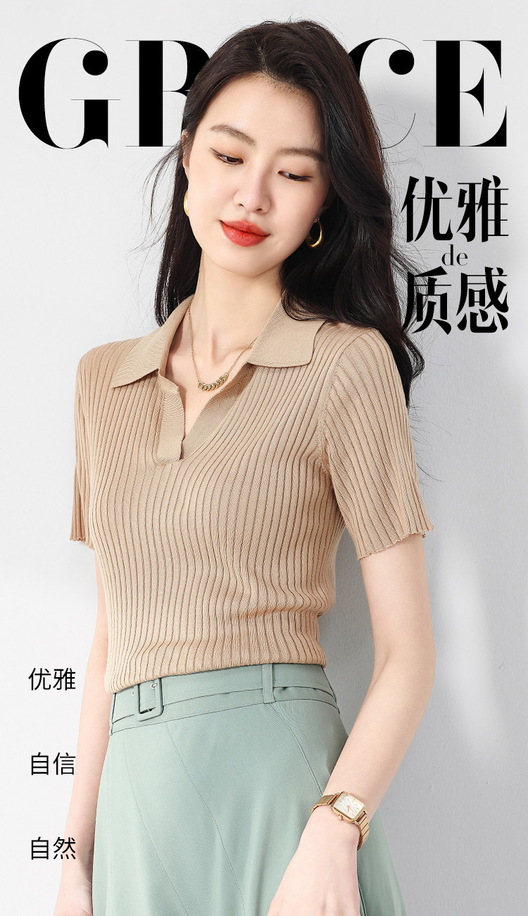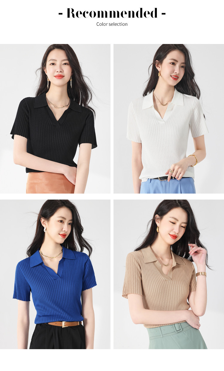 商品名称:纯色百搭翻领含桑蚕丝针织打底衫短袖T恤轻薄透气 117139
