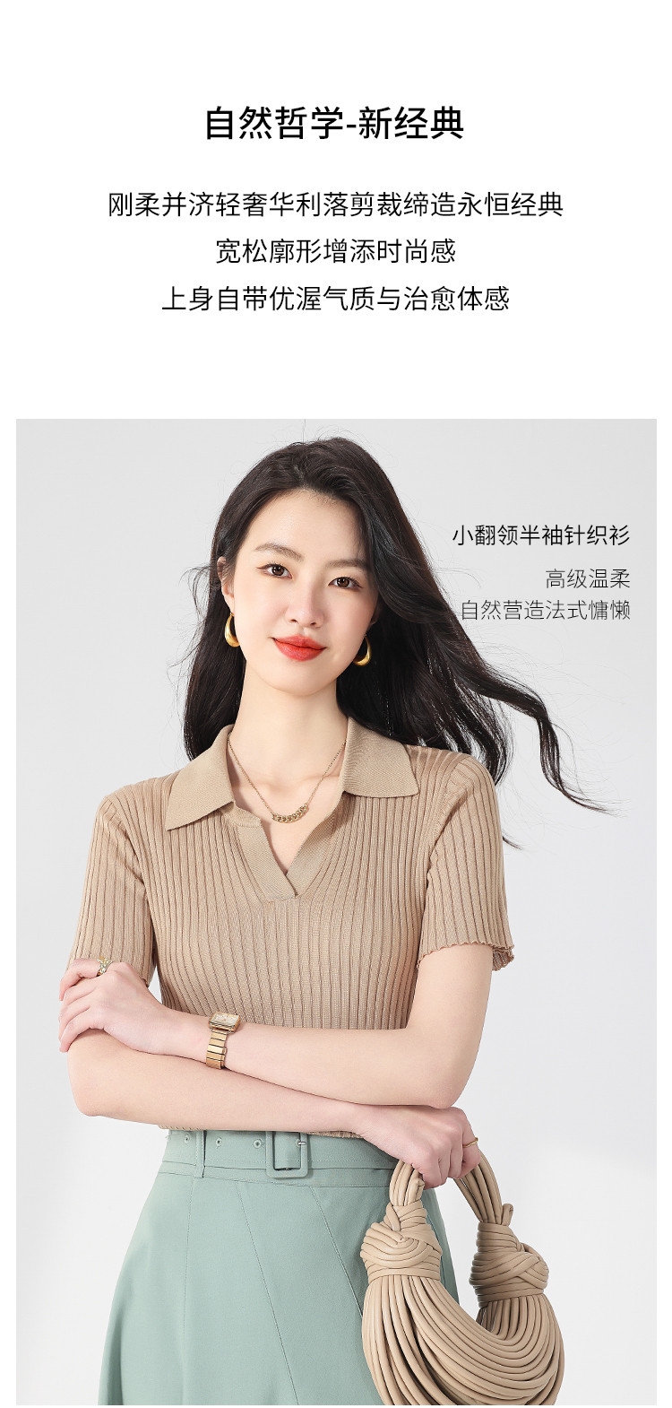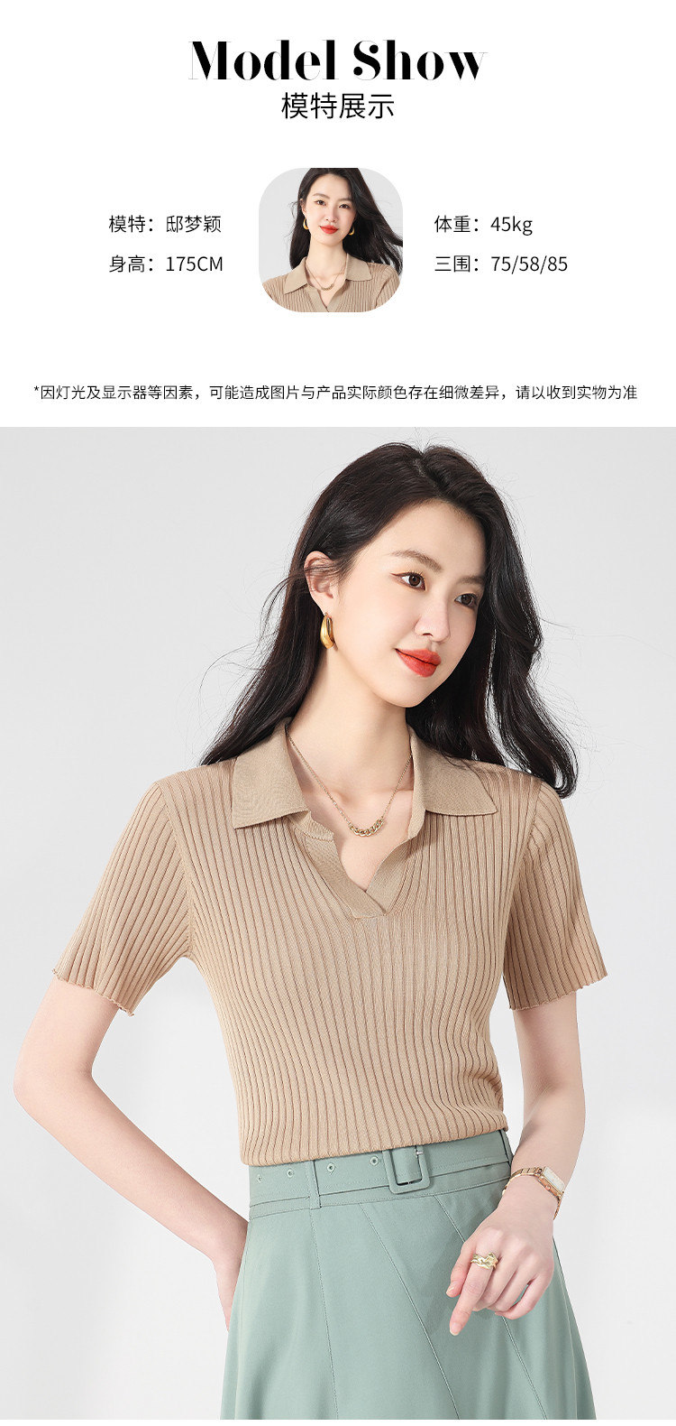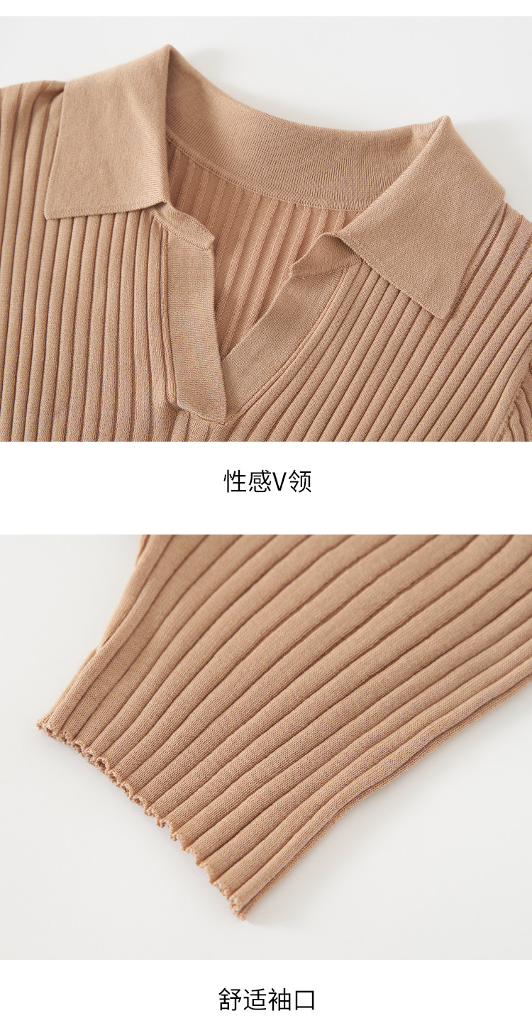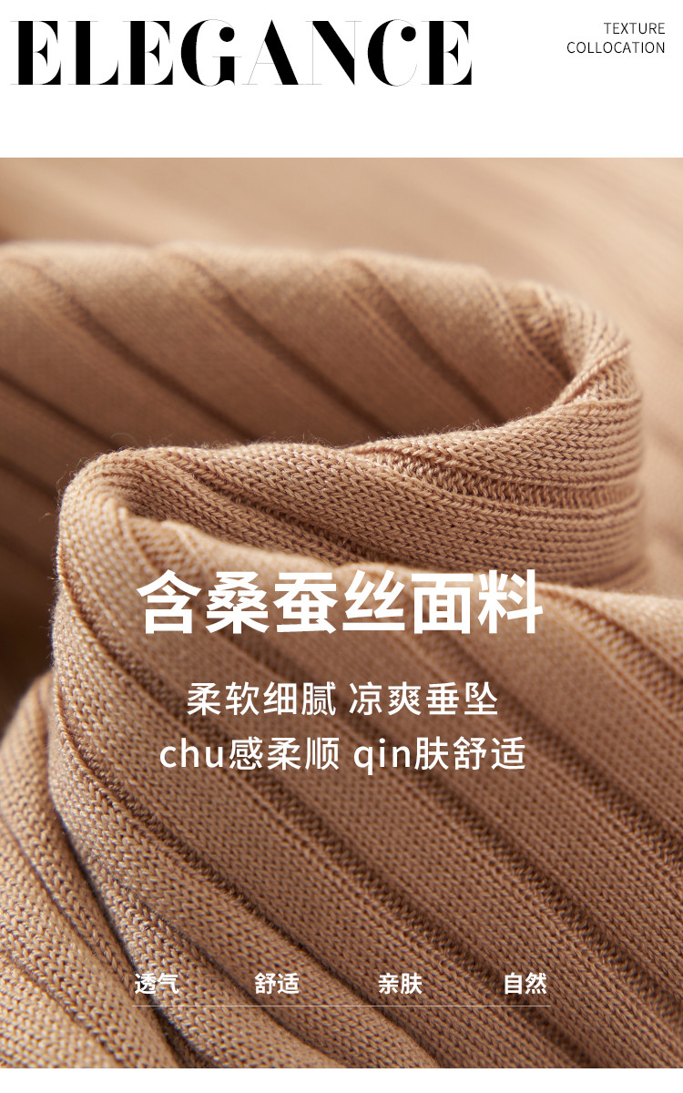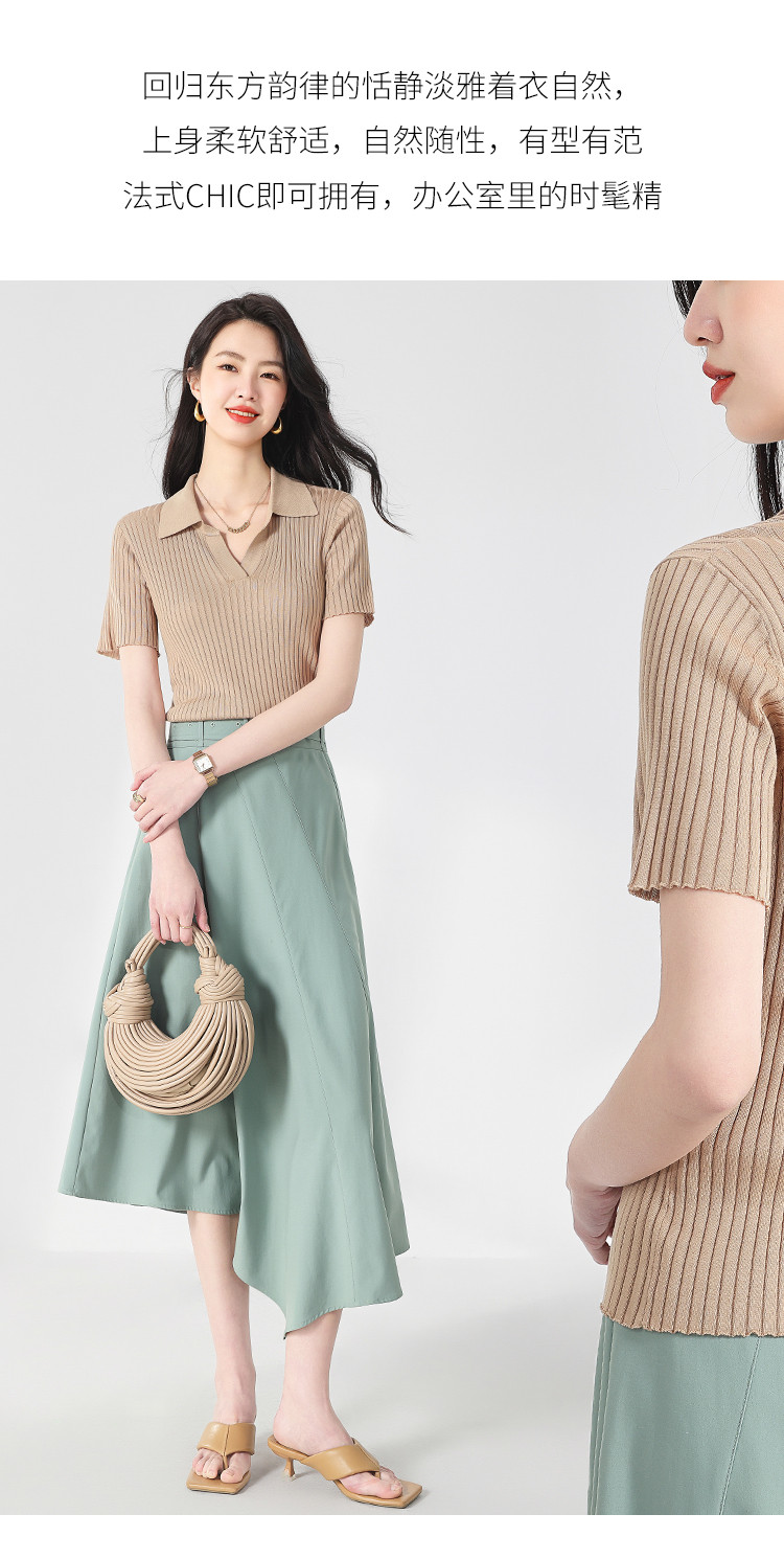 商品名称:纯色百搭翻领含桑蚕丝针织打底衫短袖T恤轻薄透气 117139