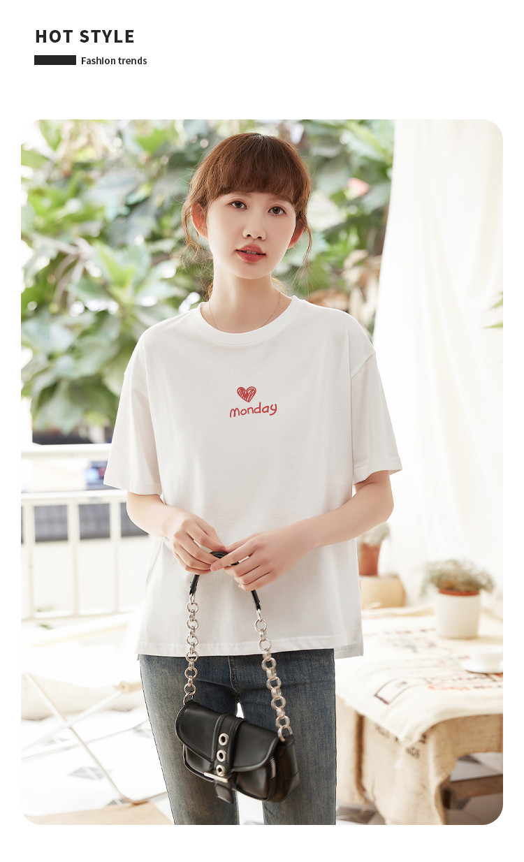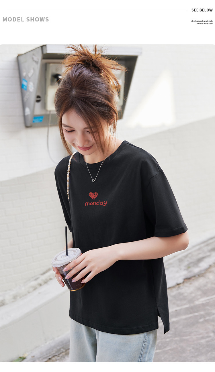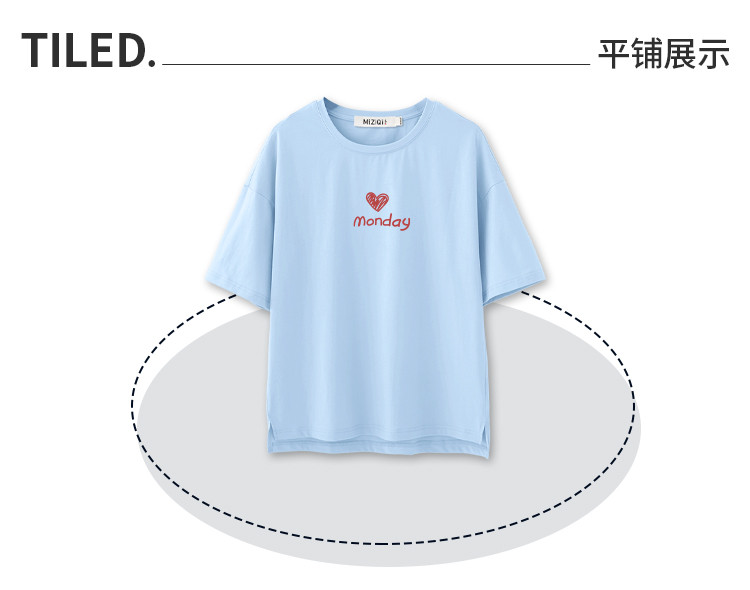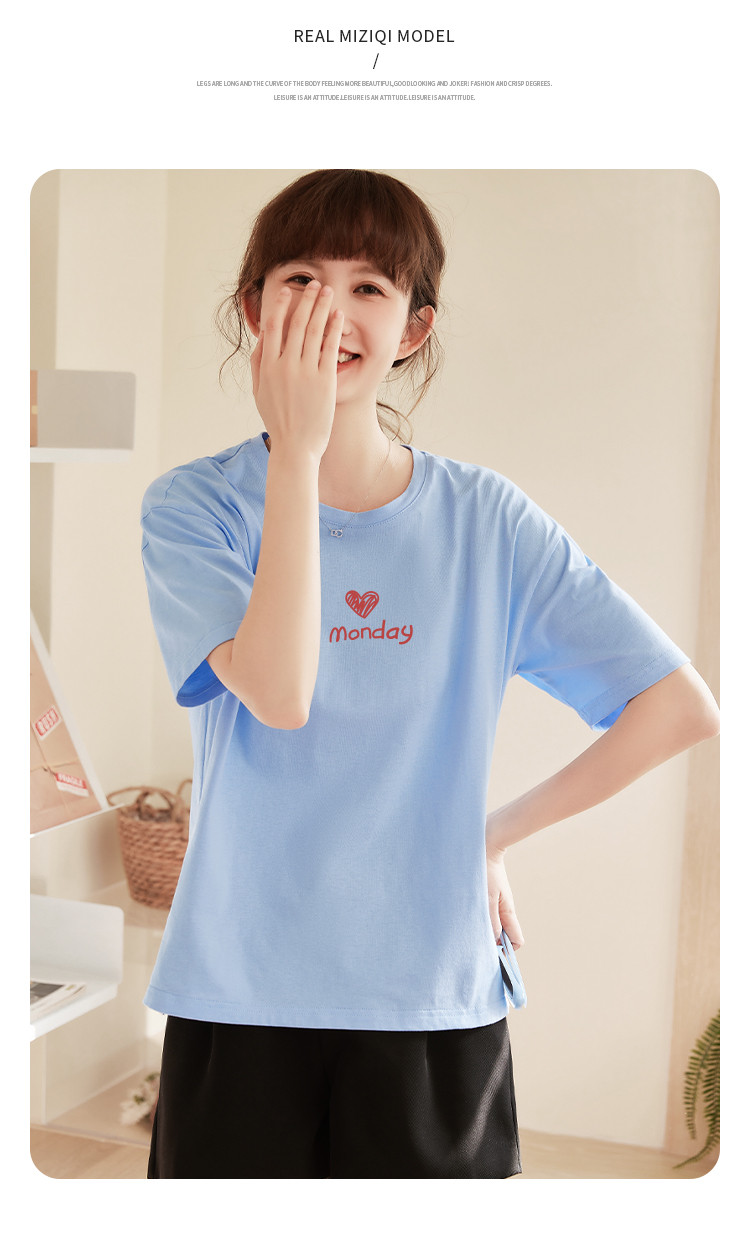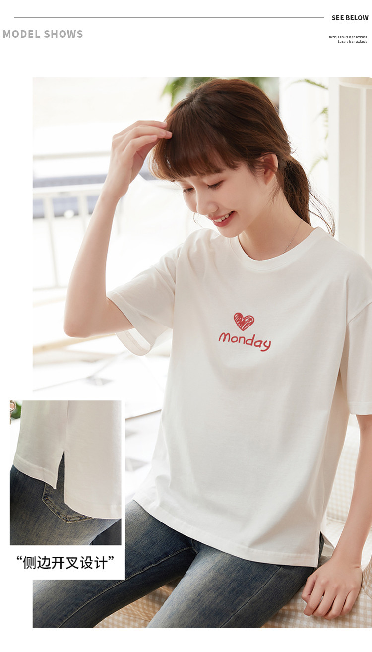 商品名称:米子旗夏季圆领线条爱心印花大码T恤女侧边开叉宽松休闲短袖上衣 794458