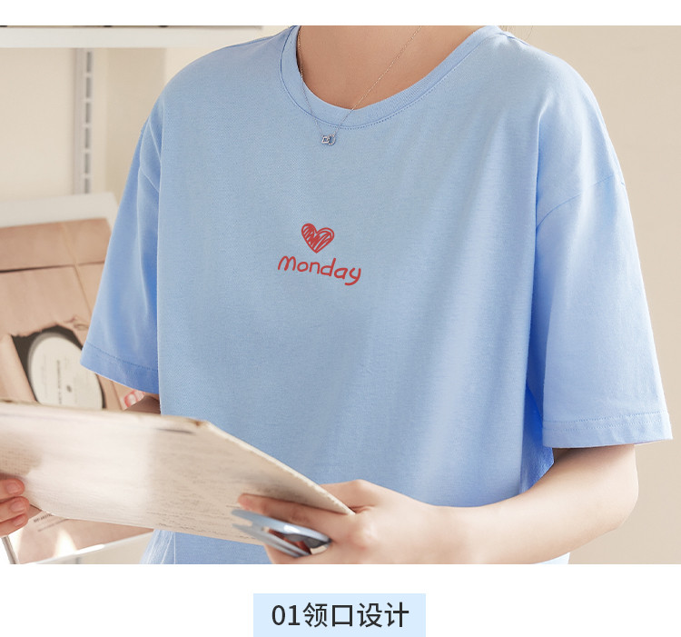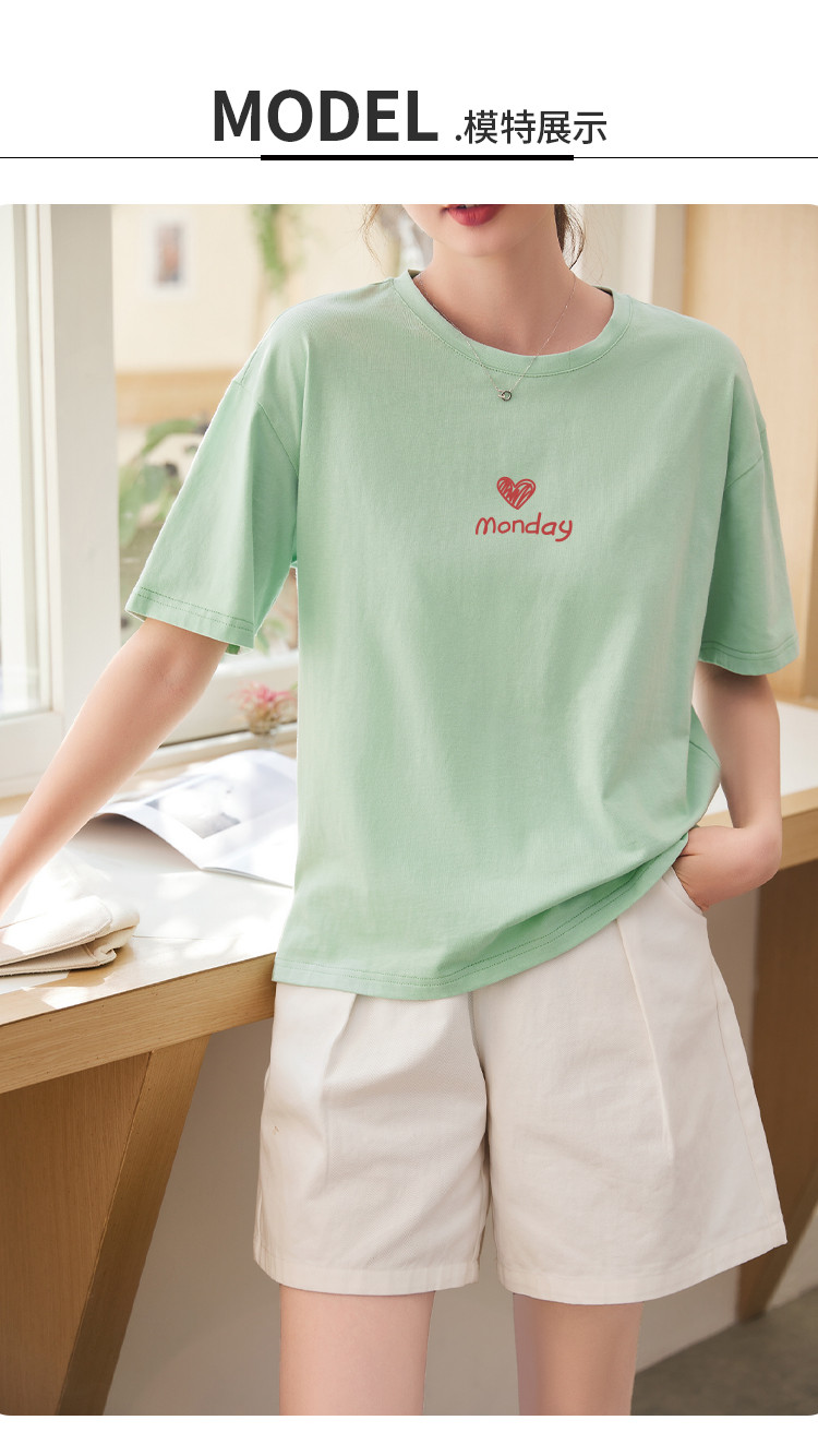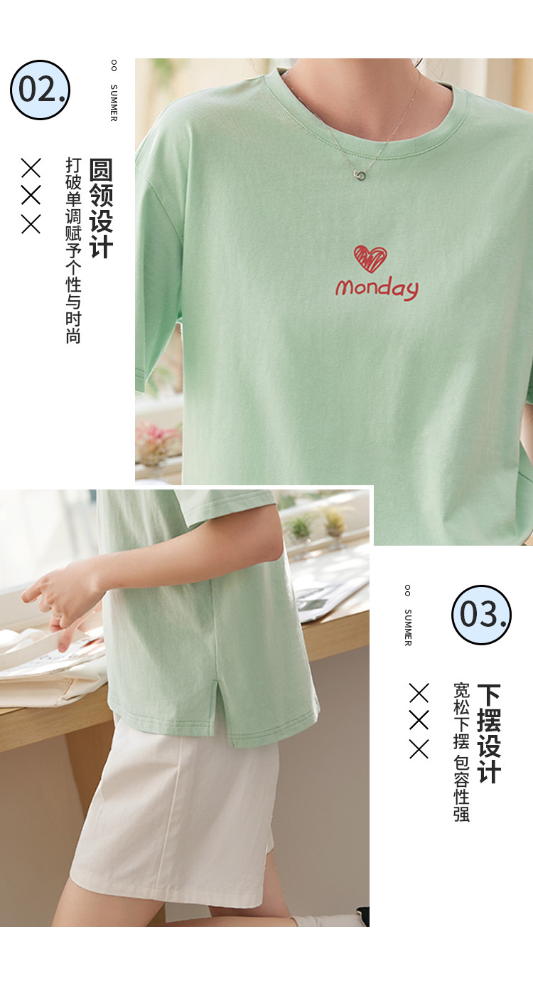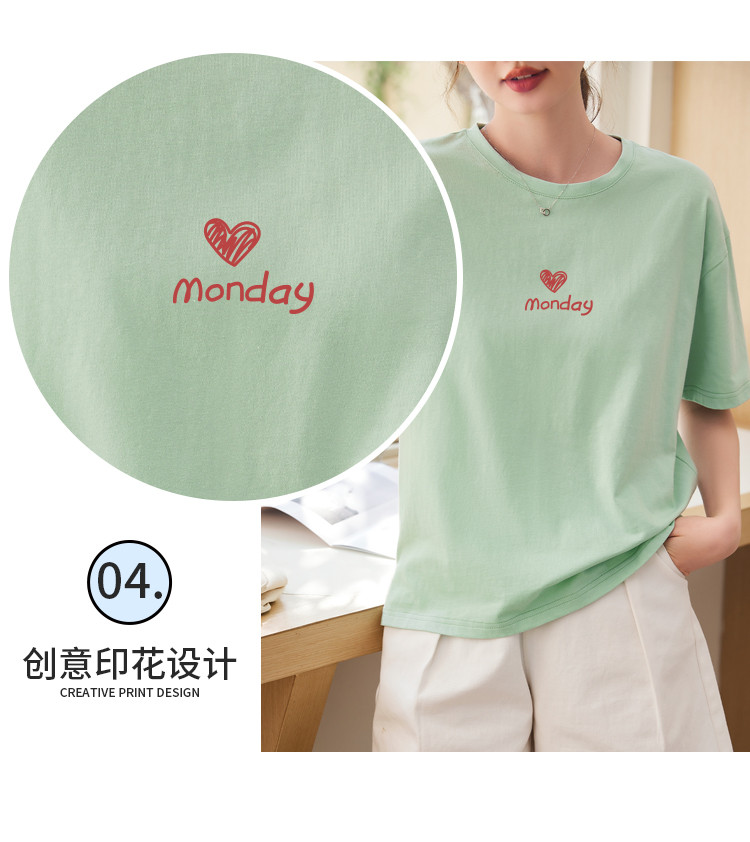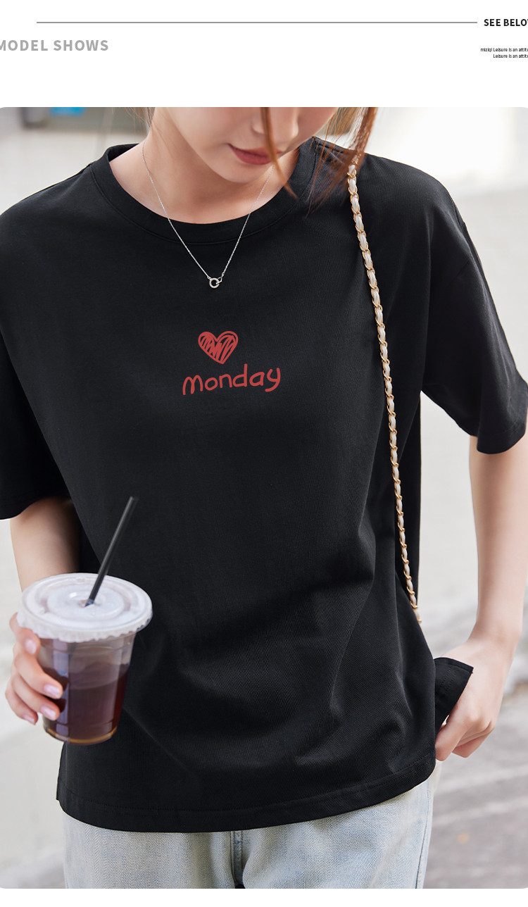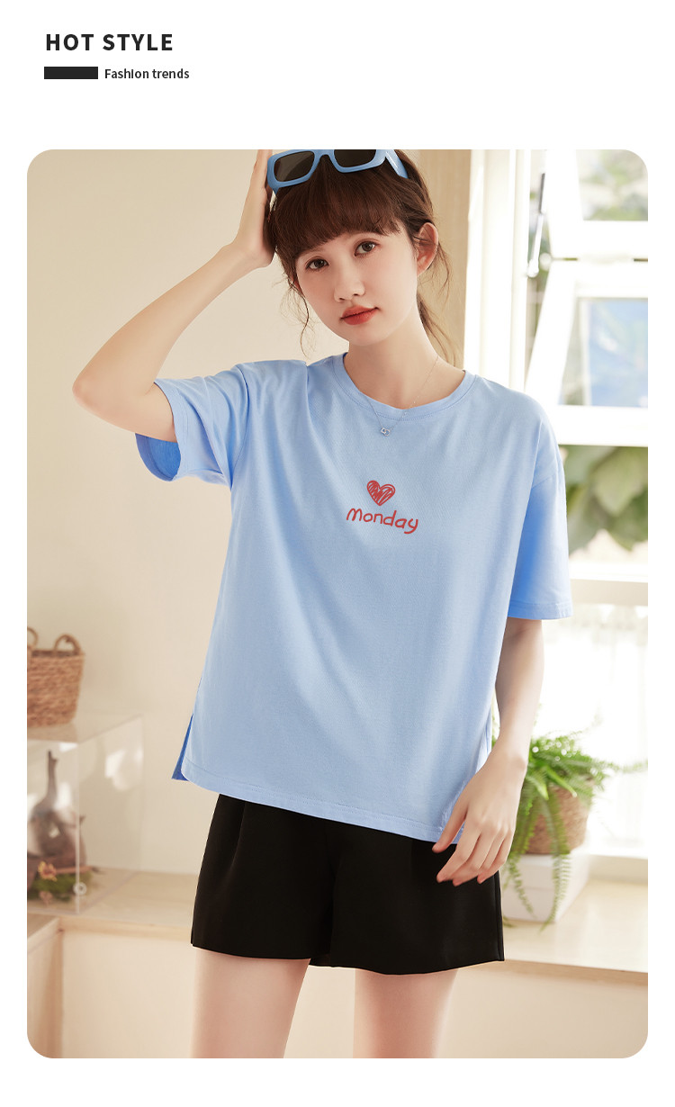 商品名称:米子旗夏季圆领线条爱心印花大码T恤女侧边开叉宽松休闲短袖上衣 794458