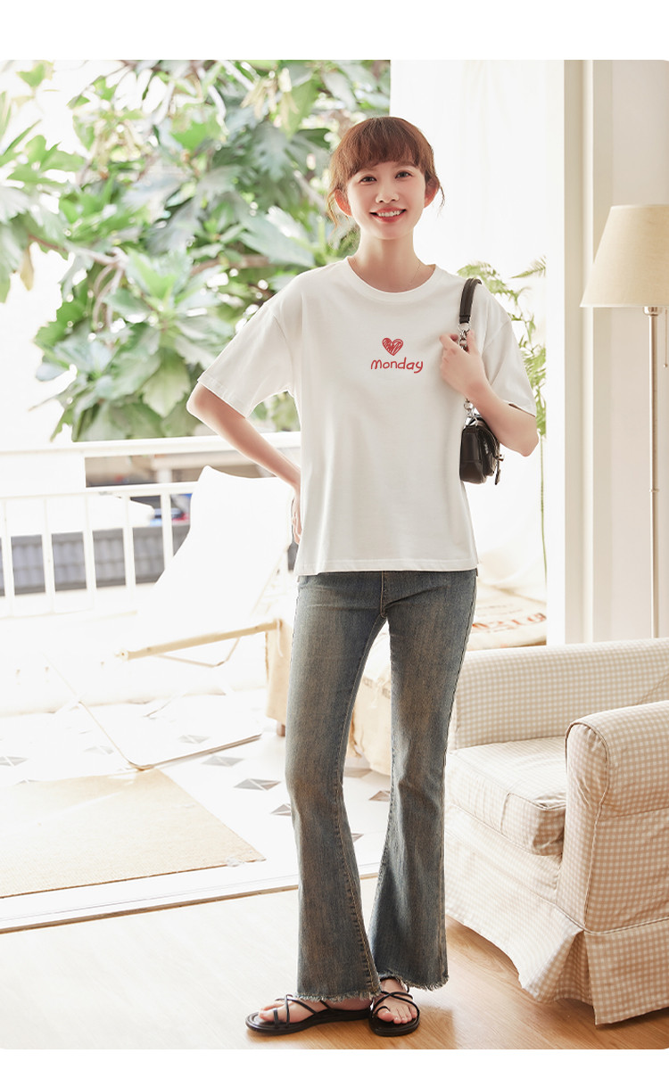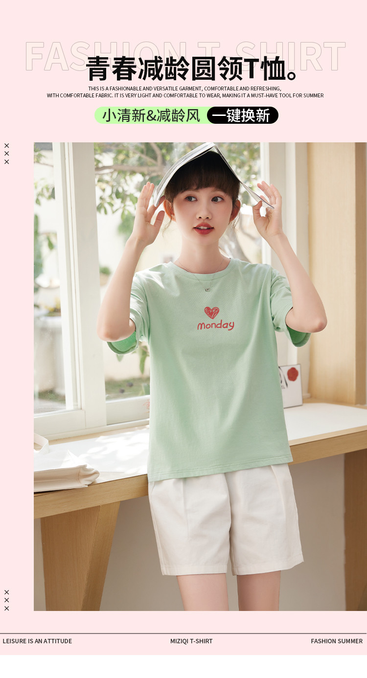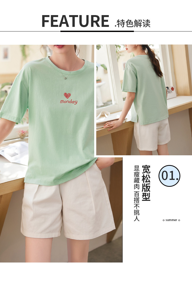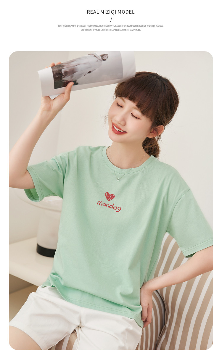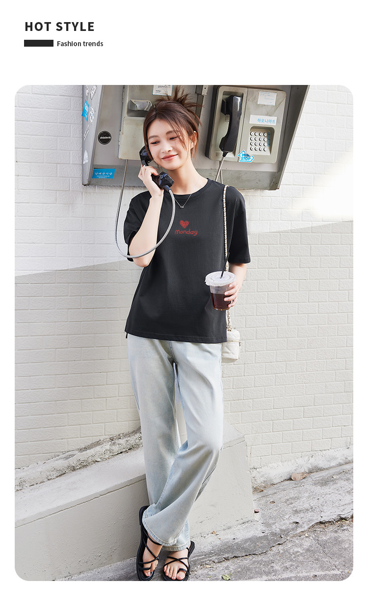 商品名称:米子旗夏季圆领线条爱心印花大码T恤女侧边开叉宽松休闲短袖上衣 794458