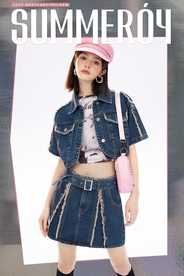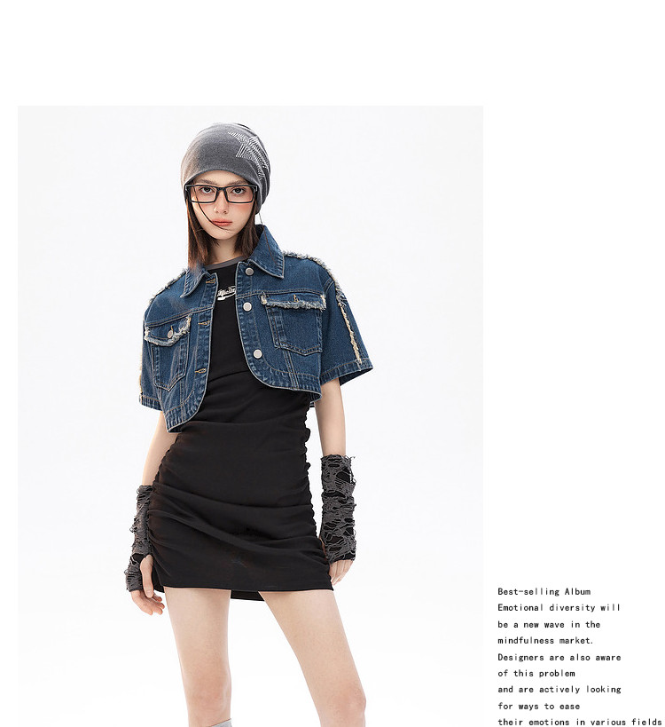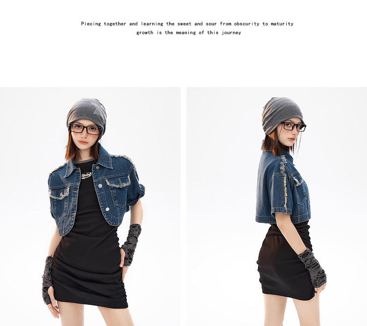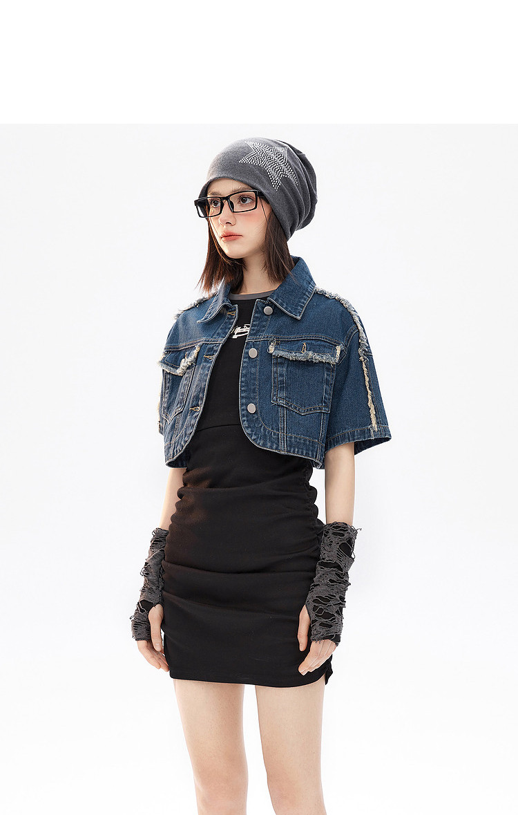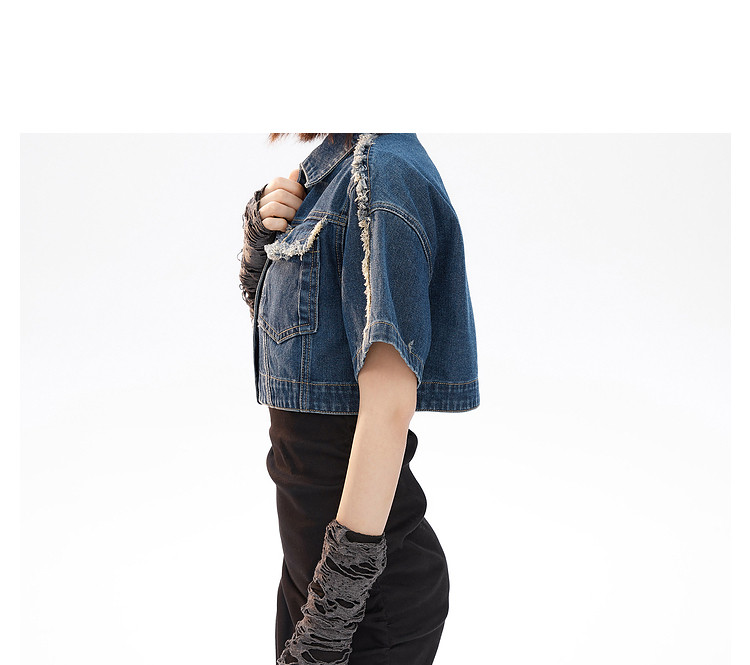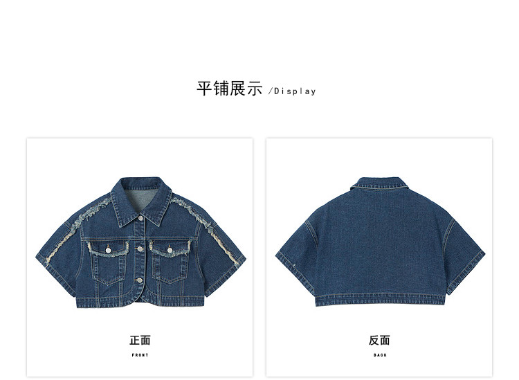 商品名称:早秋复古毛边牛仔小坎肩女甜酷辣妹风短袖小衬衫 160276