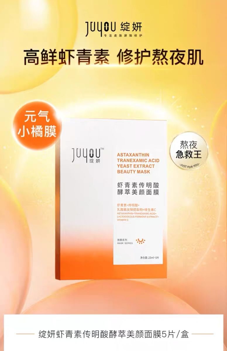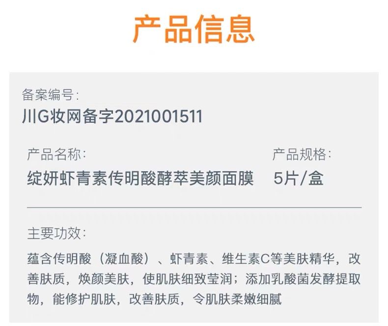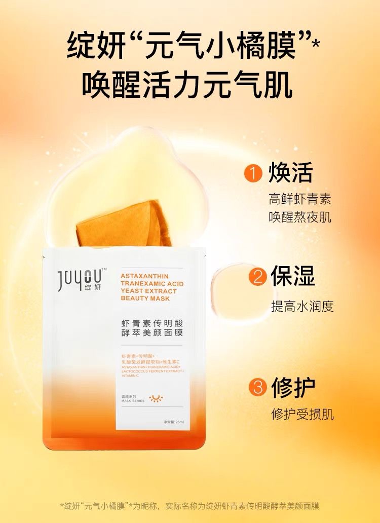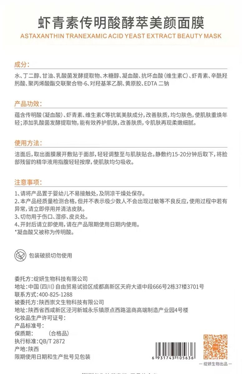 商品名称:绽妍 元气小橘膜 灯泡膜 虾青素面膜 5片 保湿修护