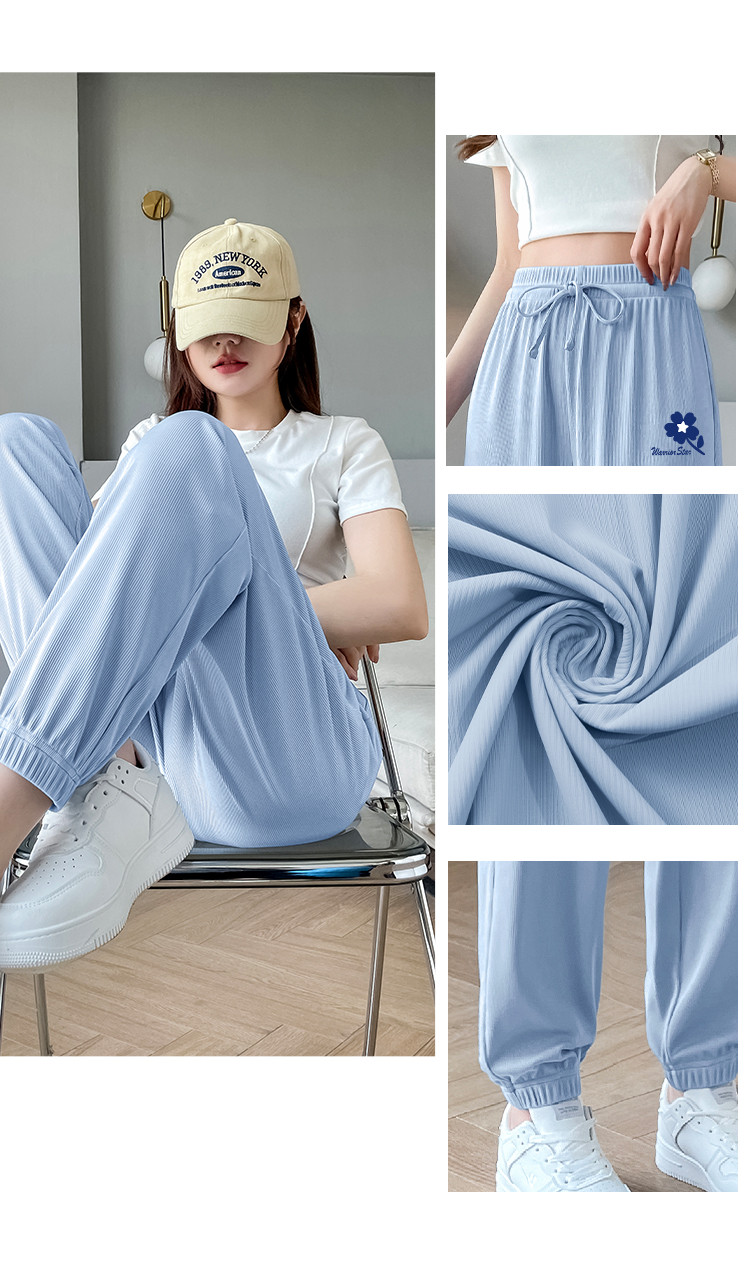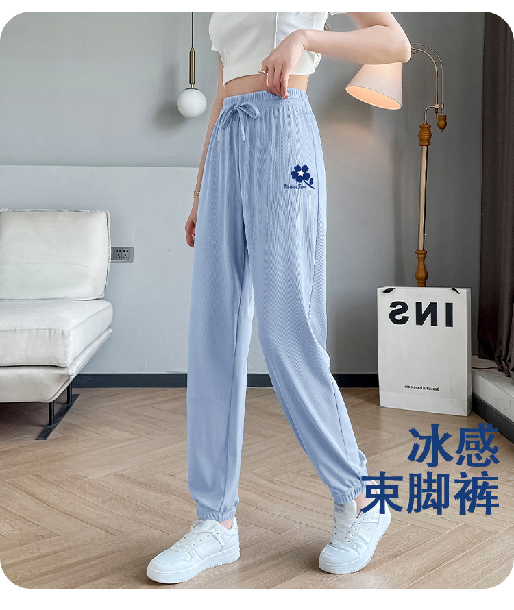 商品名称:【女装】夏季女式宽松设计感运动休闲长裤薄款垂感显瘦橡筋束脚裤 098195